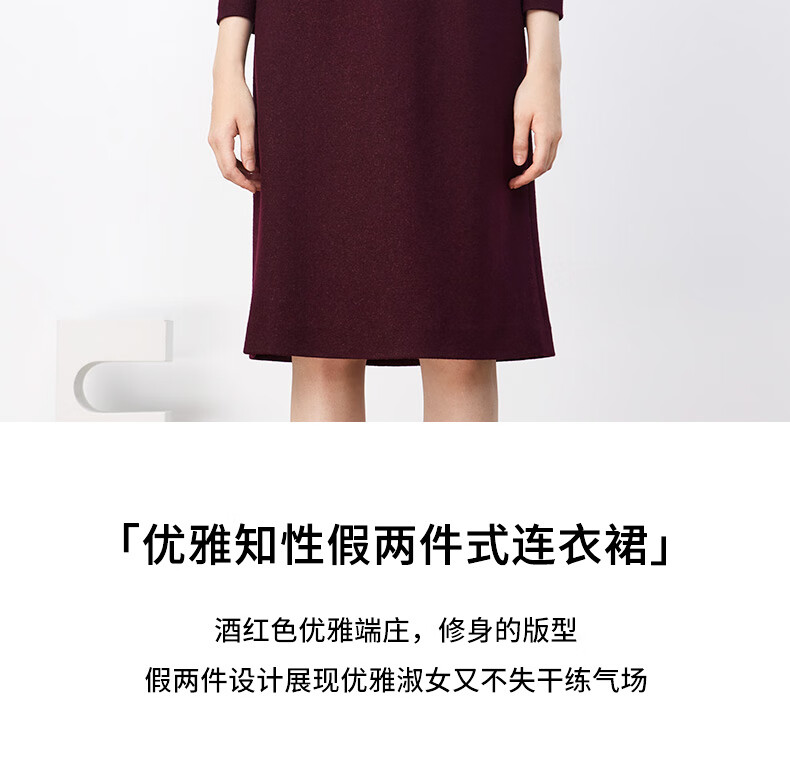 皮尔卡丹女装连衣裙秋冬高级感职业通勤修身连衣裙P3402E3846T0