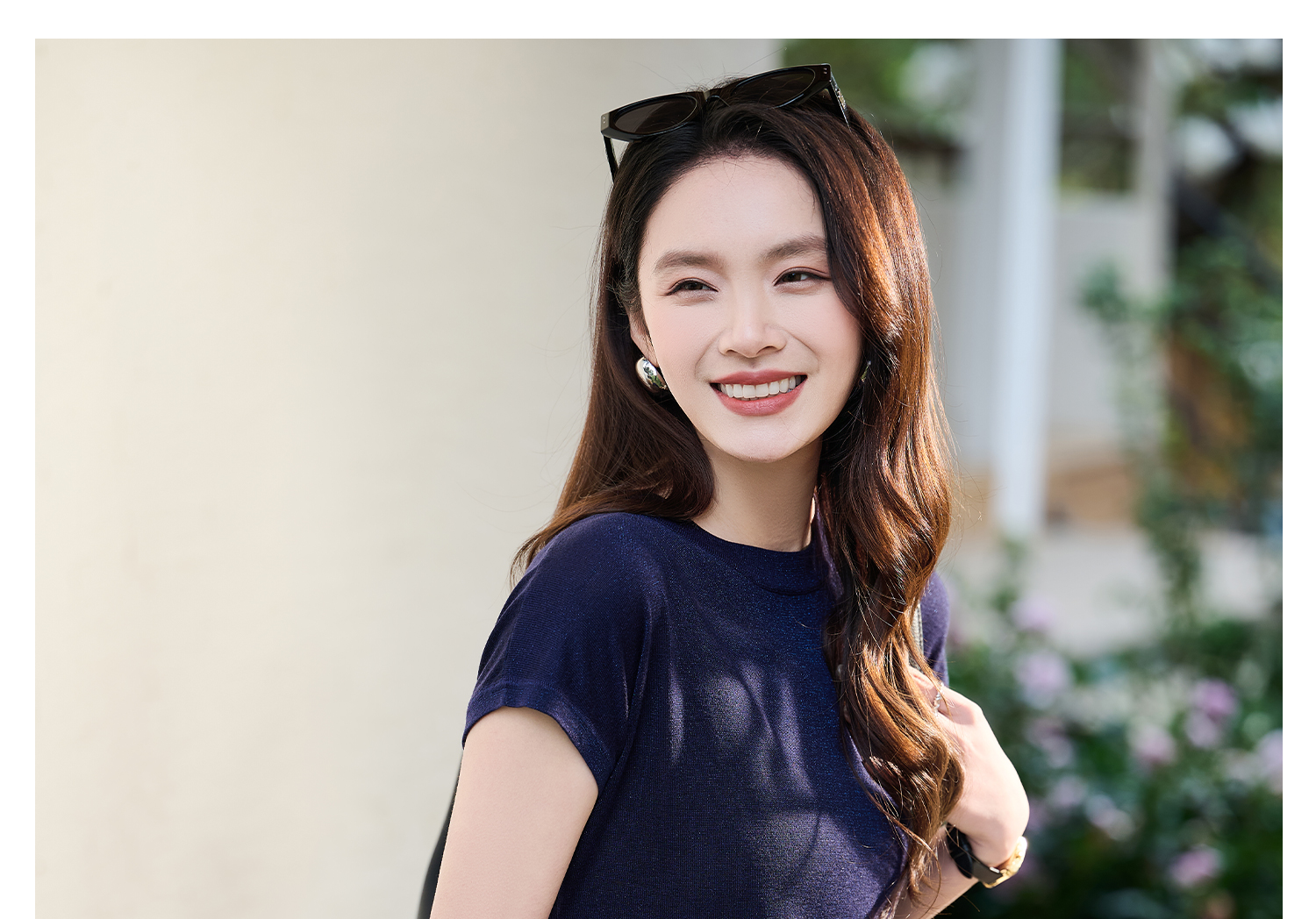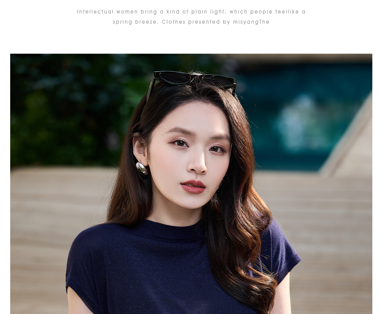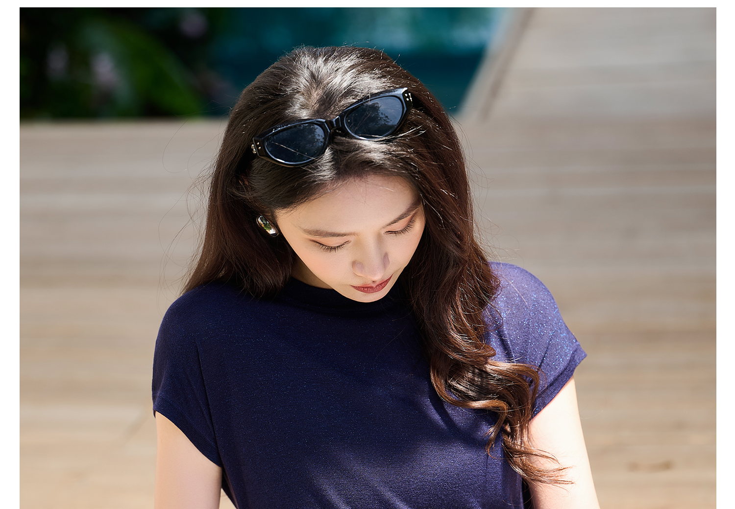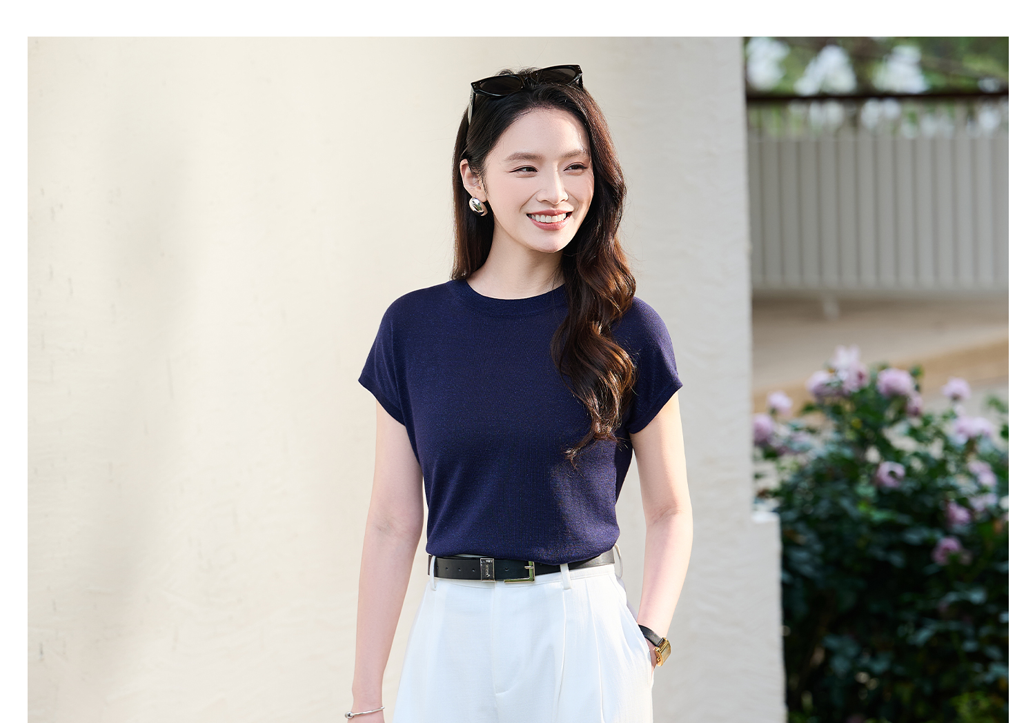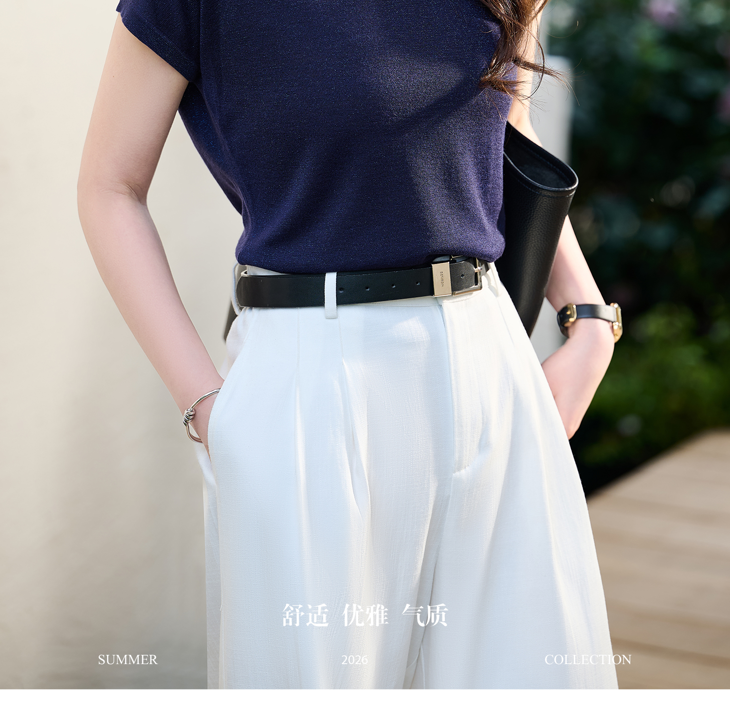 人手一件~天丝混纺针织T恤 细腻亮丝质感 米思阳2026春夏新款圆领莱赛尔短袖针织衫女套头T恤宽松半袖上衣6077