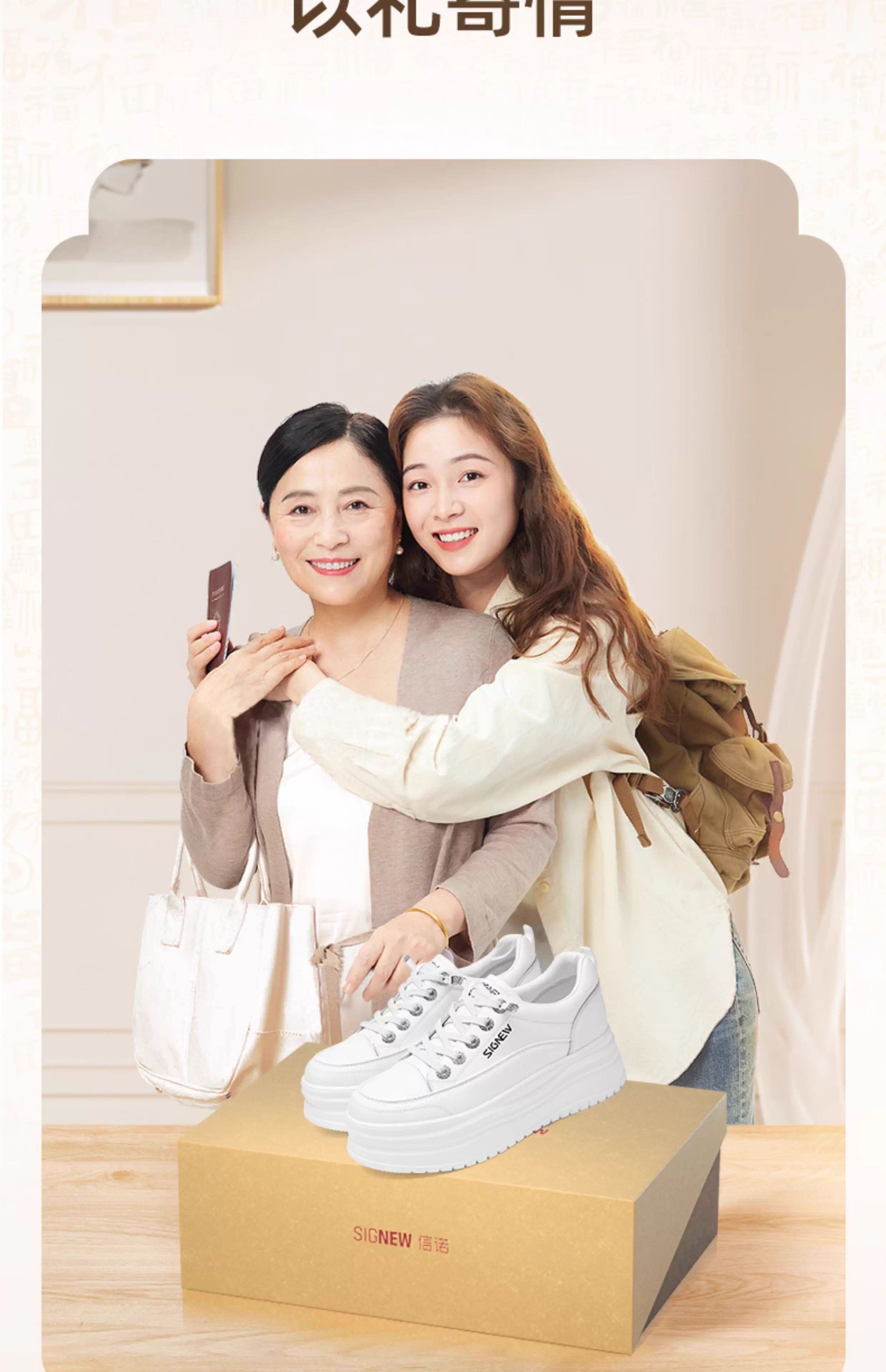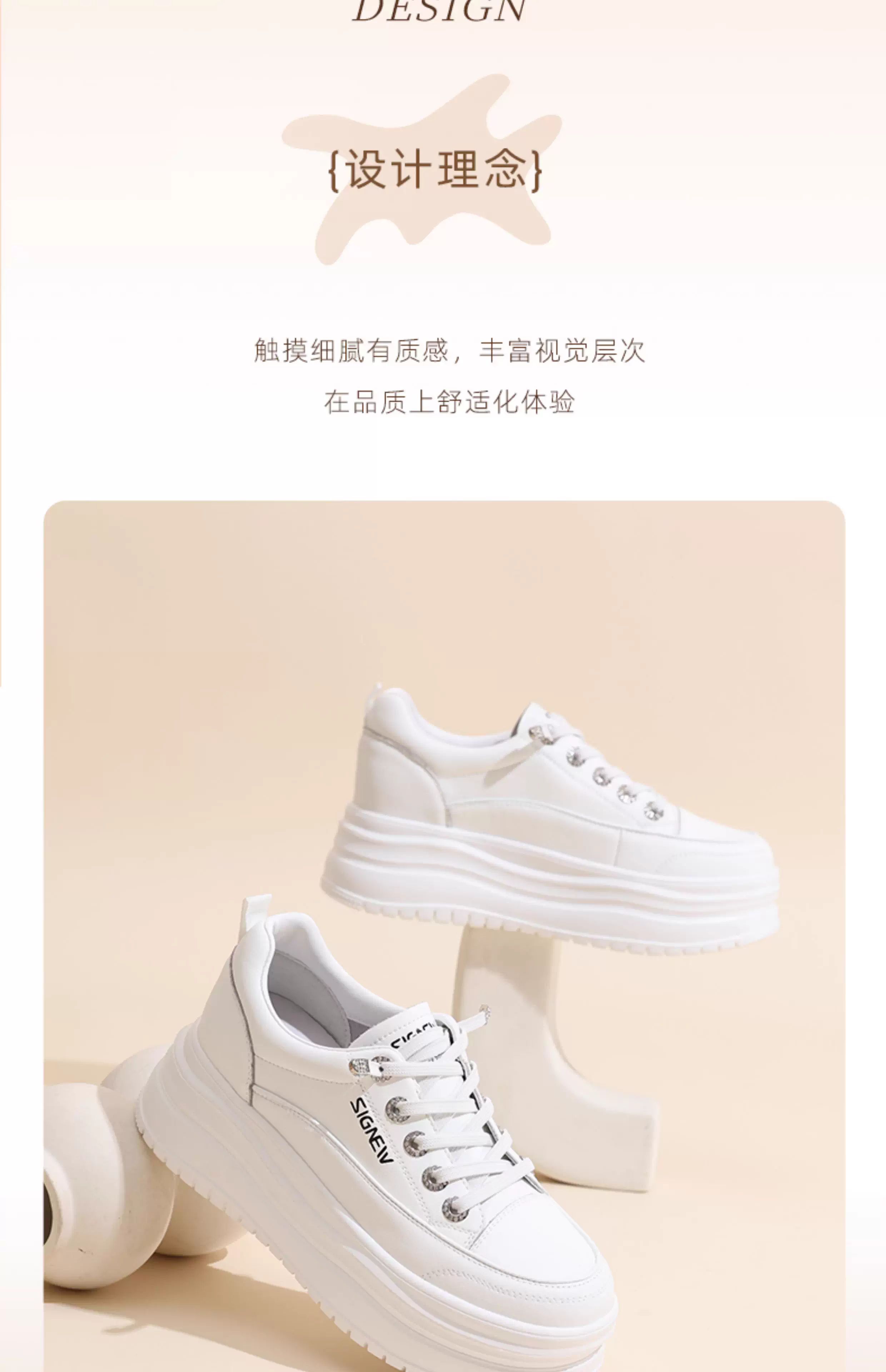 信诺百搭妈妈鞋小白鞋女款厚底增高松糕鞋透气休闲鞋2025新款秋季X5Q093-117