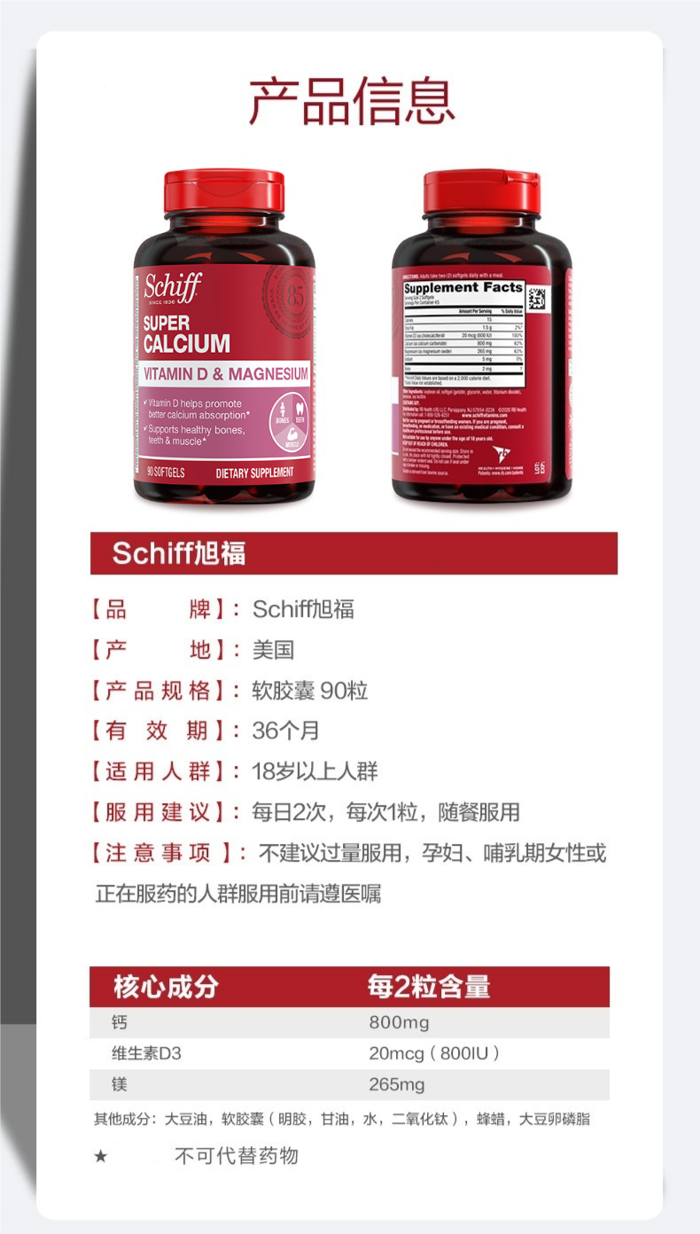 Schiff 旭福液体钙加镁钙片 90粒/瓶(现货库存较少,售空后预计11/18左右发货)