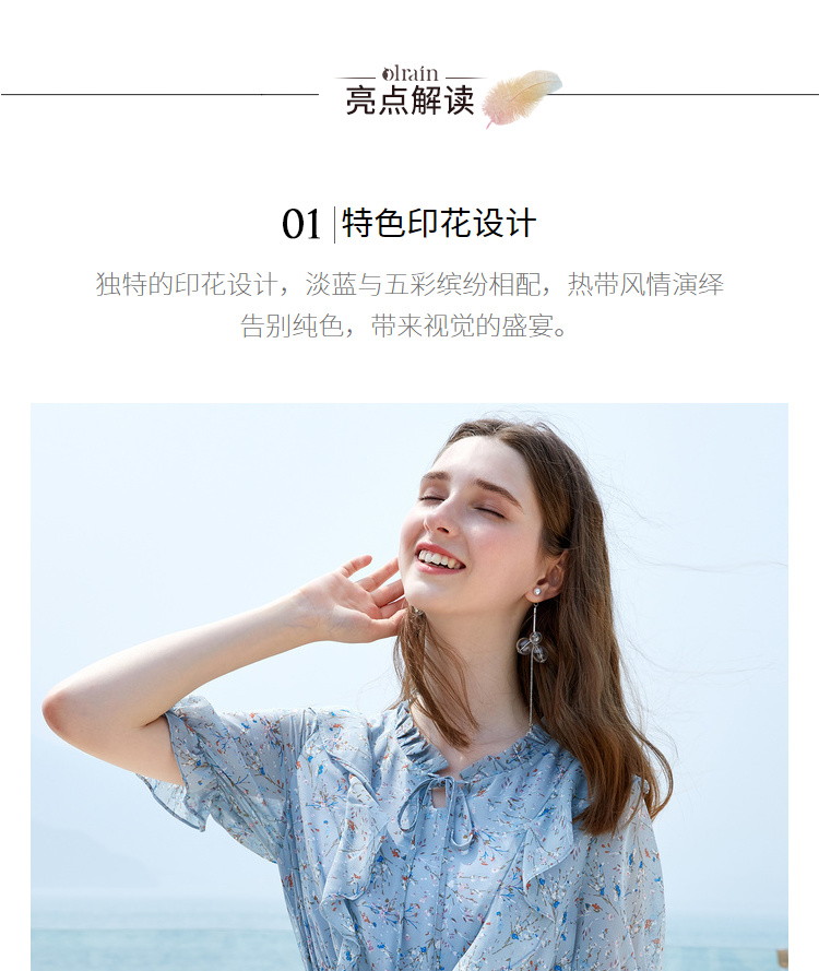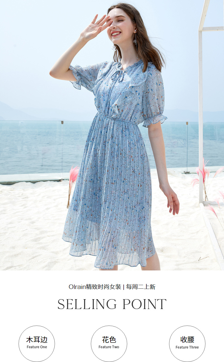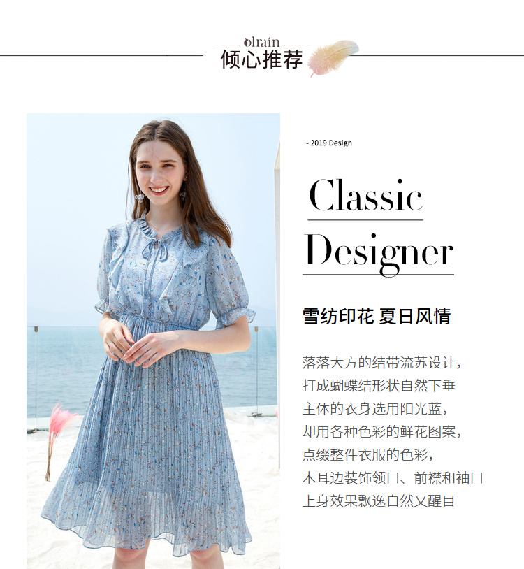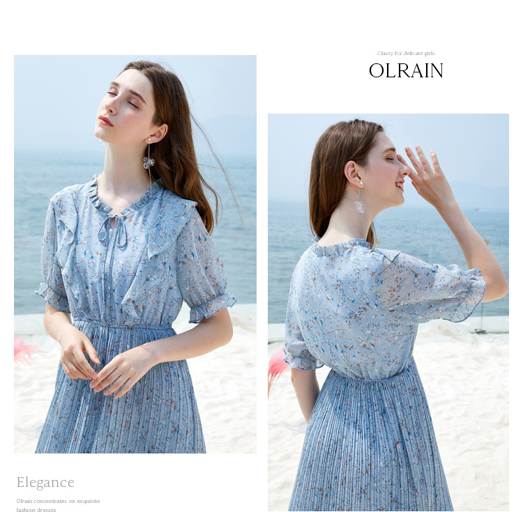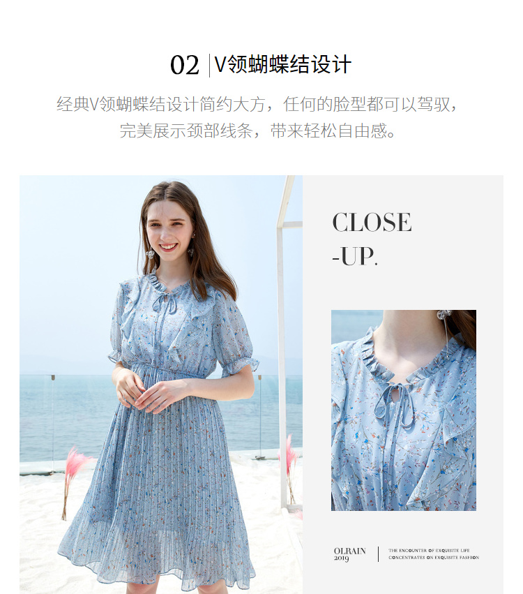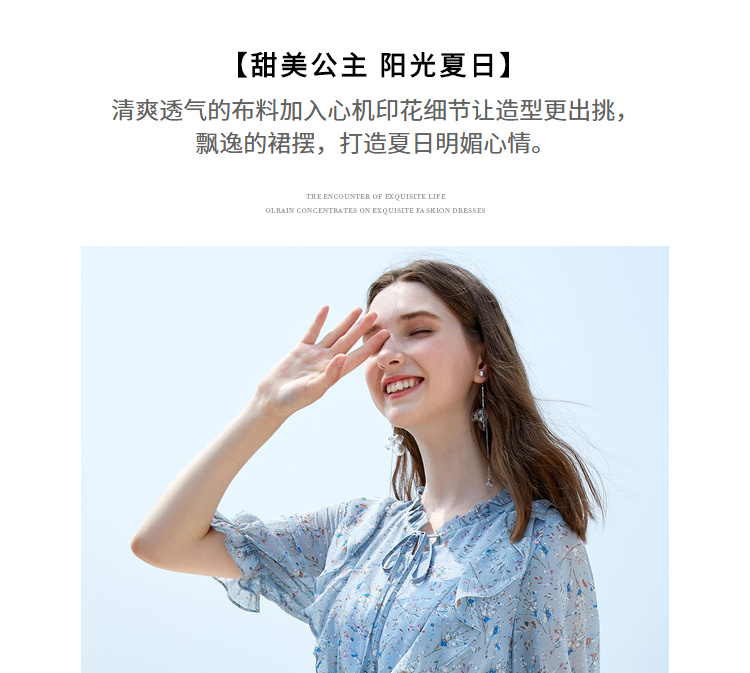 欧芮儿2019新款雪纺连衣裙女中长款女装夏装系带碎花荷叶边女裙子