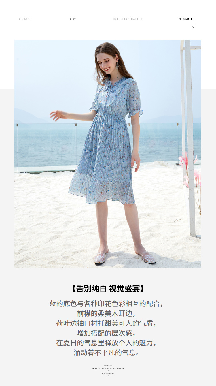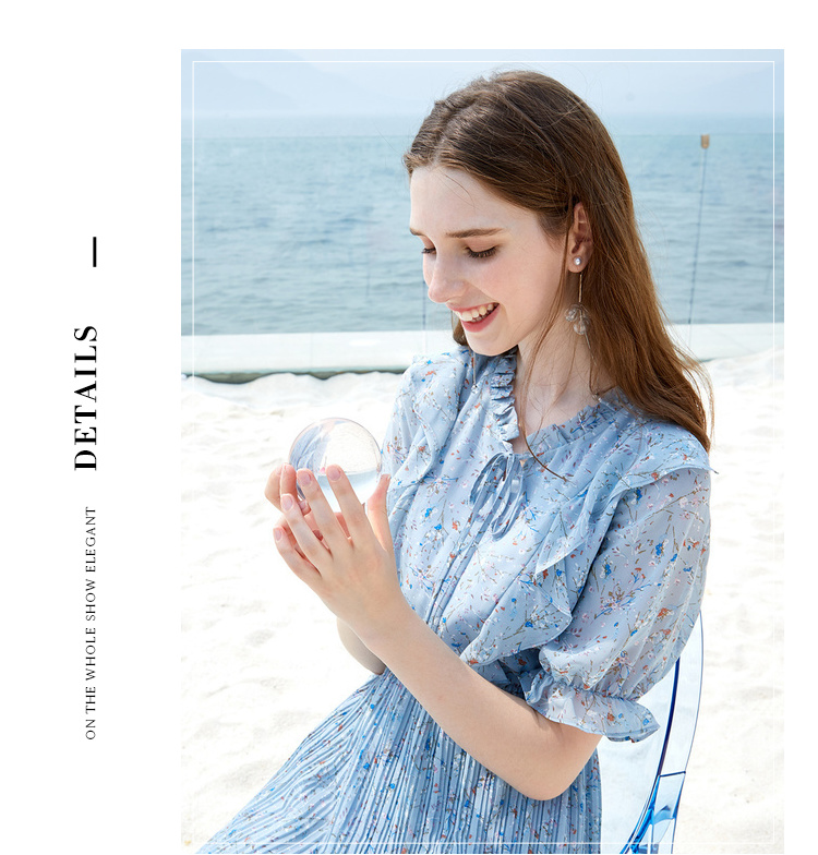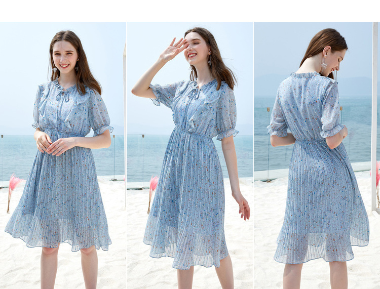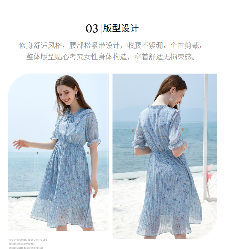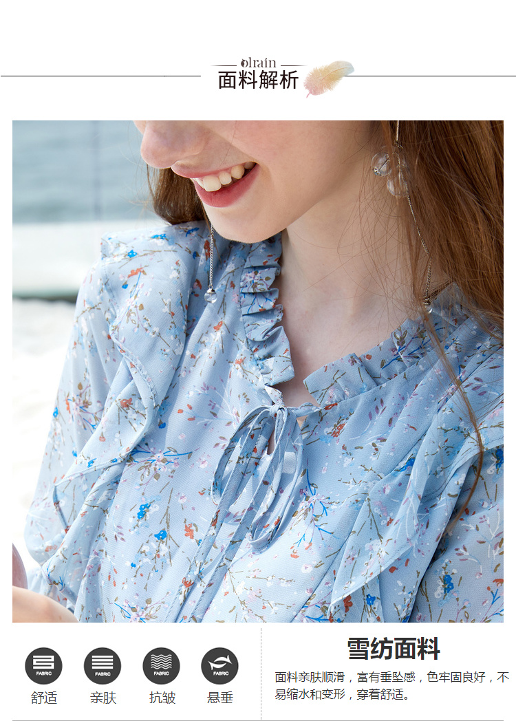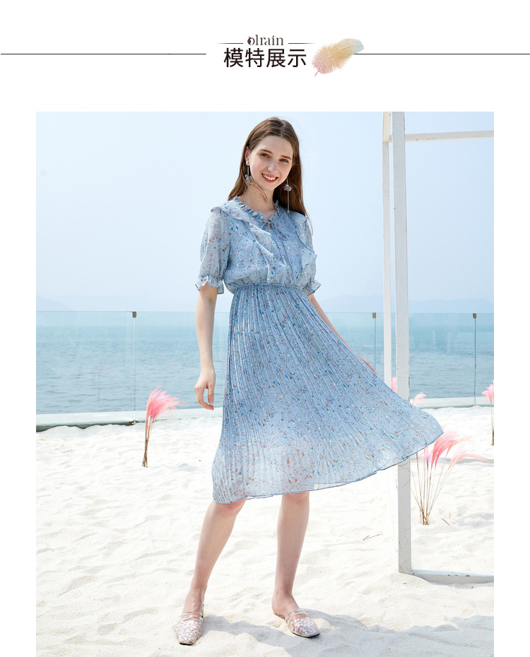 欧芮儿2019新款雪纺连衣裙女中长款女装夏装系带碎花荷叶边女裙子