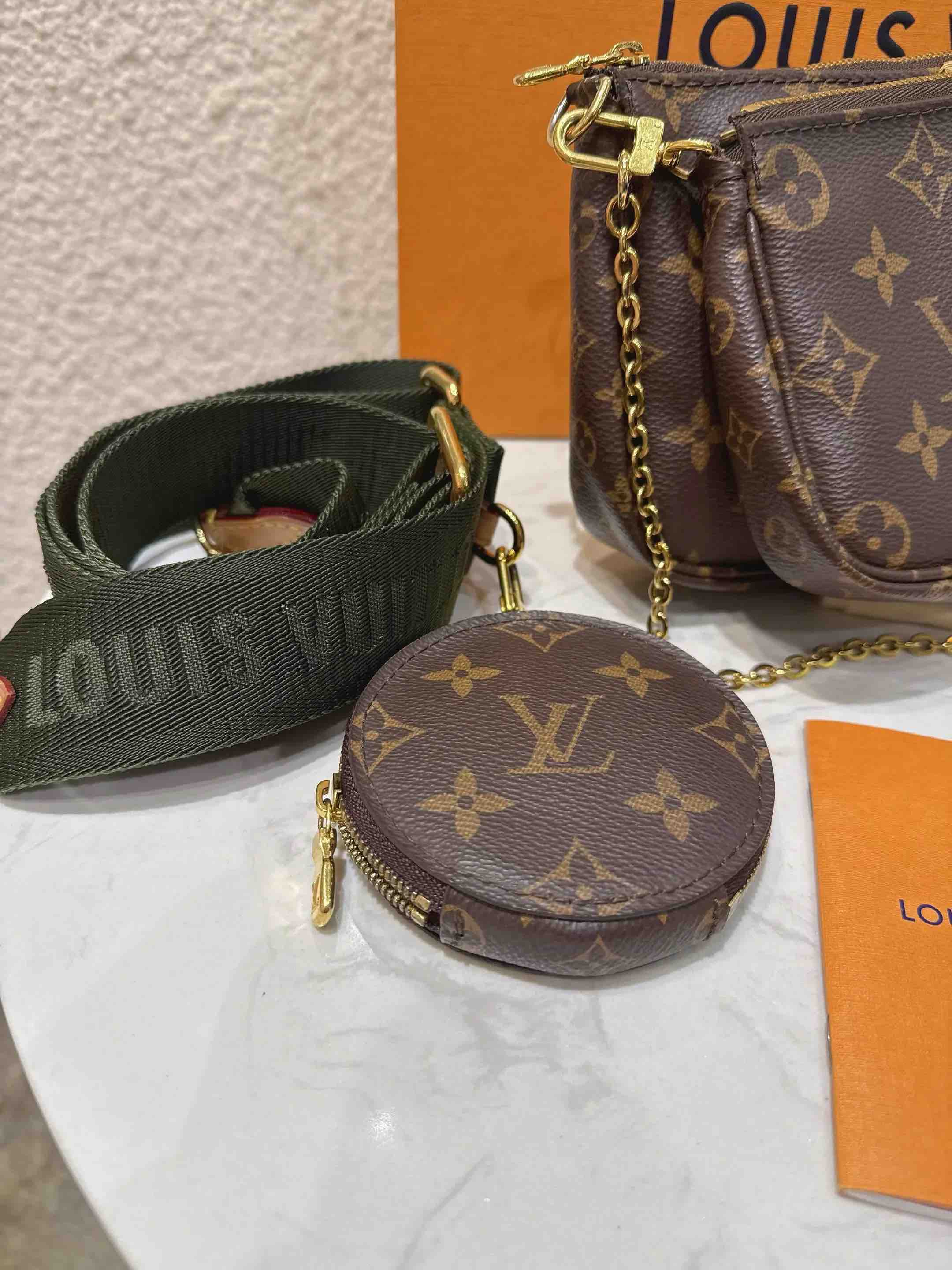【商品详情】正品二手 LV 老花 五合一 绿肩带 斜挎包🤎 95新 23×14 大全套配件:子袋*2 肩带 链条 票 防尘袋 盒子。植鞣革和金属正常使用感。一包多用的通勤出街神器