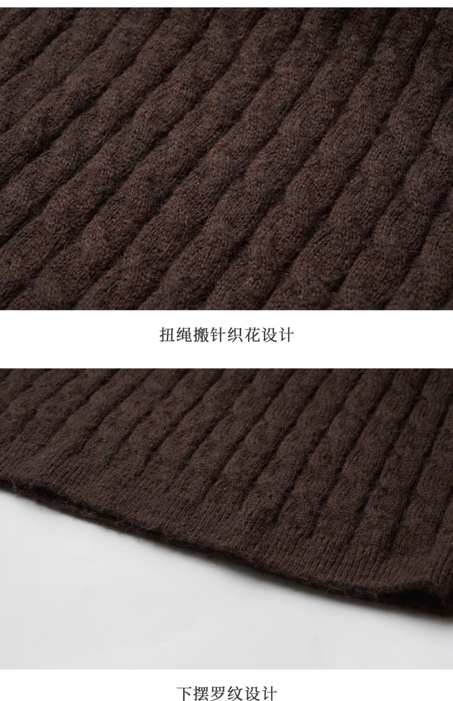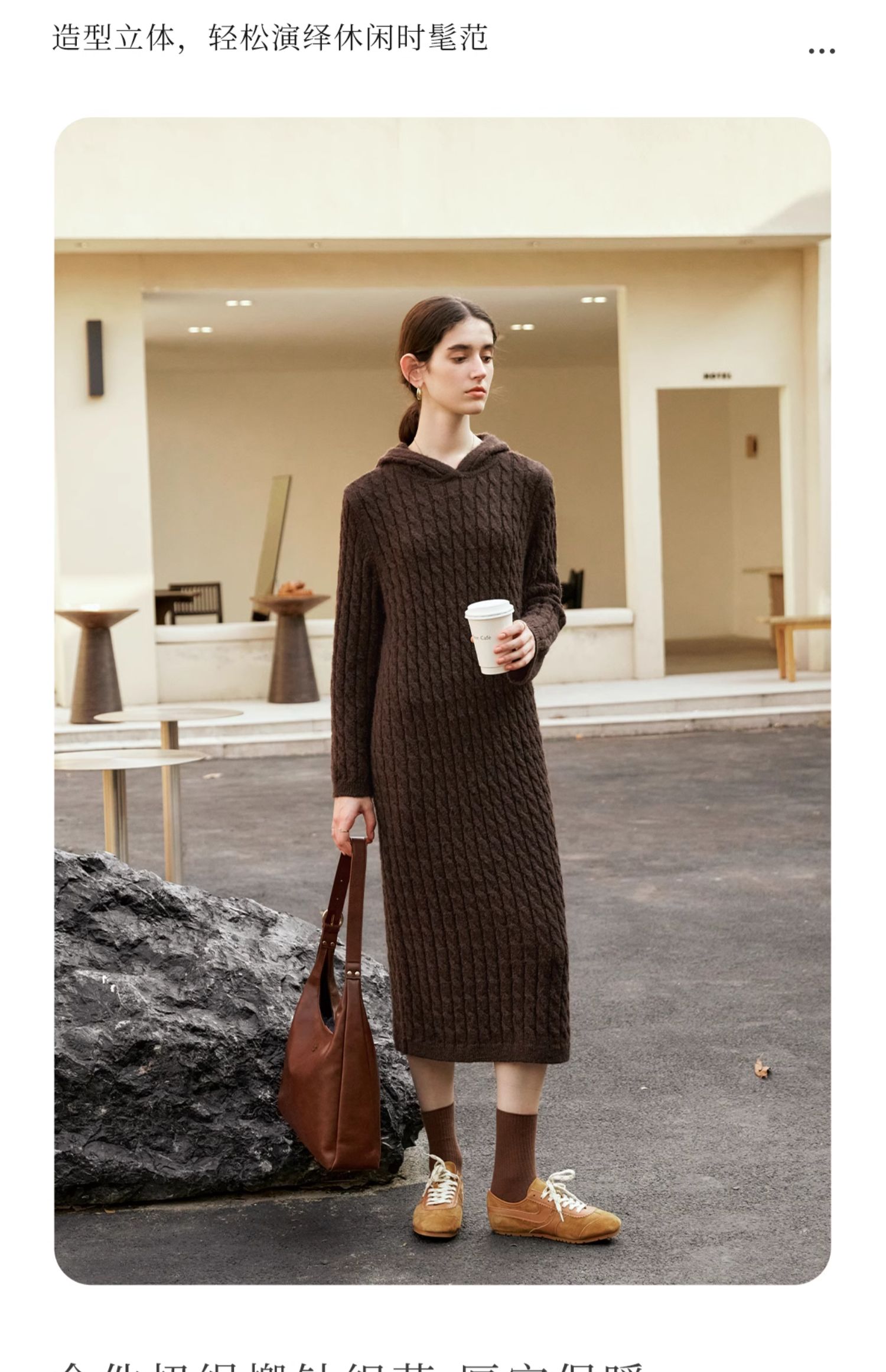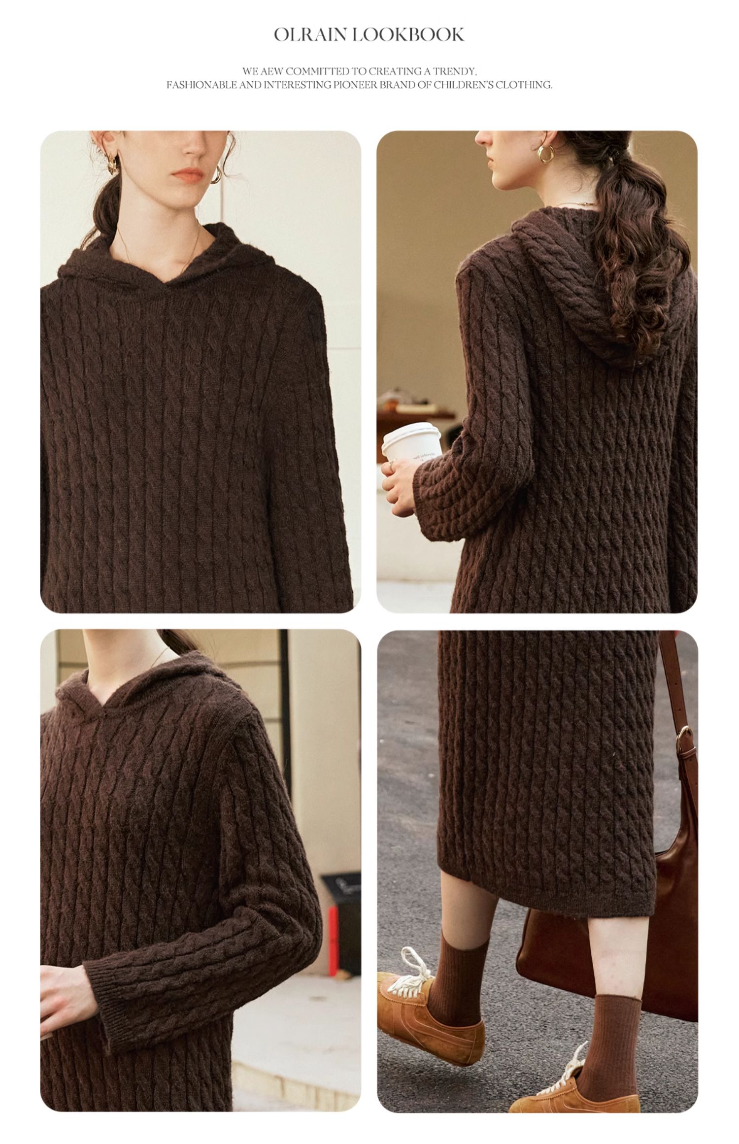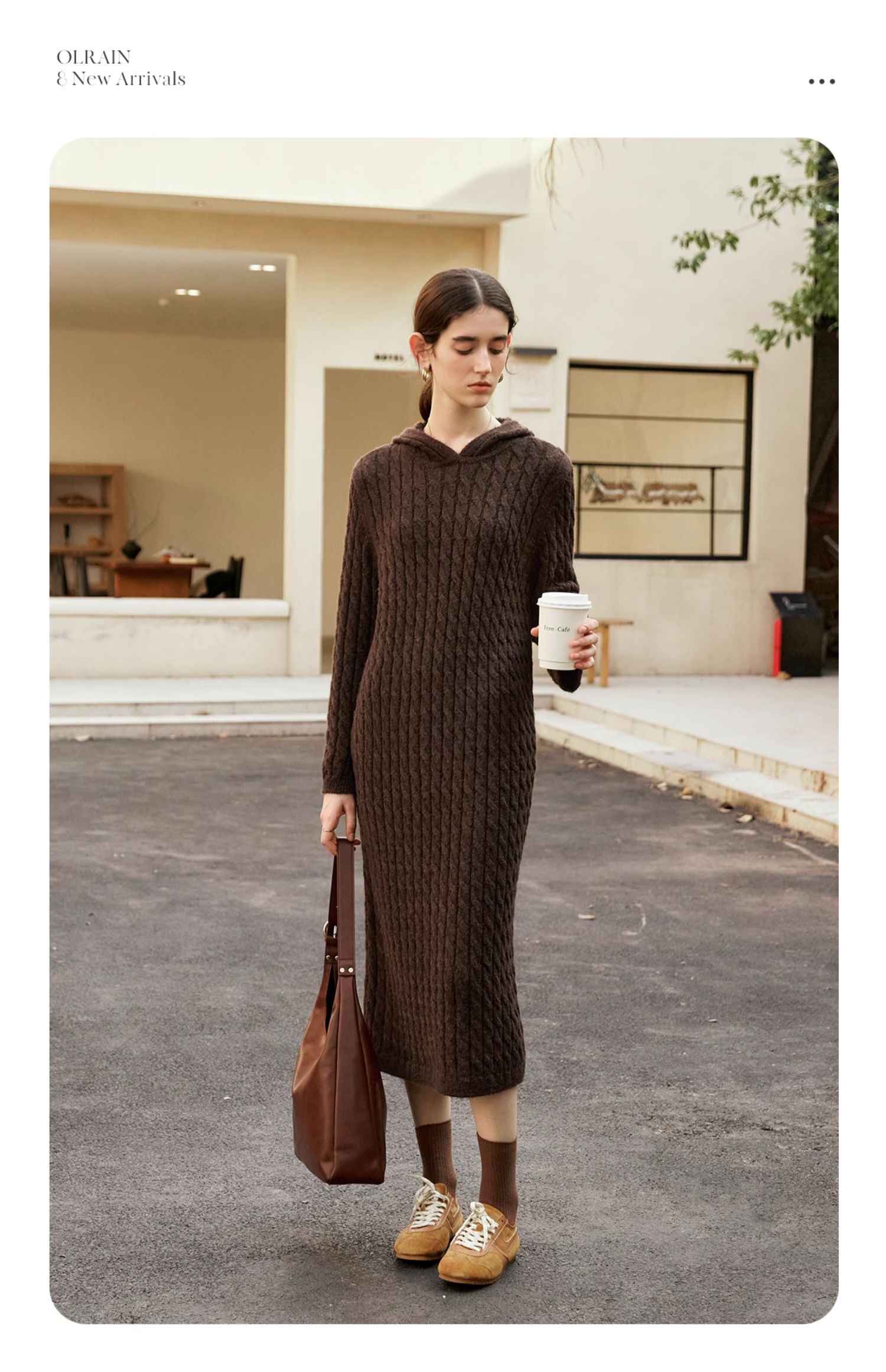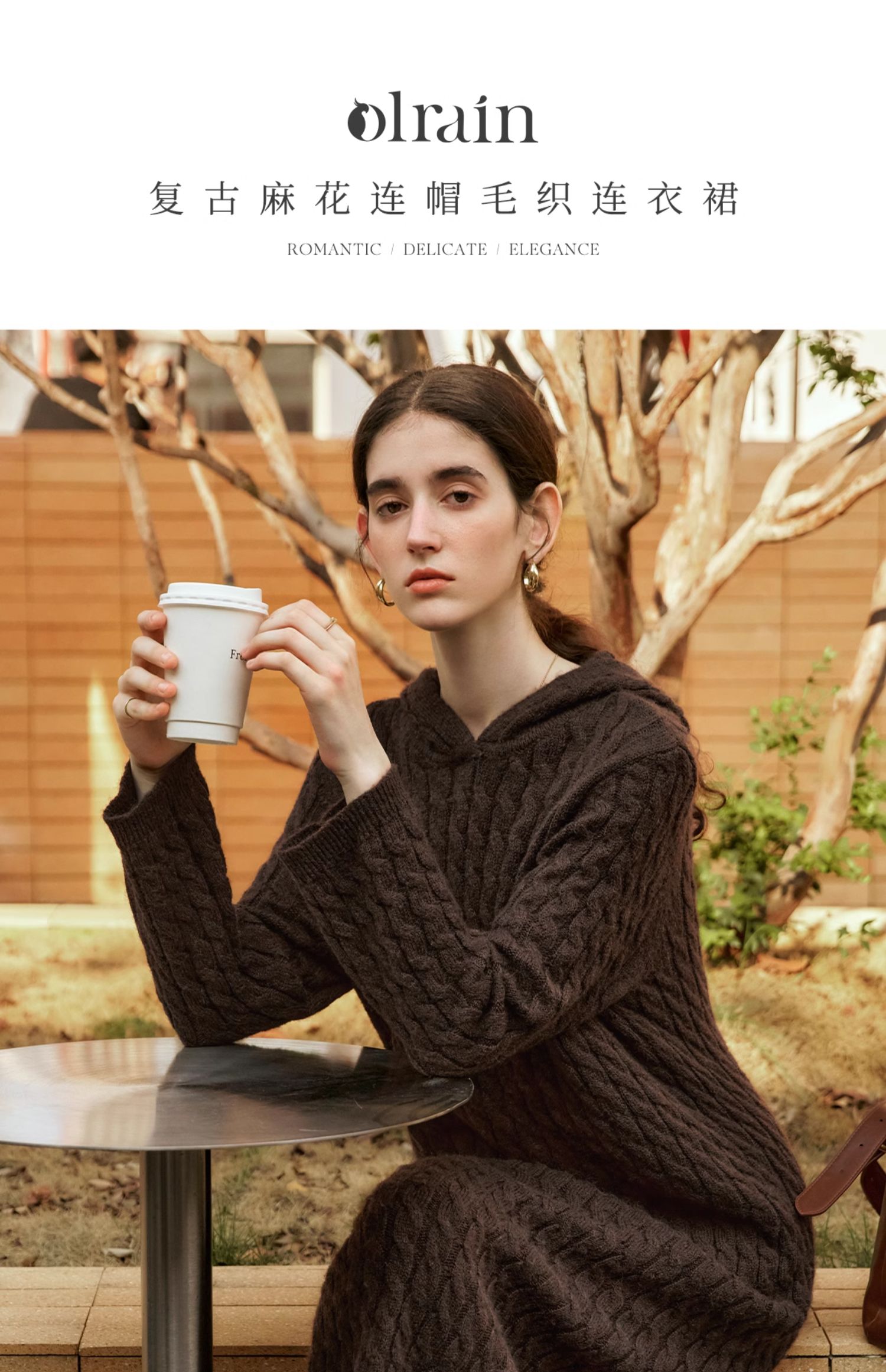 OLrain欧芮儿法式咖色连衣裙女冬季2024年新款麻花复古慵懒毛织裙