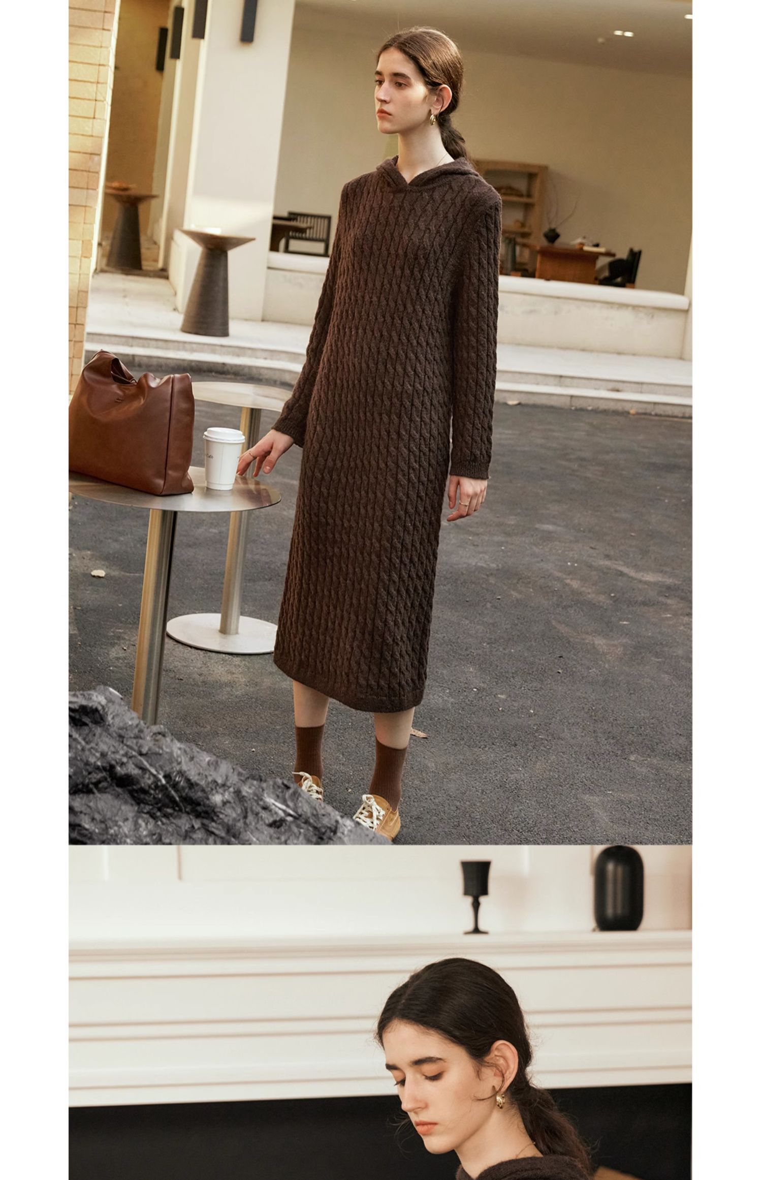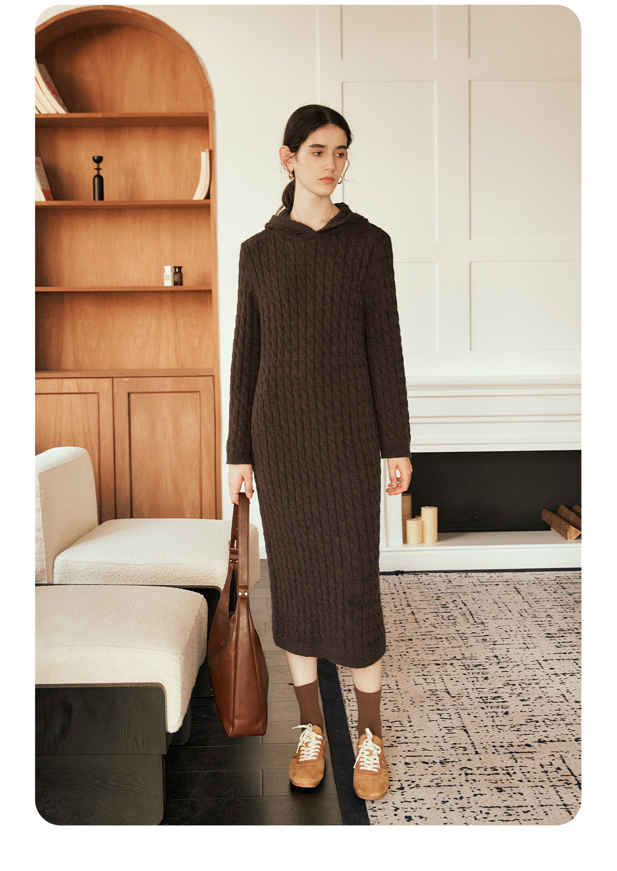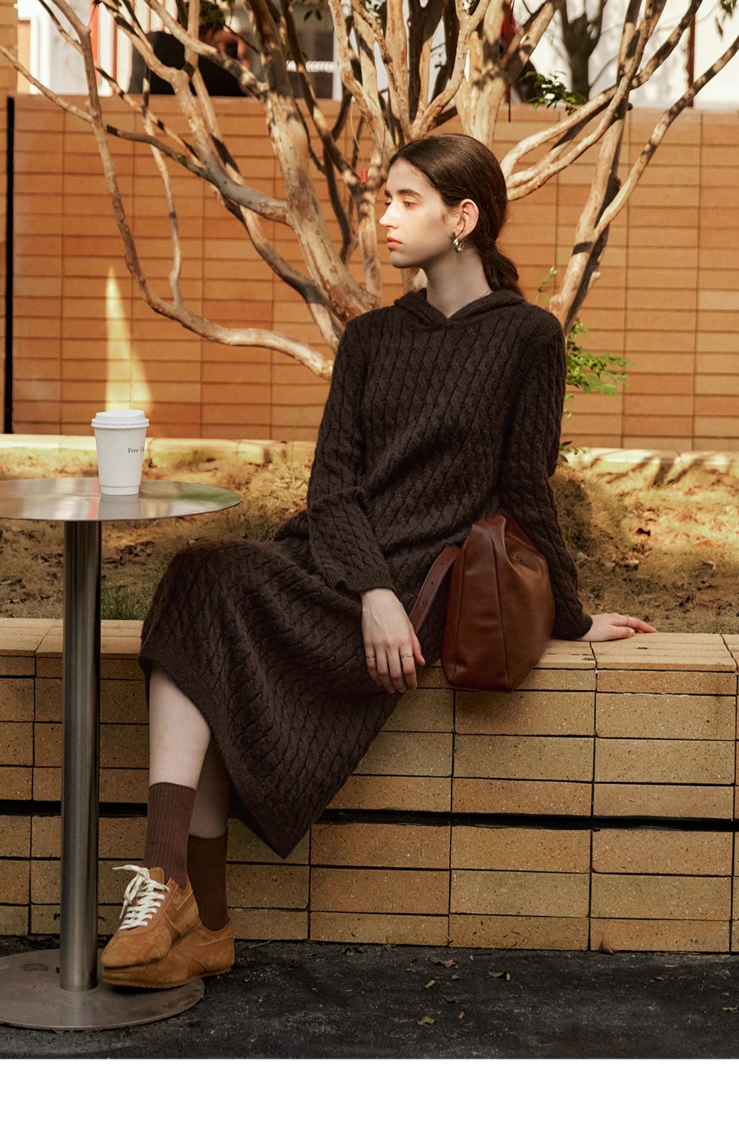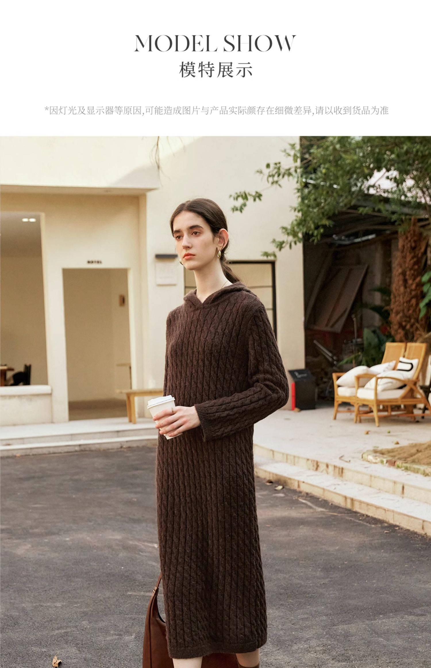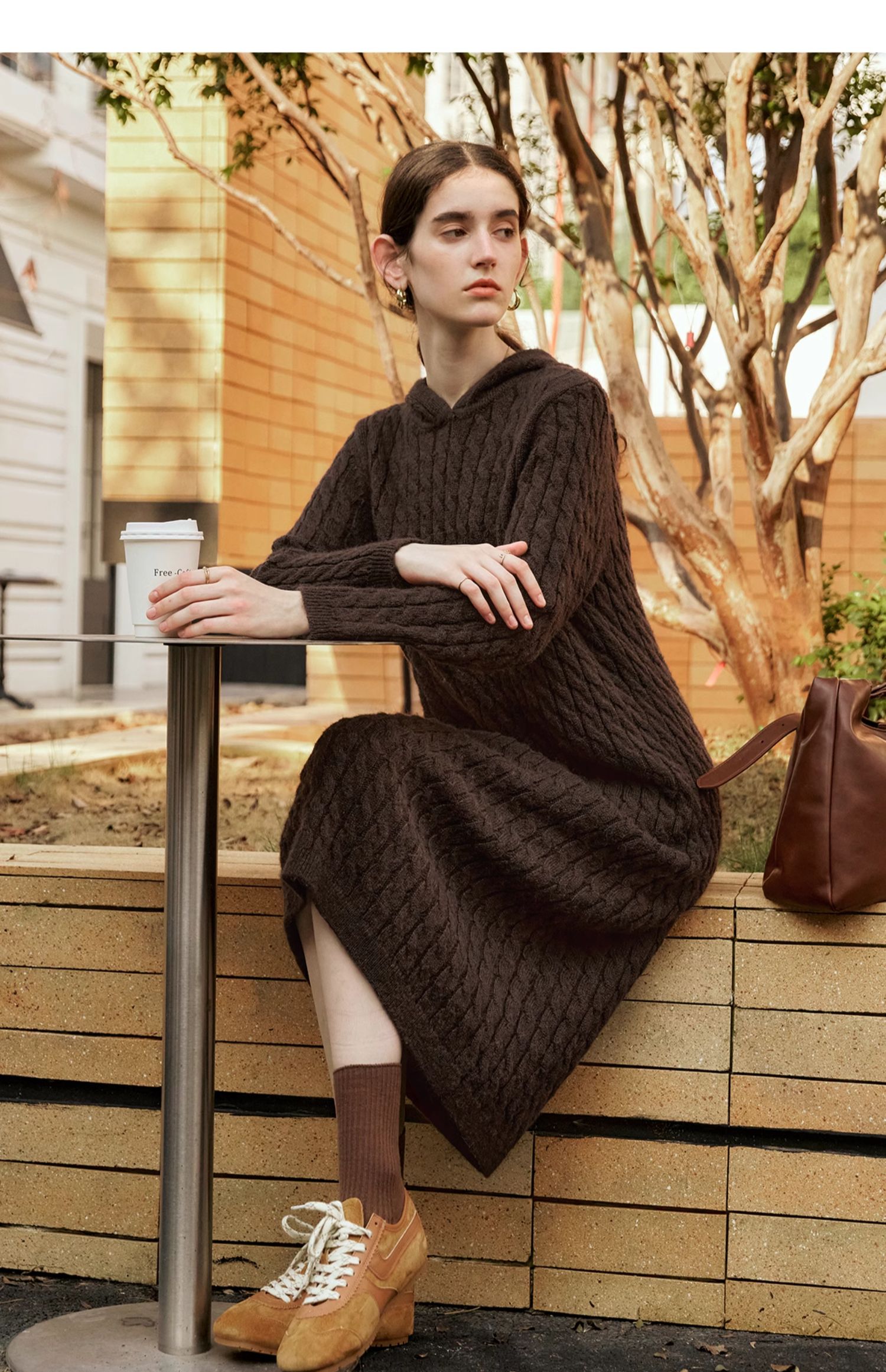 OLrain欧芮儿法式咖色连衣裙女冬季2024年新款麻花复古慵懒毛织裙