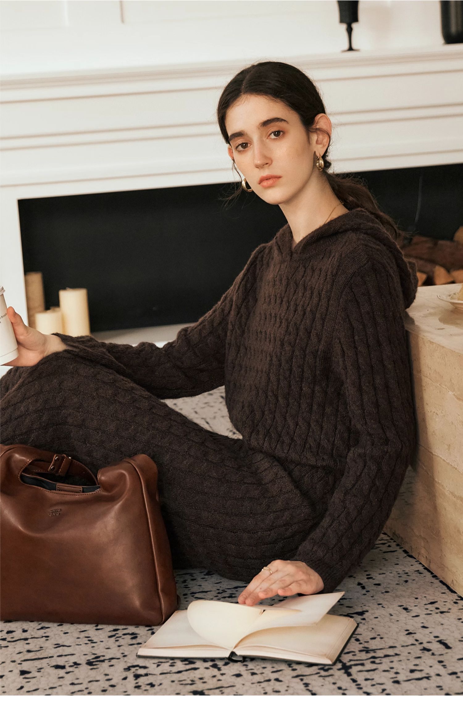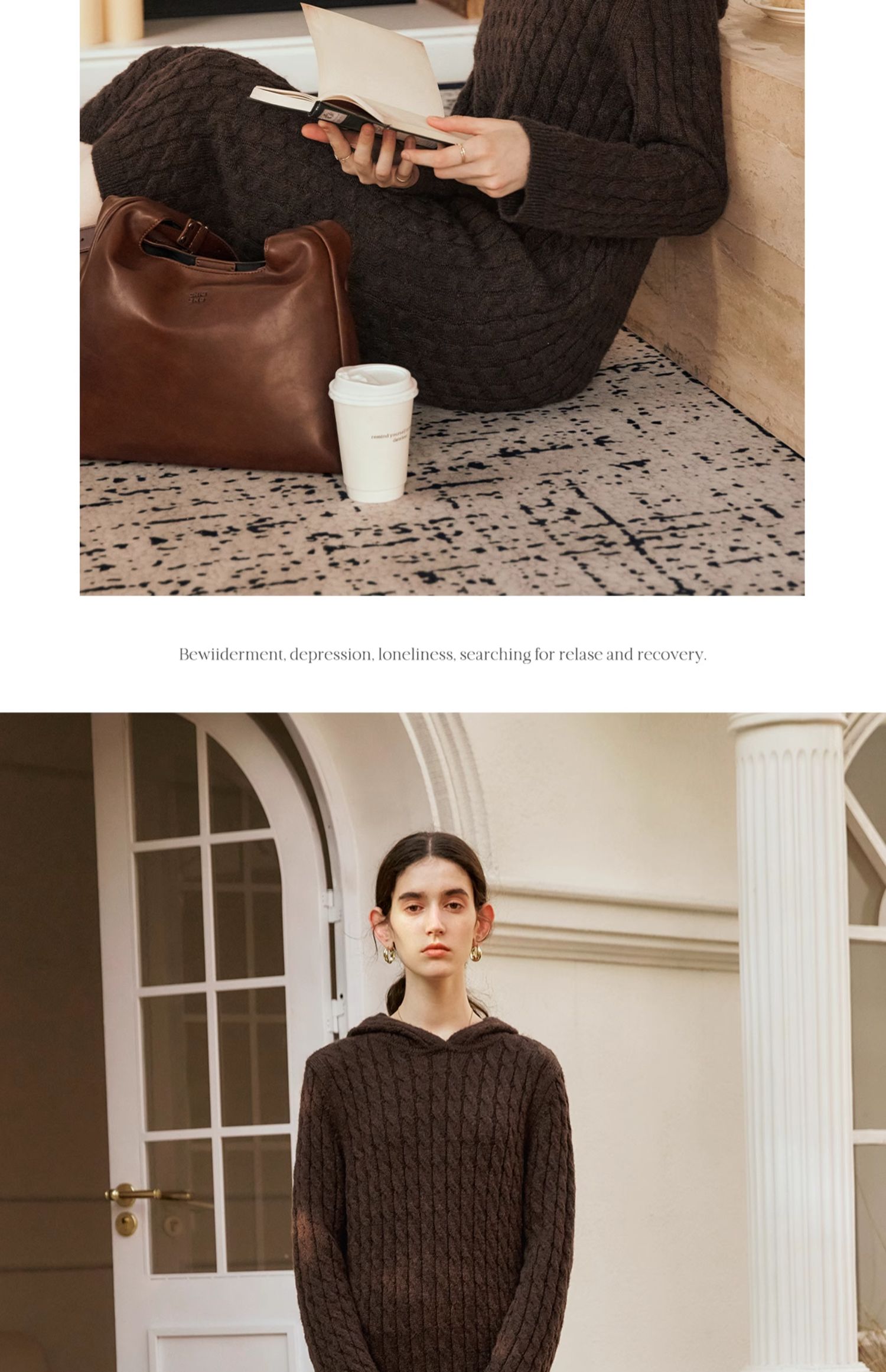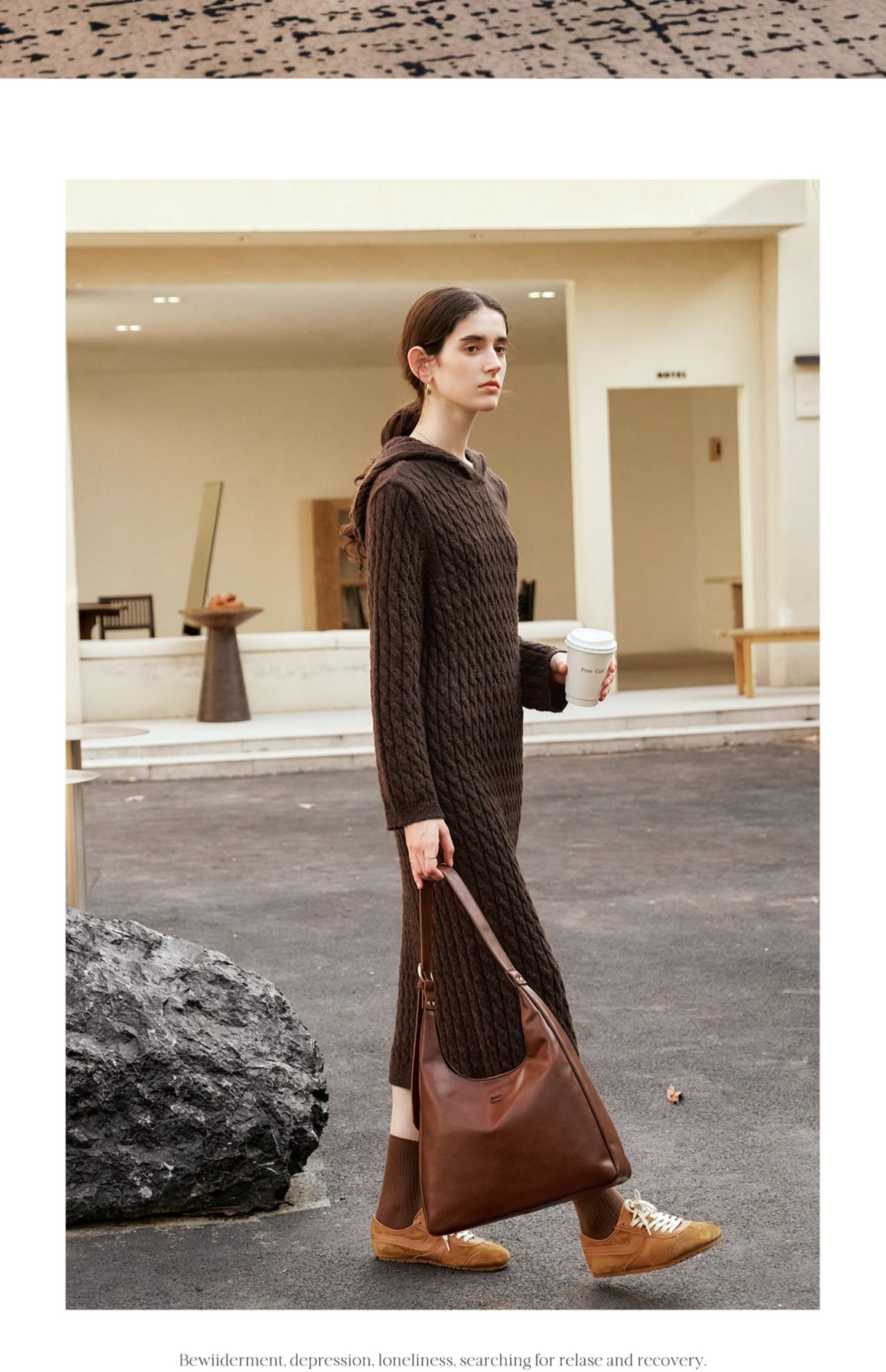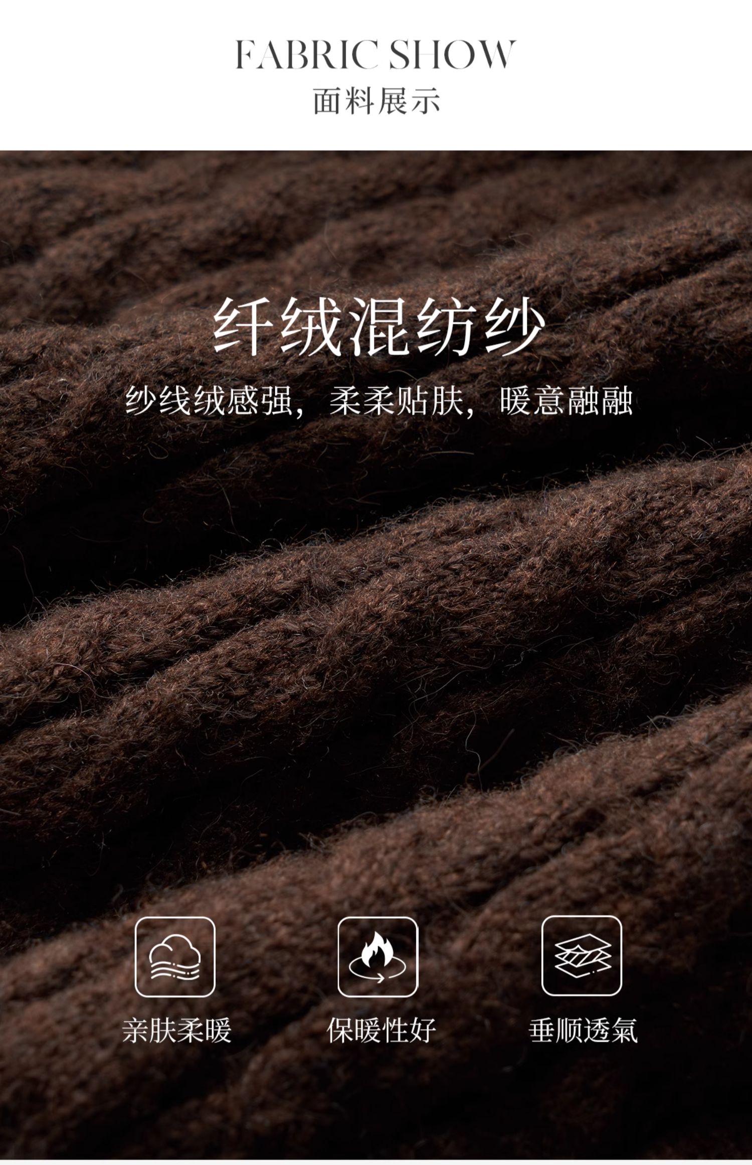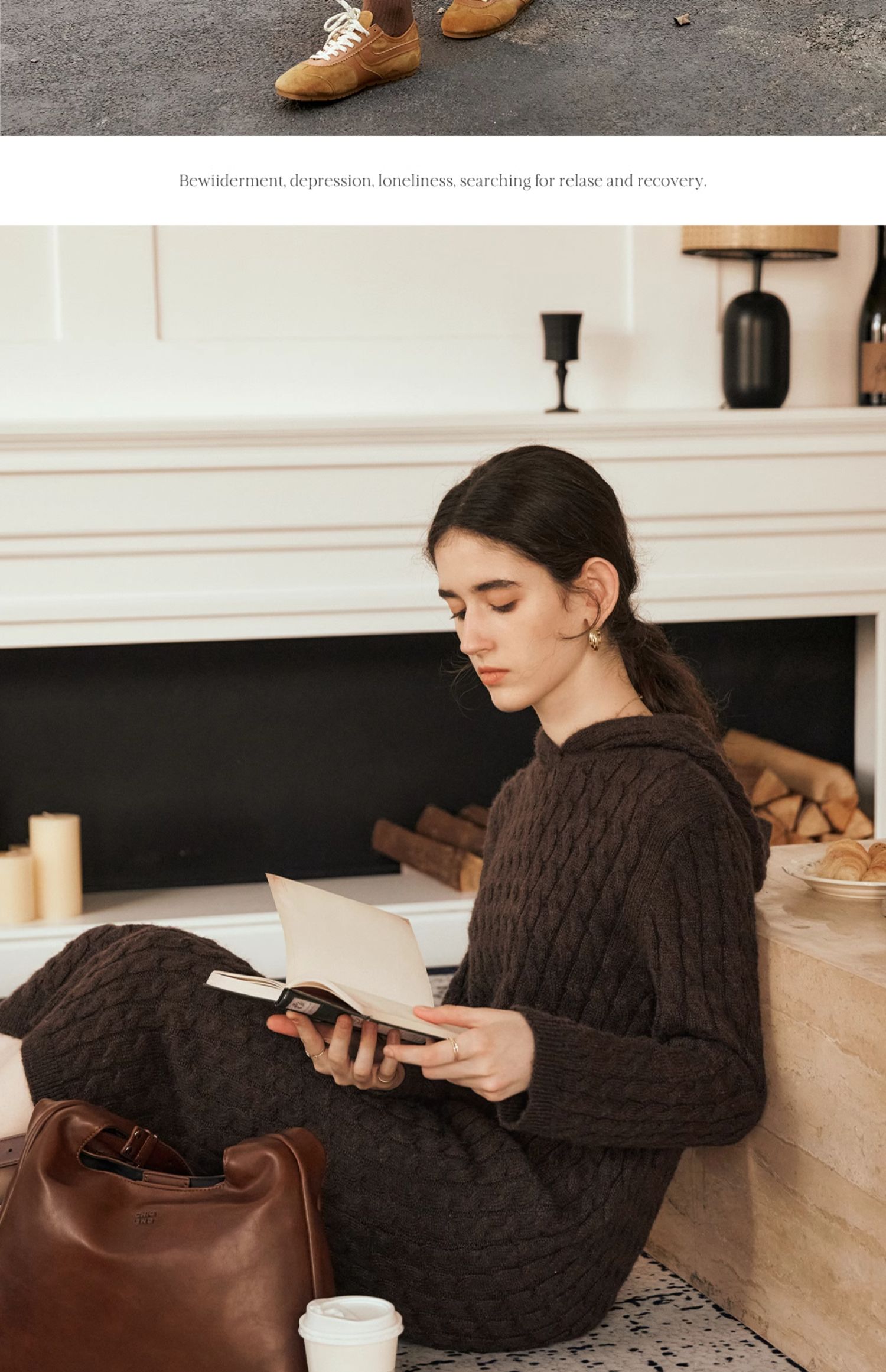 OLrain欧芮儿法式咖色连衣裙女冬季2024年新款麻花复古慵懒毛织裙