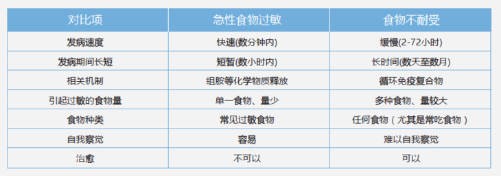 * 食物不耐受与食物过敏的区别: