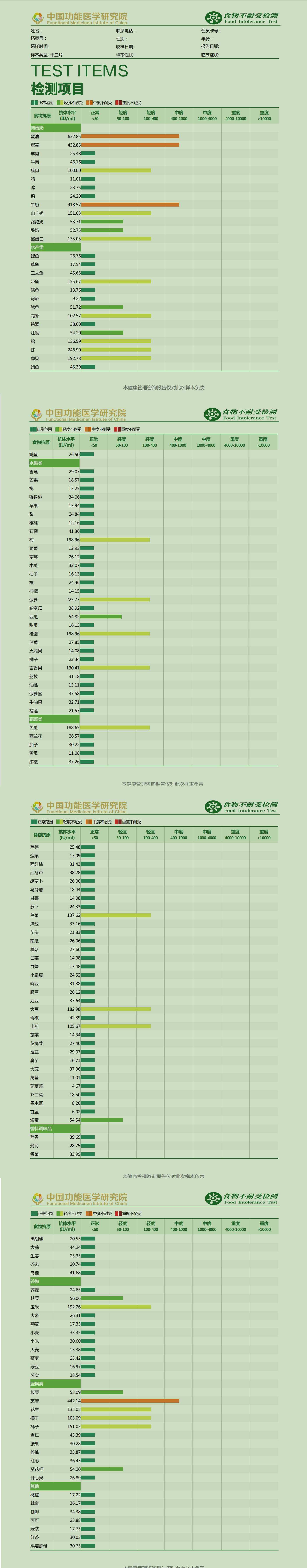 * 食物不耐受132项检测的具体食物: