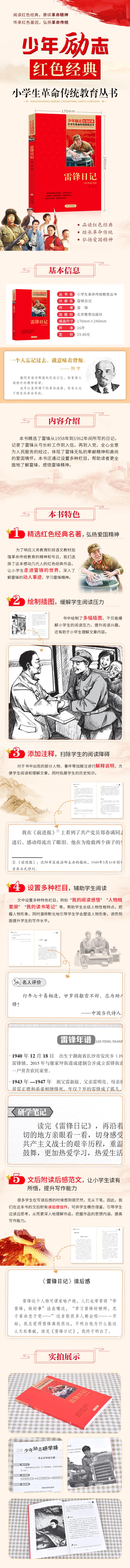 雷锋于1957年秋天开始学写日记,他在日记里做了不少读书摘记,写了很多阅读心得,其中最多的就是学习毛主席著作后的感想和认识。他还在日记里记录了一些科学技术方面的内容,如拖拉机的性能、拖拉机驾驶规则,还有会议记录、自己在大会上的发言提纲等。1962年雷锋因公殉职,第二年他的日记得以整理出版。本书精选了雷锋从1958年到1962年间所写的日记,记录了雷锋从弓长岭工作到入伍,再到入党,全心全意为人民服务的经过。阅读《雷锋日记》,有助于我们接近雷锋,了解雷锋,理解雷锋,学习雷锋,并传承和发扬雷锋精神。