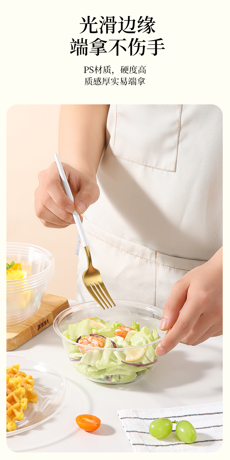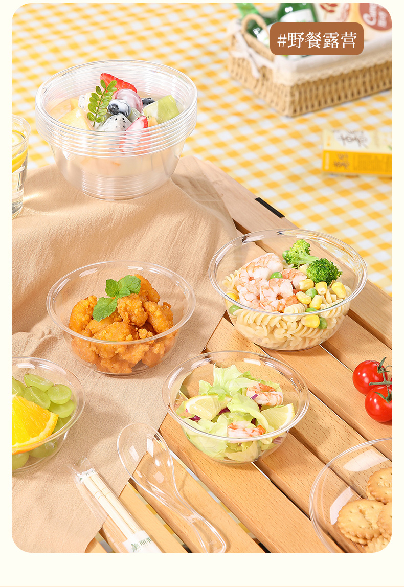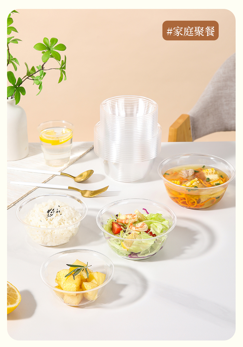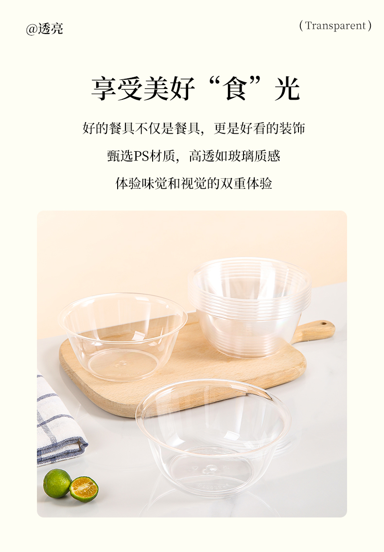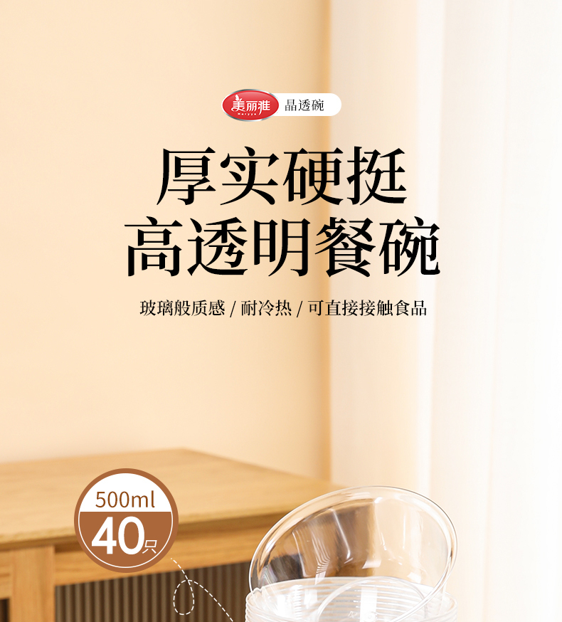 美丽雅晶透碗水晶航空碗一次性加厚圆形餐碗