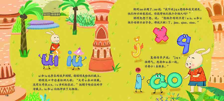 本册书中,聪明兔将认识8个复韵母和1个特殊韵母,他们各个身怀绝技。小朋友一定很好奇他们都有什么本领吧?让我们一起去看看吧!