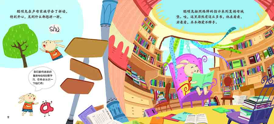 聪明兔在声母城堡认识了23个声母,并学会了拼读方法。他觉得有趣极了,见到什么都想拼一拼。
