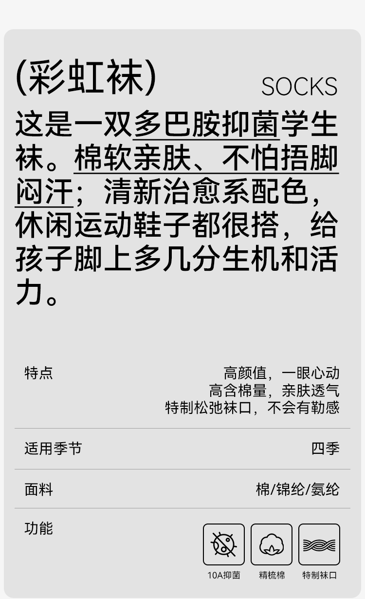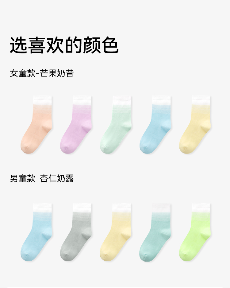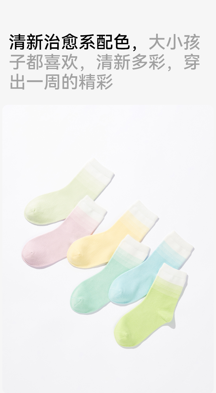 *10A级长效抑菌||米乐鱼儿童缤纷马卡龙袜-中筒5双