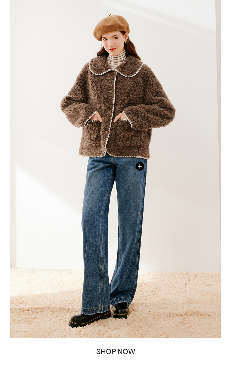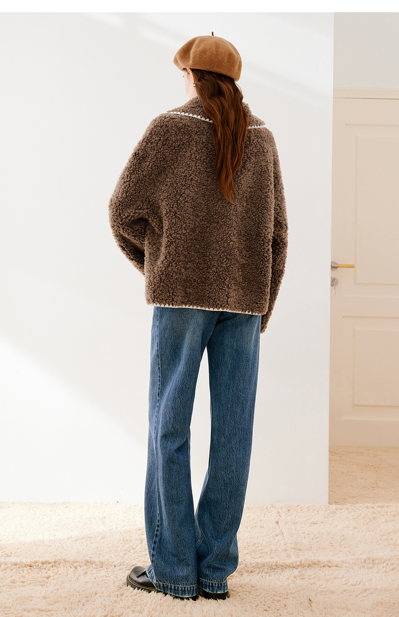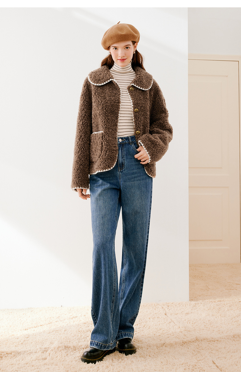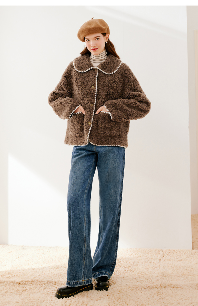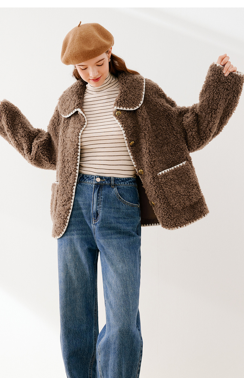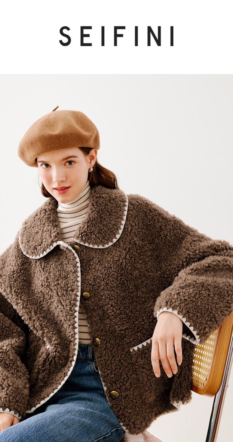 【严选】诗凡黎冬娃娃领学院风撞色皮草7EA311541