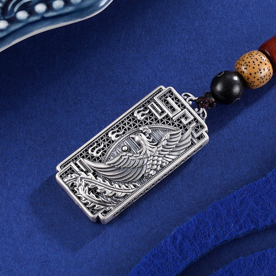 子佩集S999银【龙章凤姿】钥匙扣【DZ826】花丝仿古凤牌纯银2402