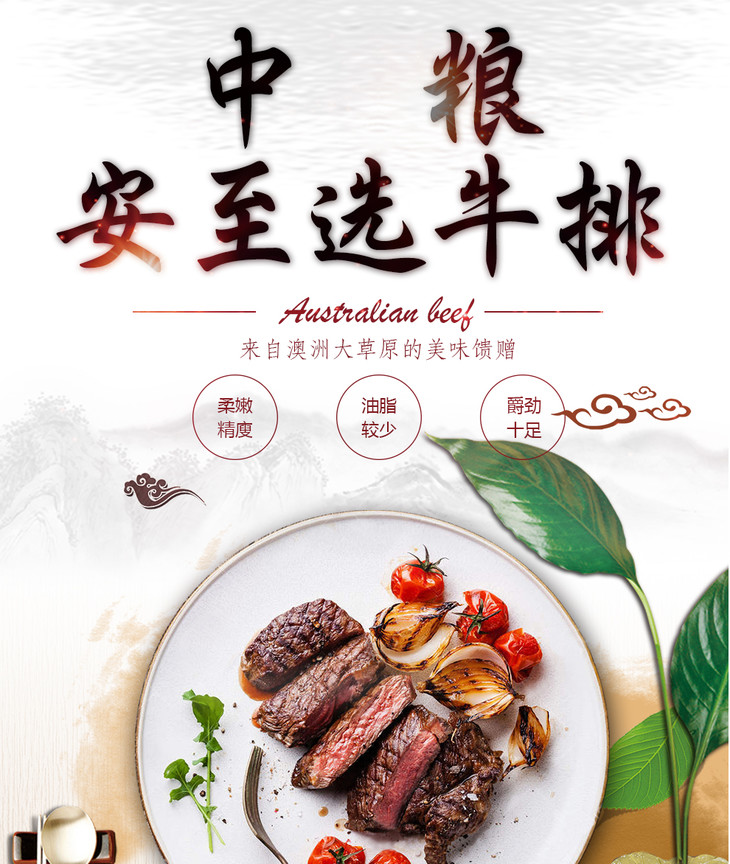 【分仓直发包邮】中粮安至选进口牛肉礼盒1.25kg 澳洲原切和牛M9雪花牛排150g*1 澳洲原切S级西冷牛排150g*2 澳洲原切S级眼肉牛排150g*2 原切牛肋条块500g*1