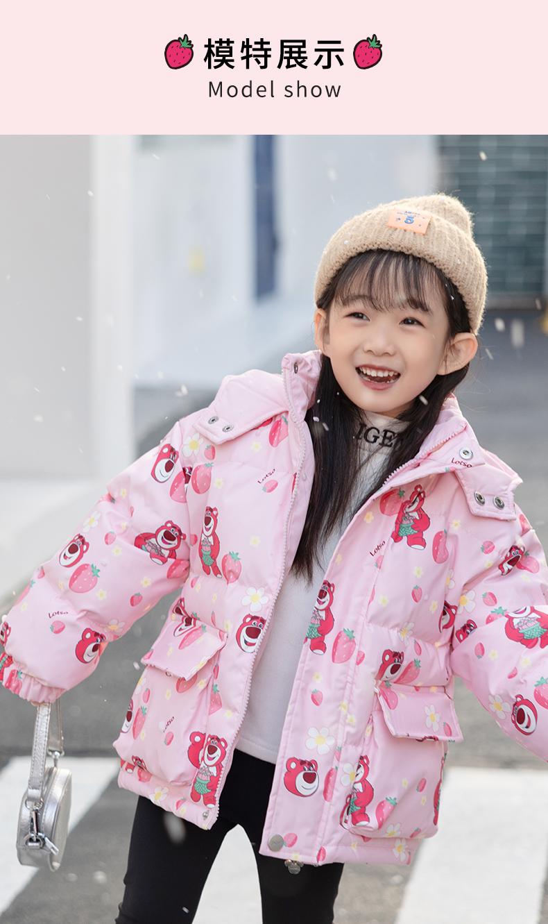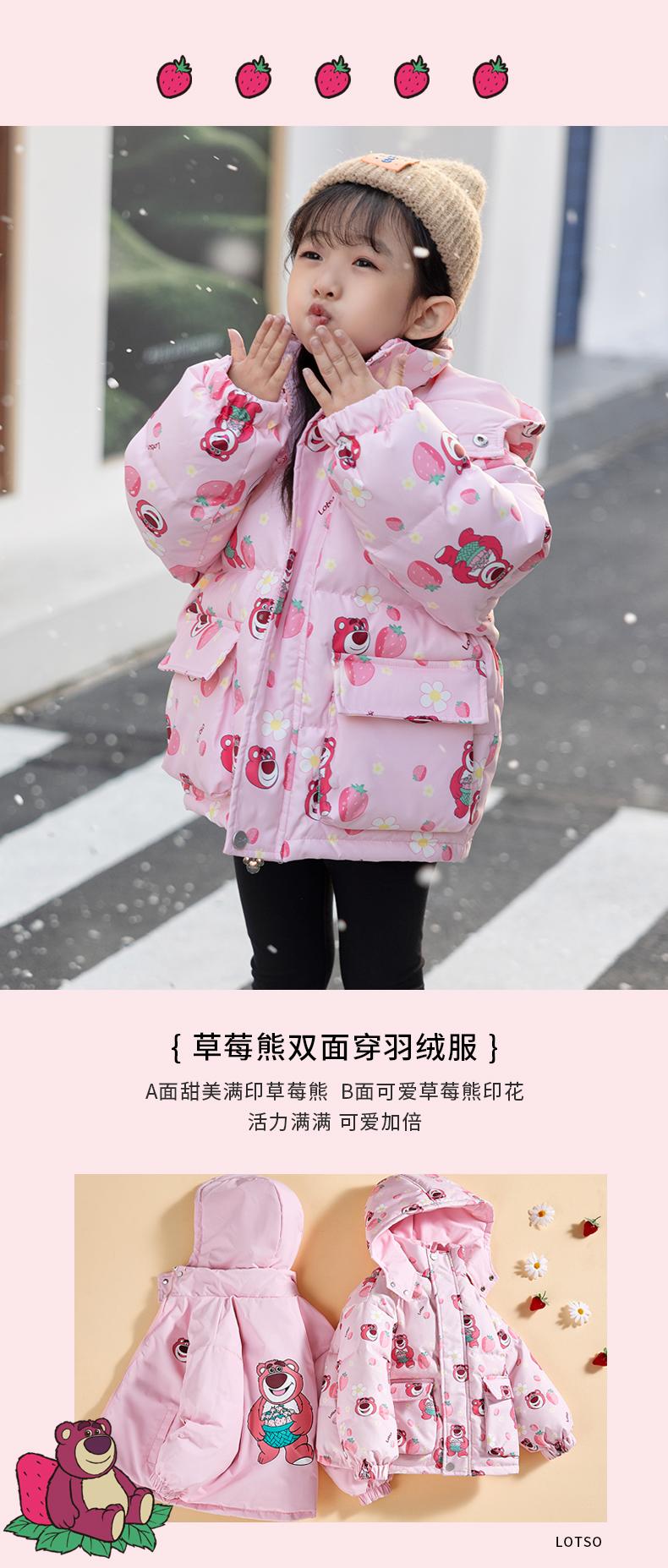 Disney/迪士尼草莓熊双面穿白鸭绒羽绒服 XHR