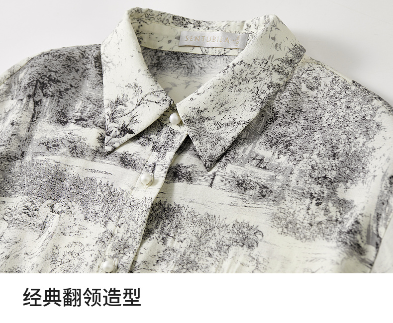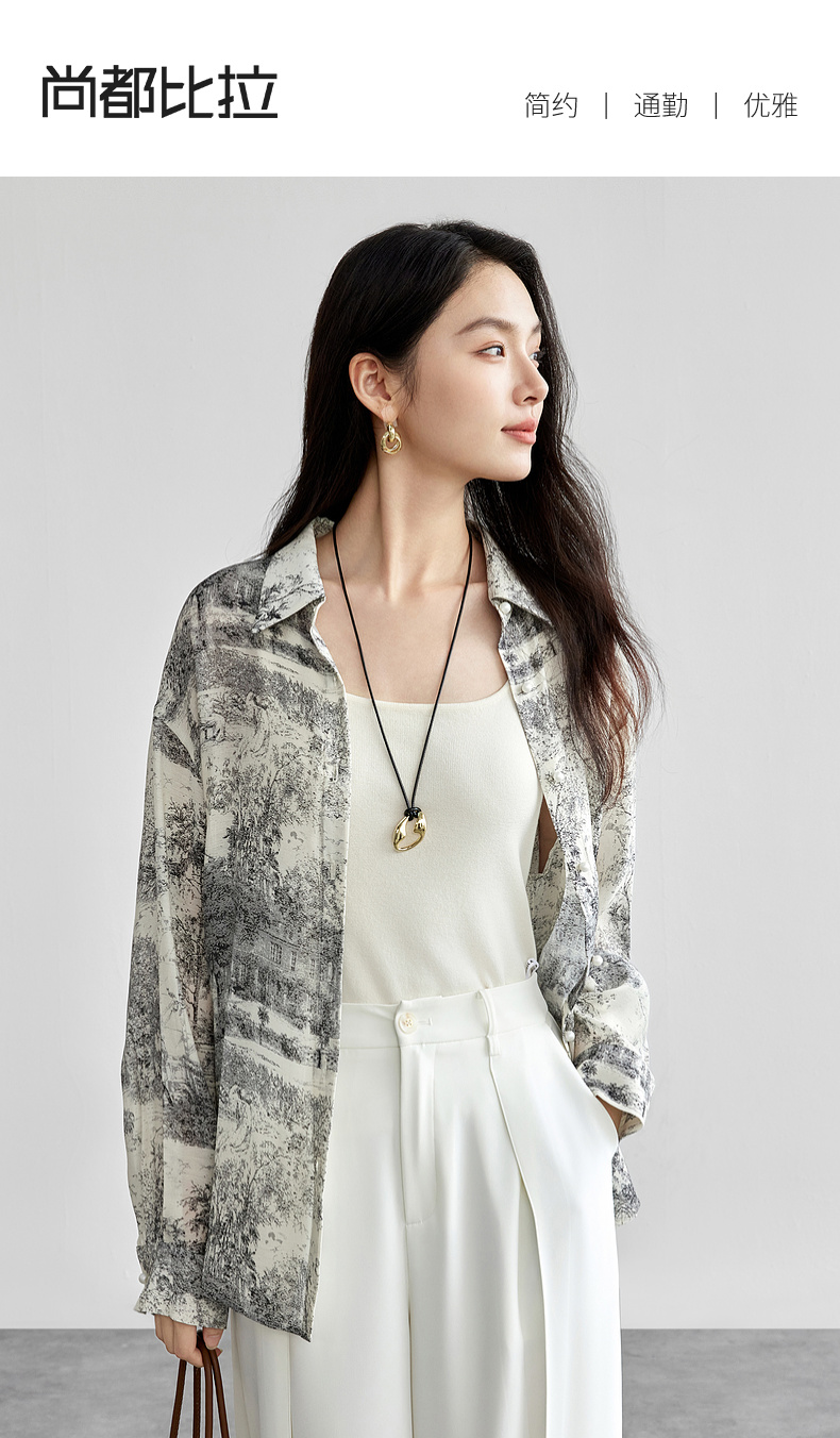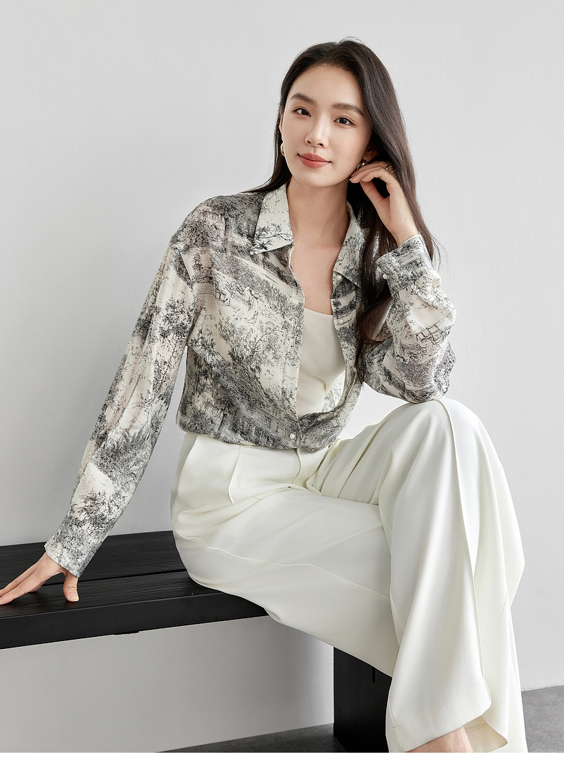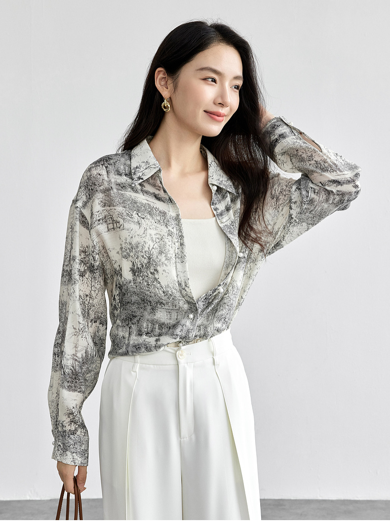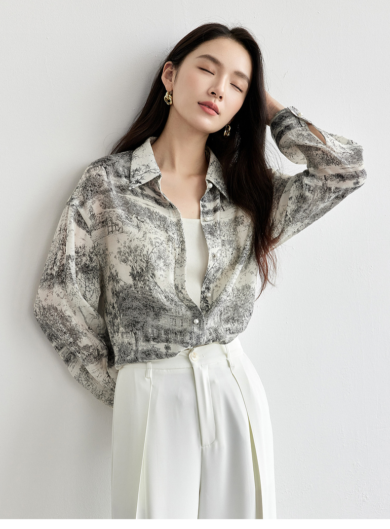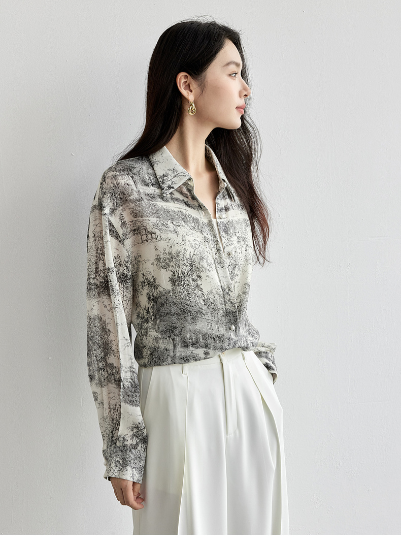 【内购】意境水墨轻国风原创印花长袖衬衫淡雅简约宽松薄款上衣-151C57812