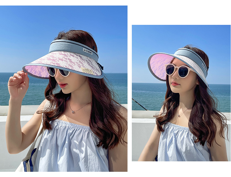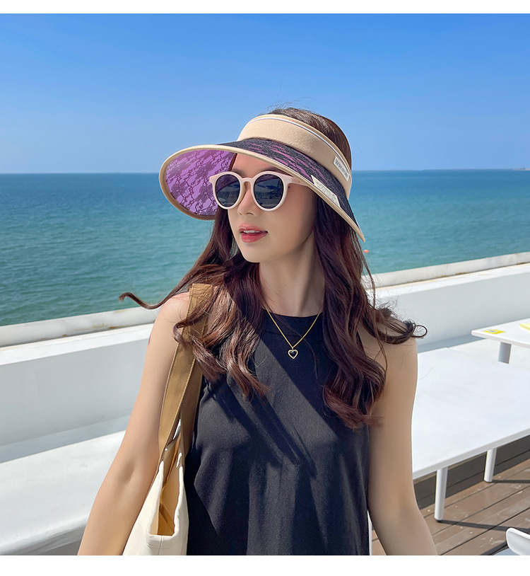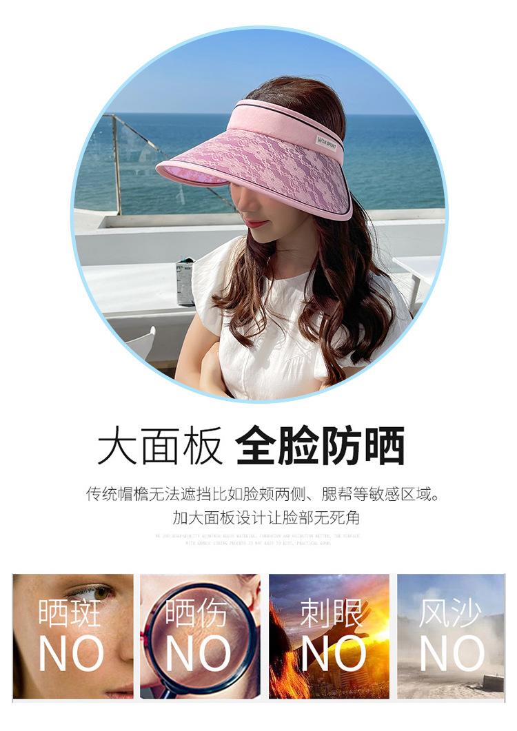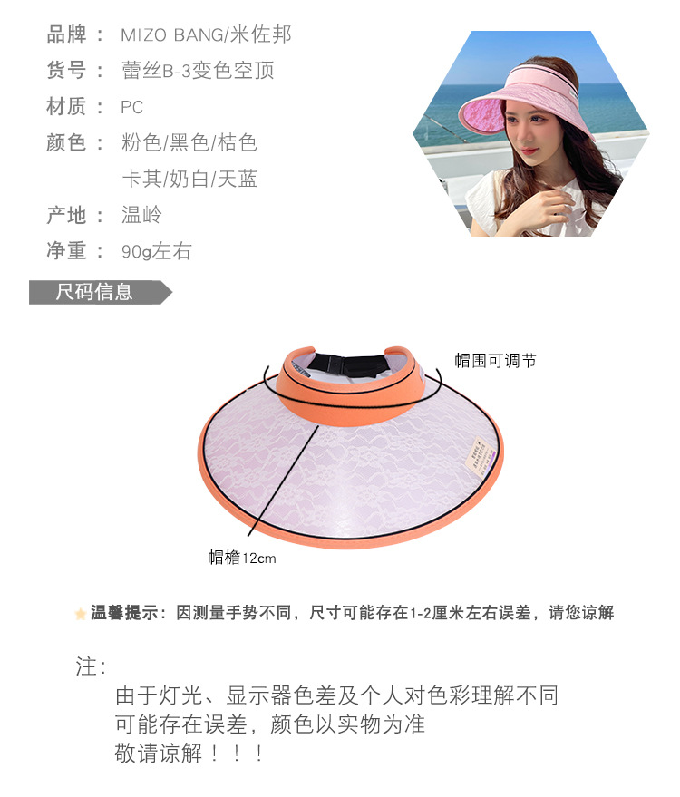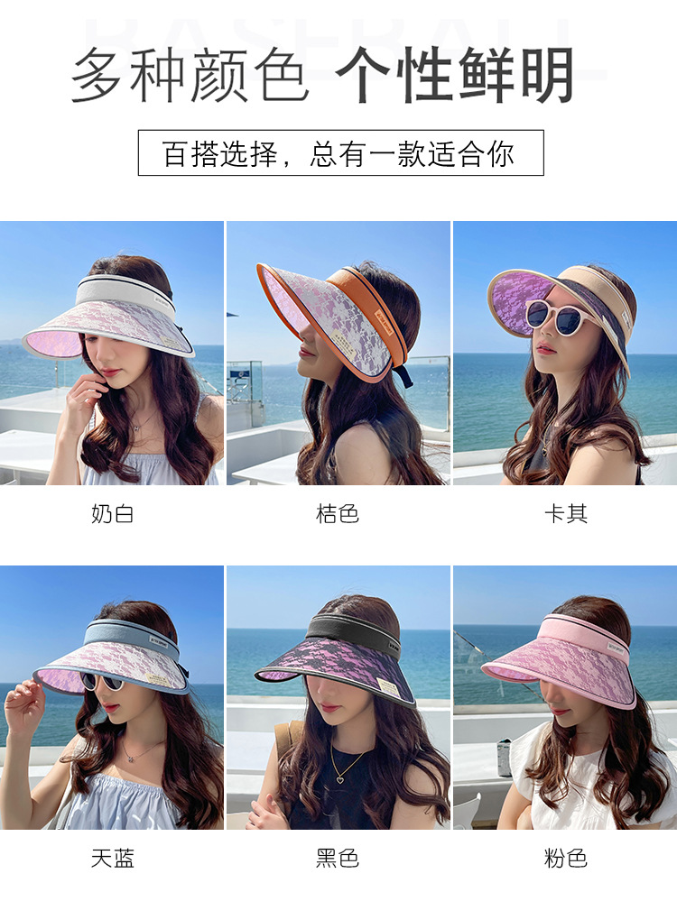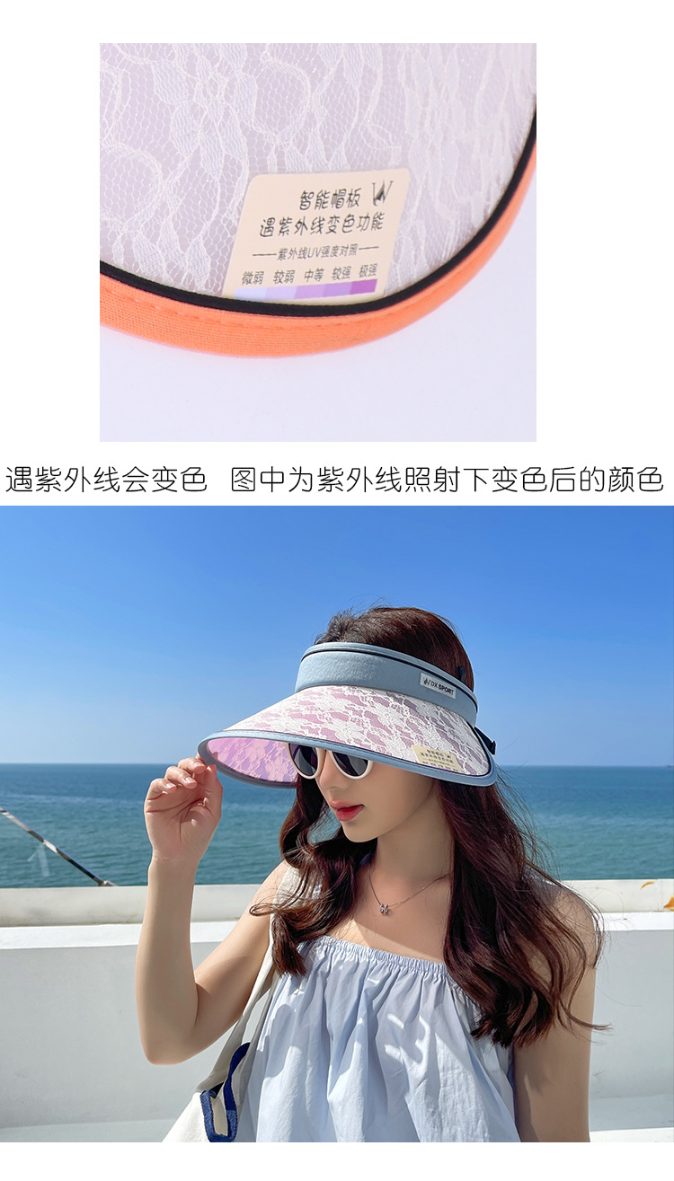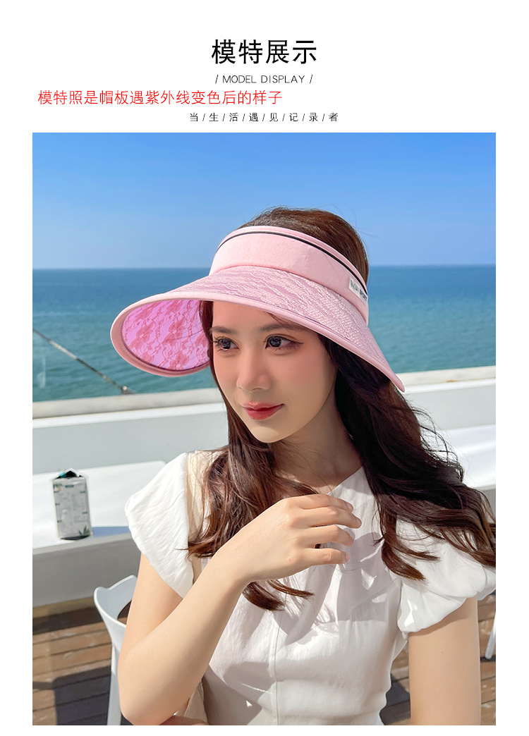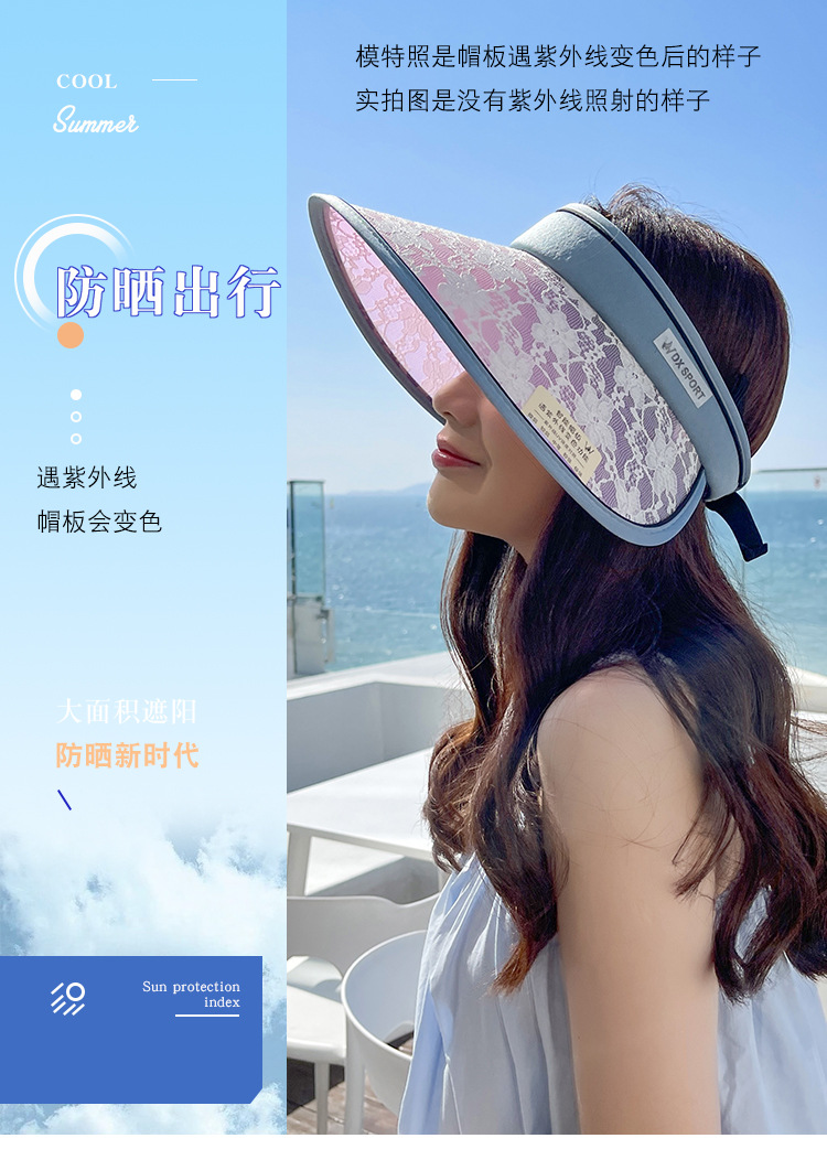 无顶变色防晒帽,夏季新款大沿户外沙滩空顶帽