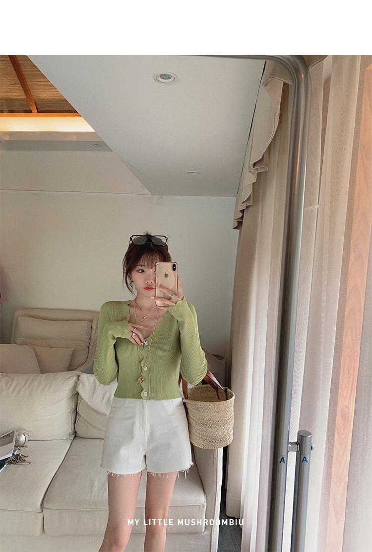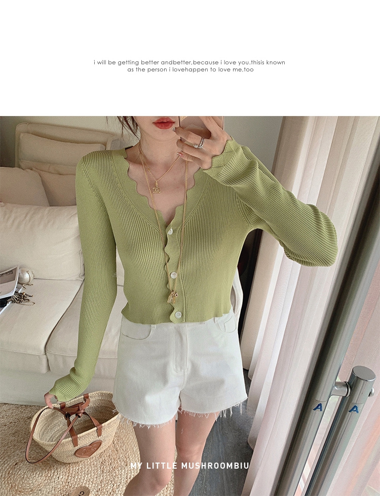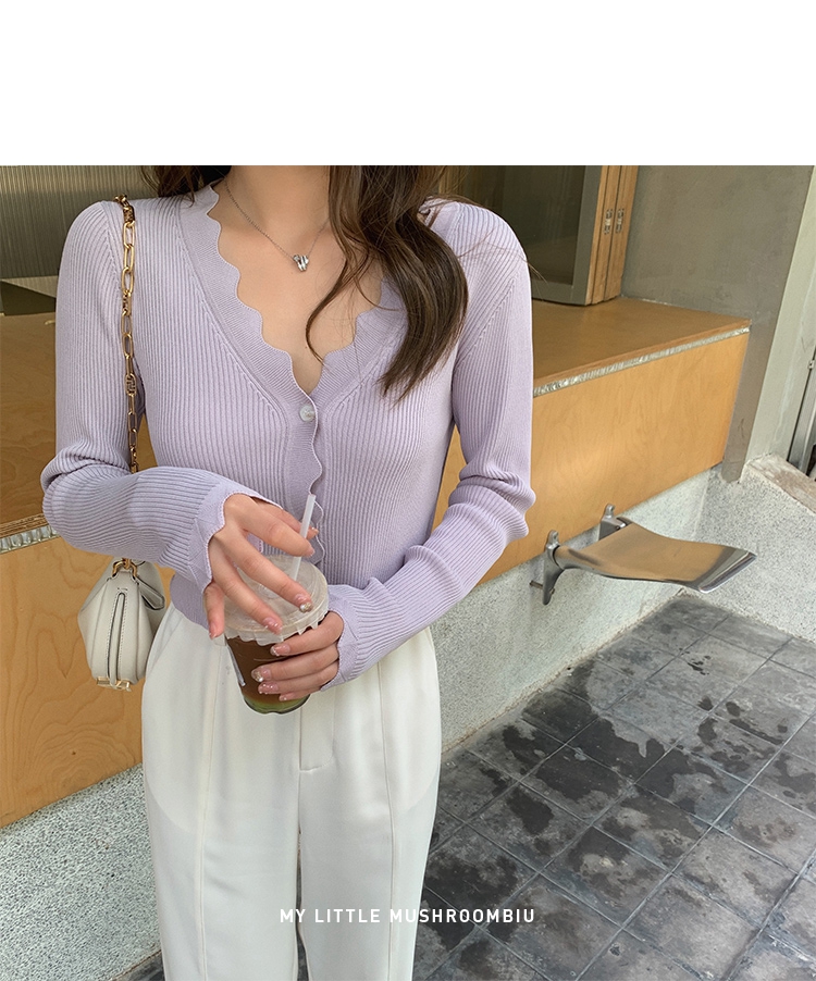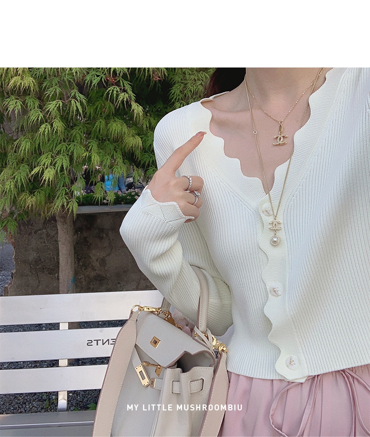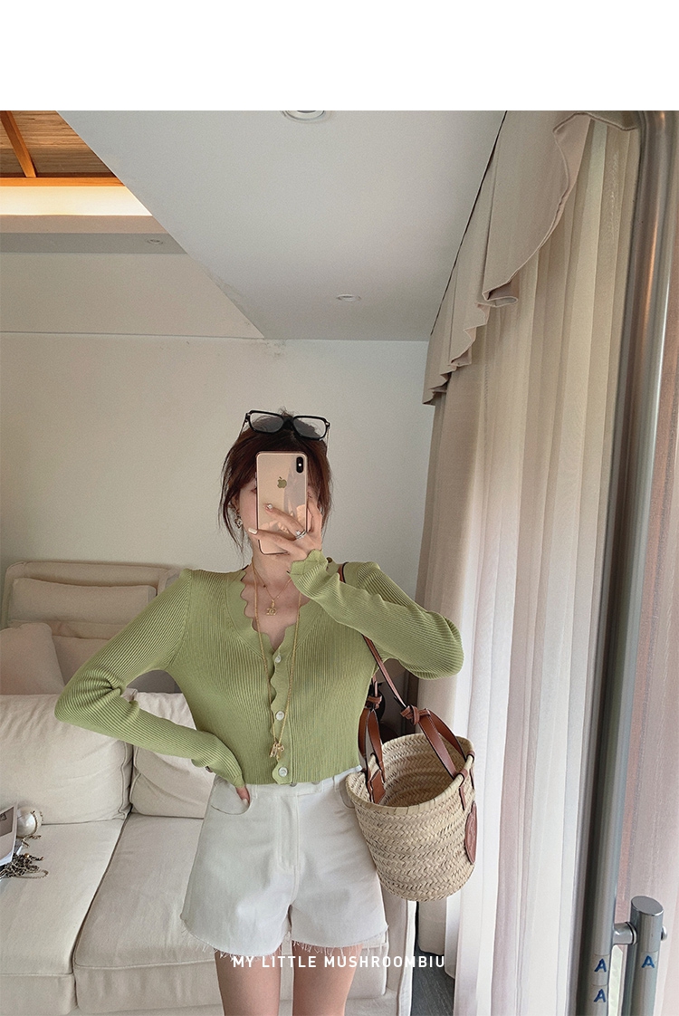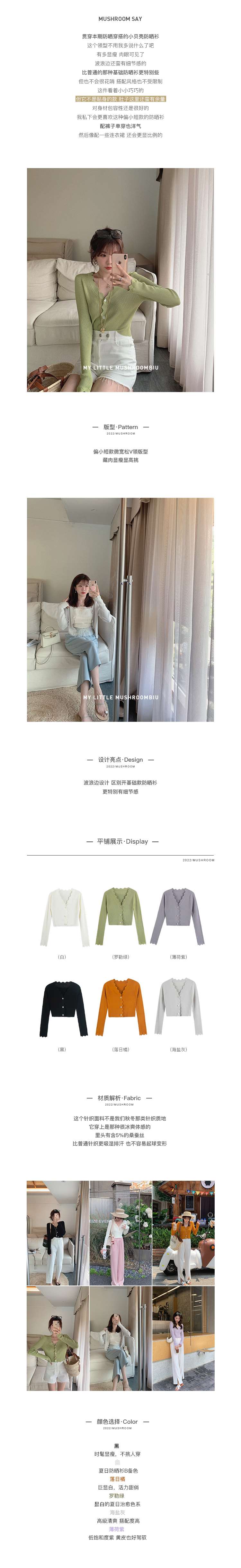 金蘑菇菇【小贝壳防晒衫】修身显瘦治愈色设计感轻薄v领针织开衫