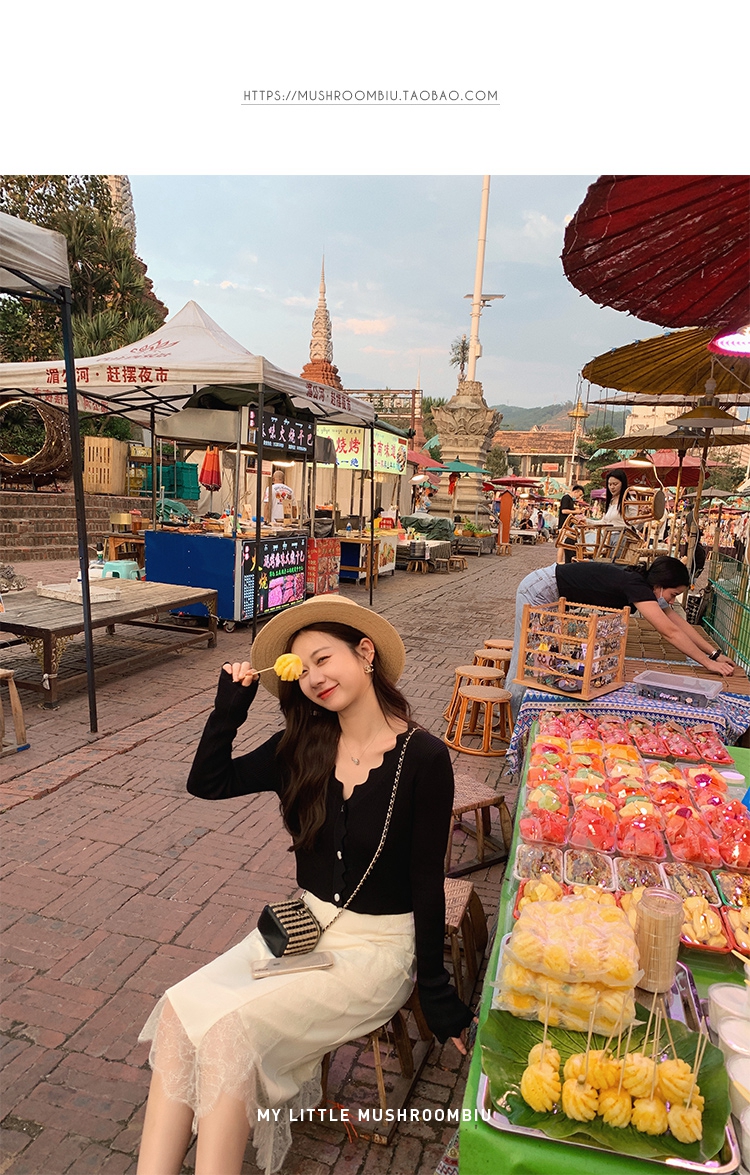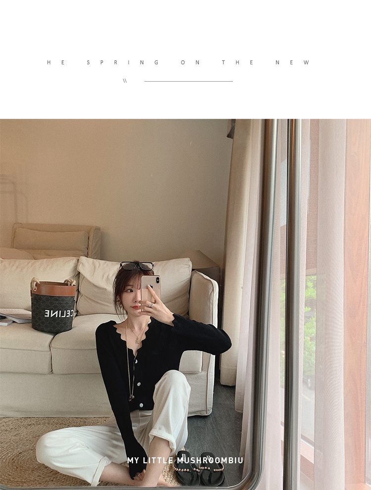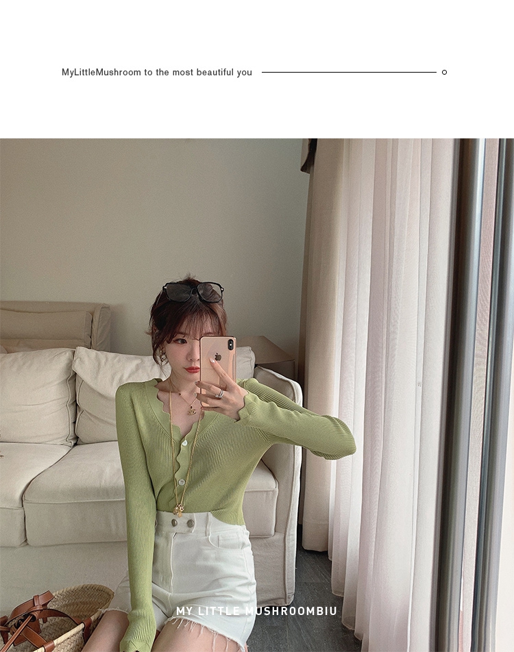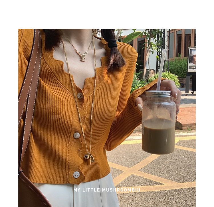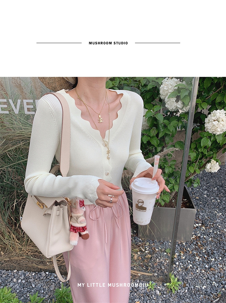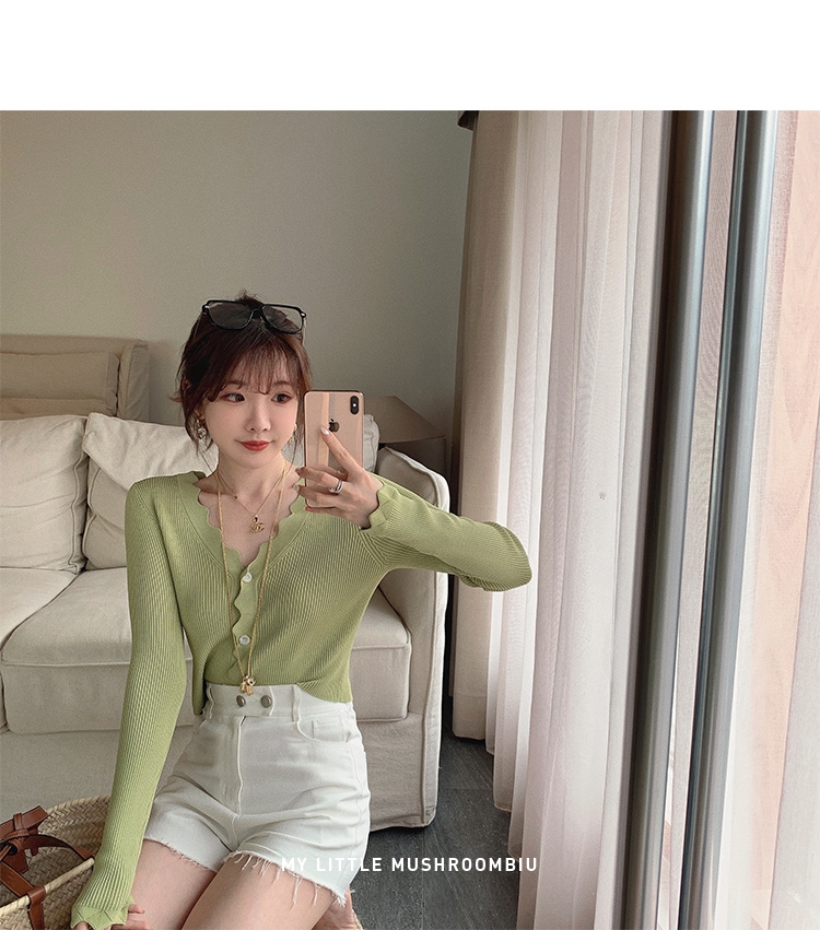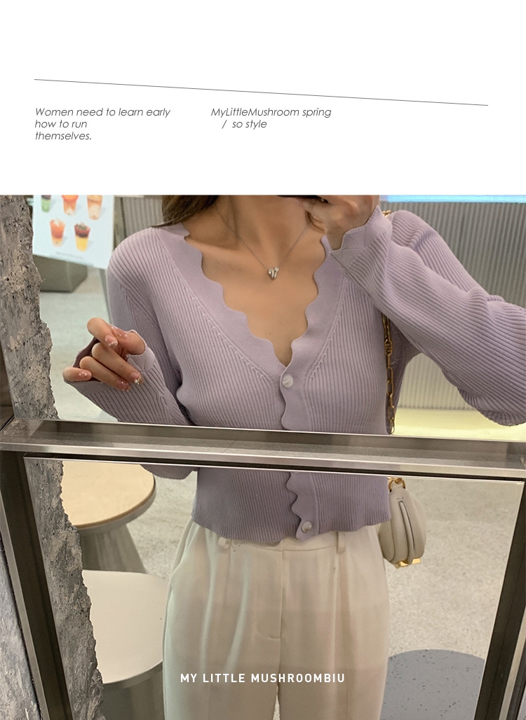 金蘑菇菇【小贝壳防晒衫】修身显瘦治愈色设计感轻薄v领针织开衫