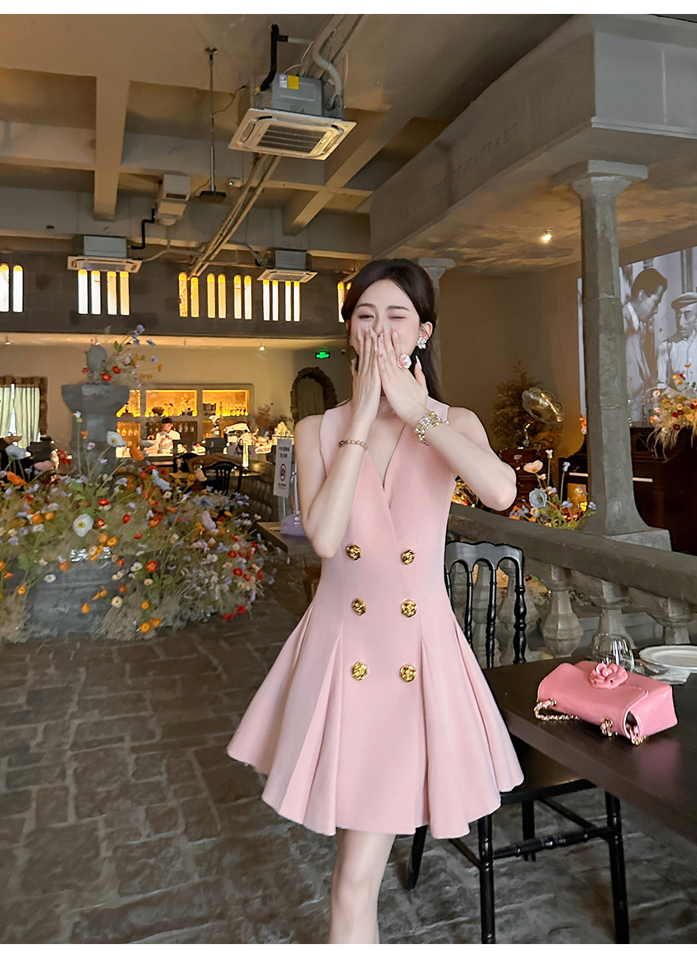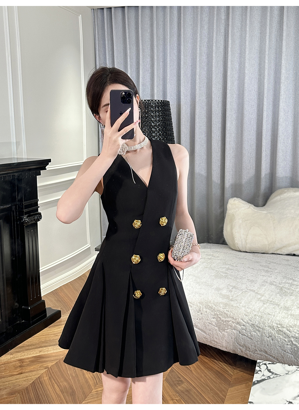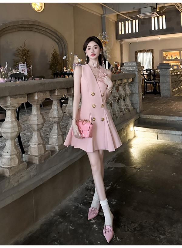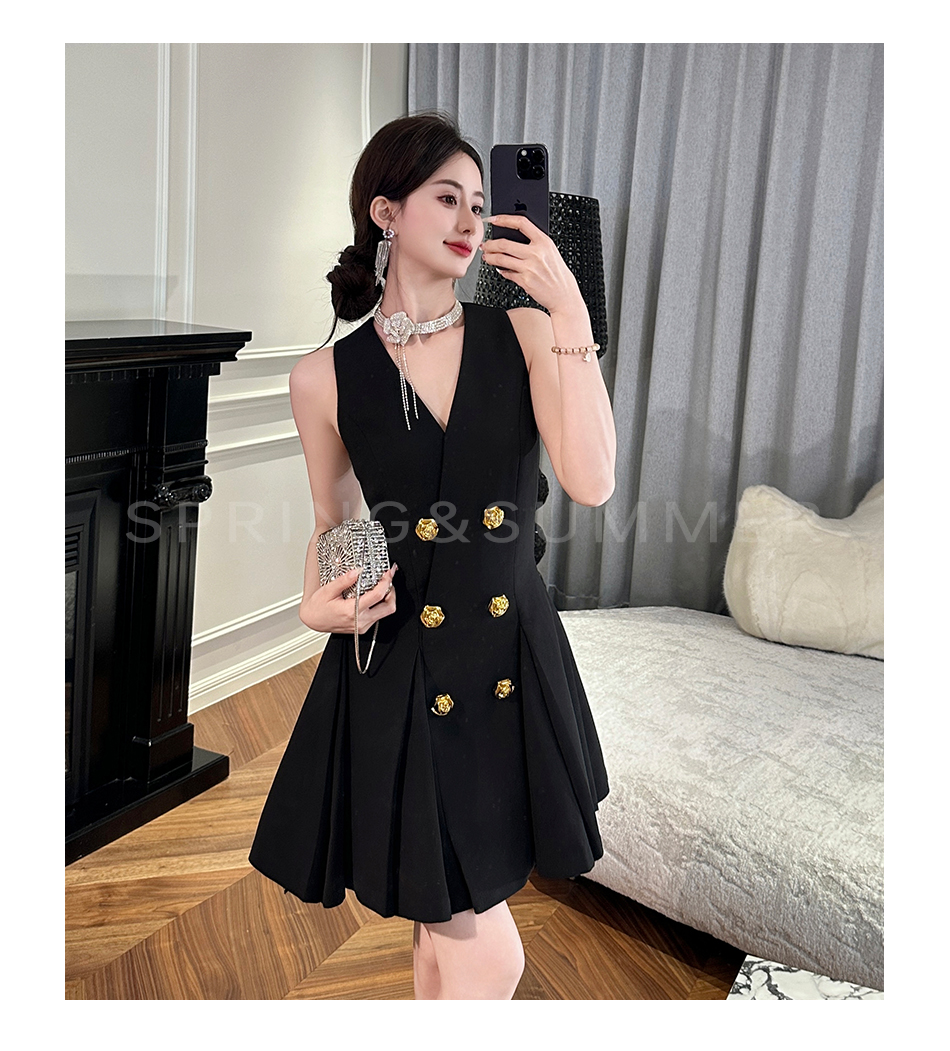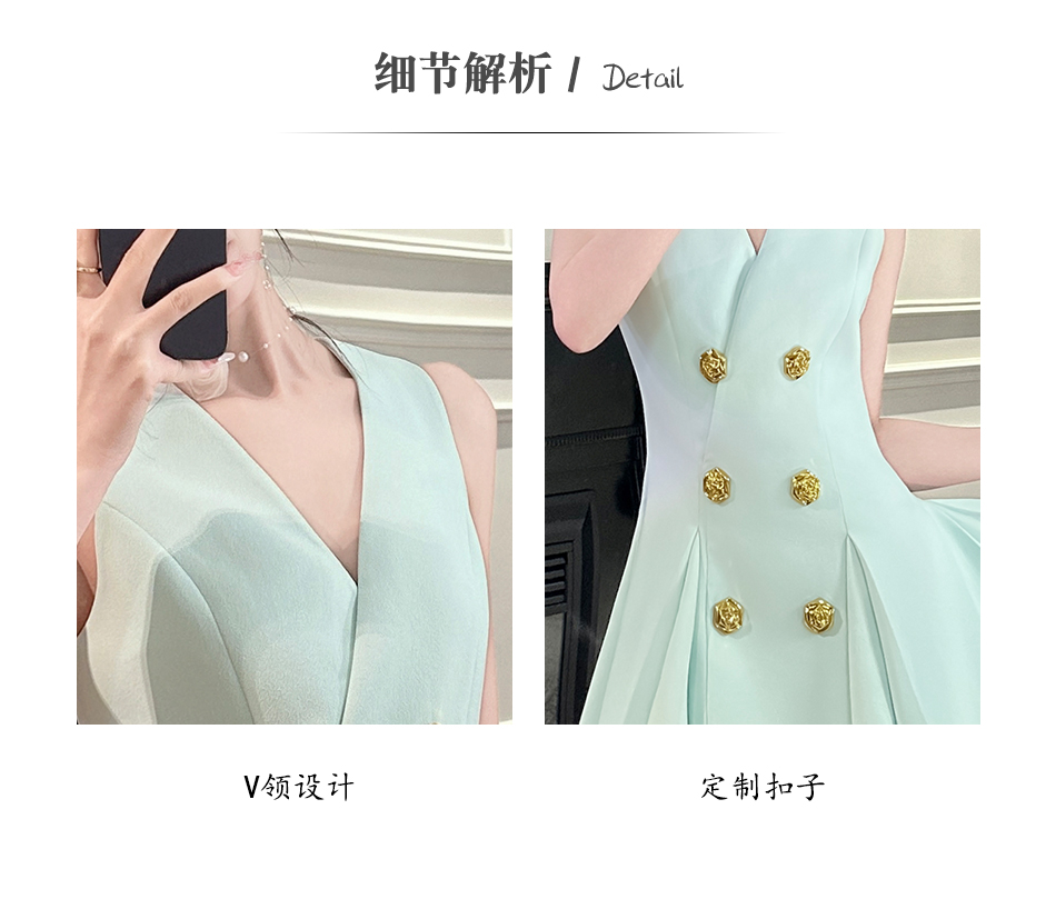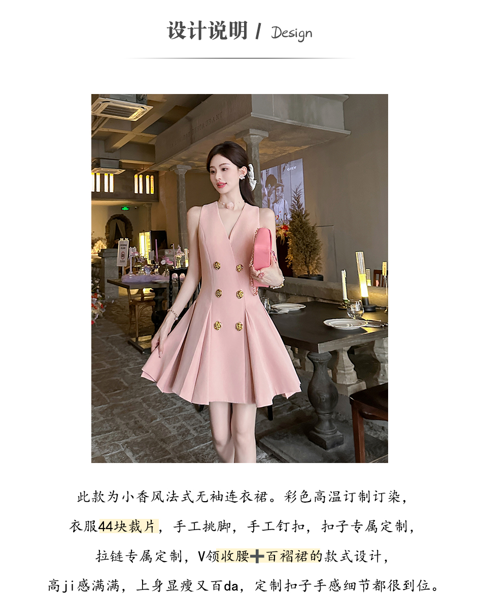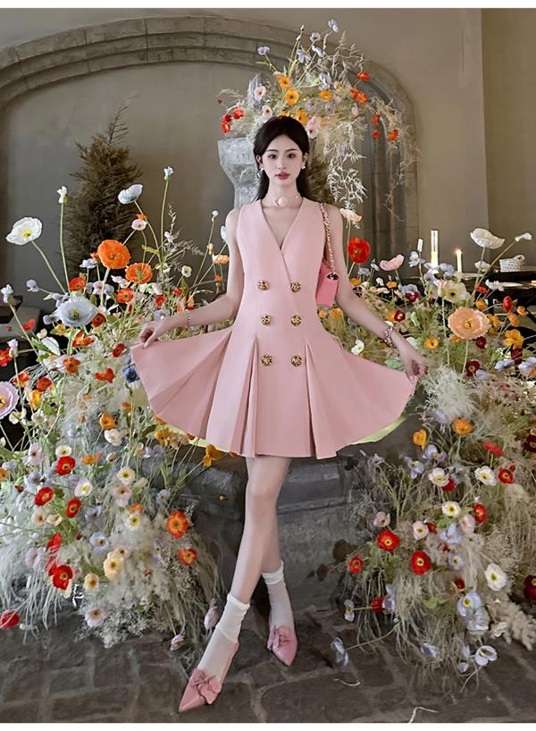 【年终福利,不退不换】 【OL女星】时尚百搭精致千金风V领修身西装百褶连衣裙