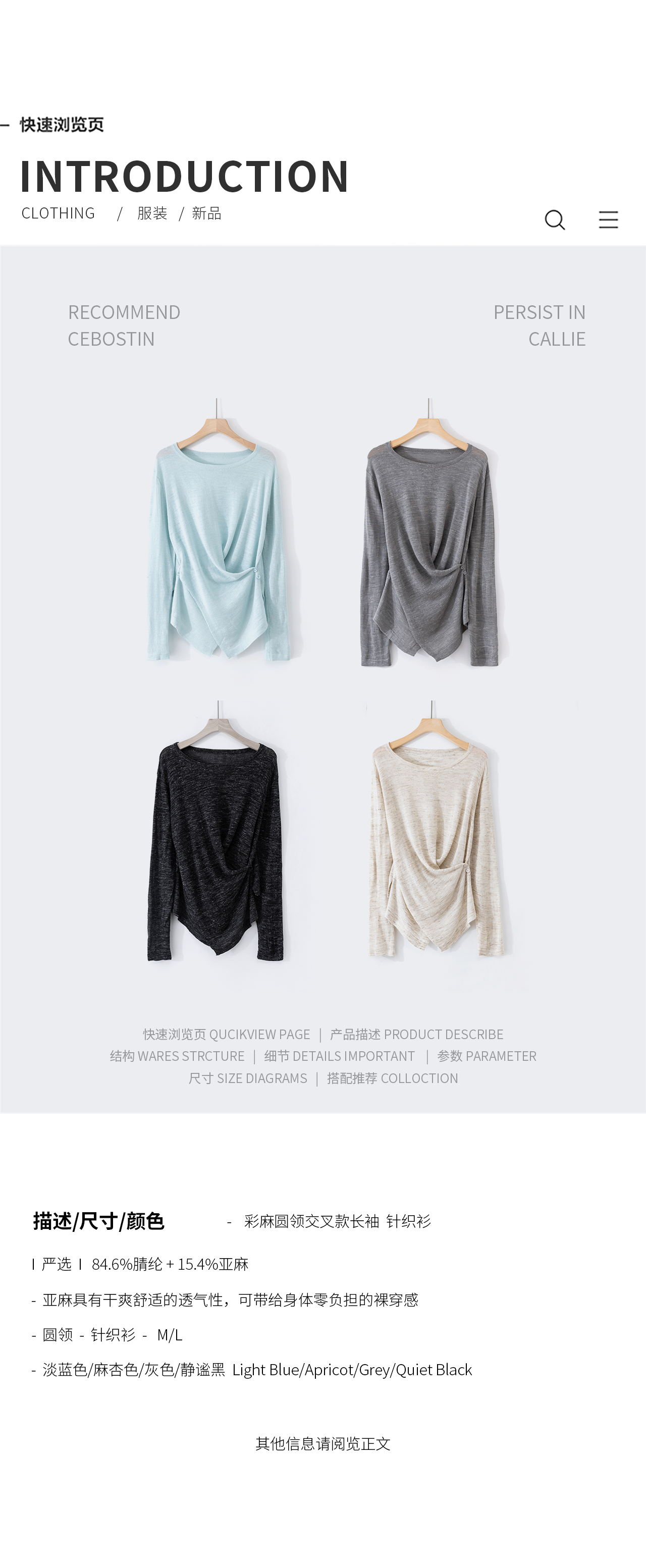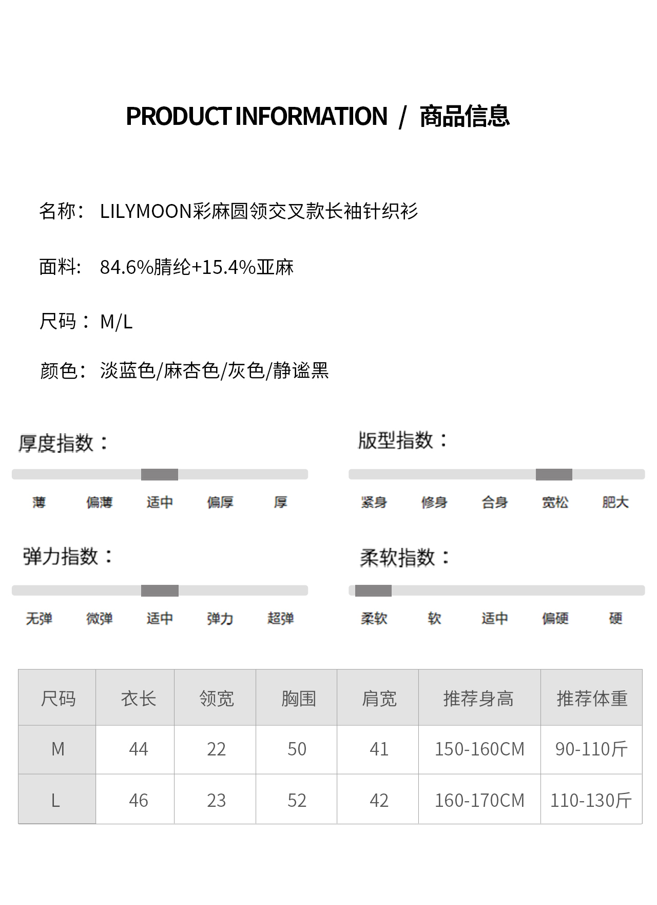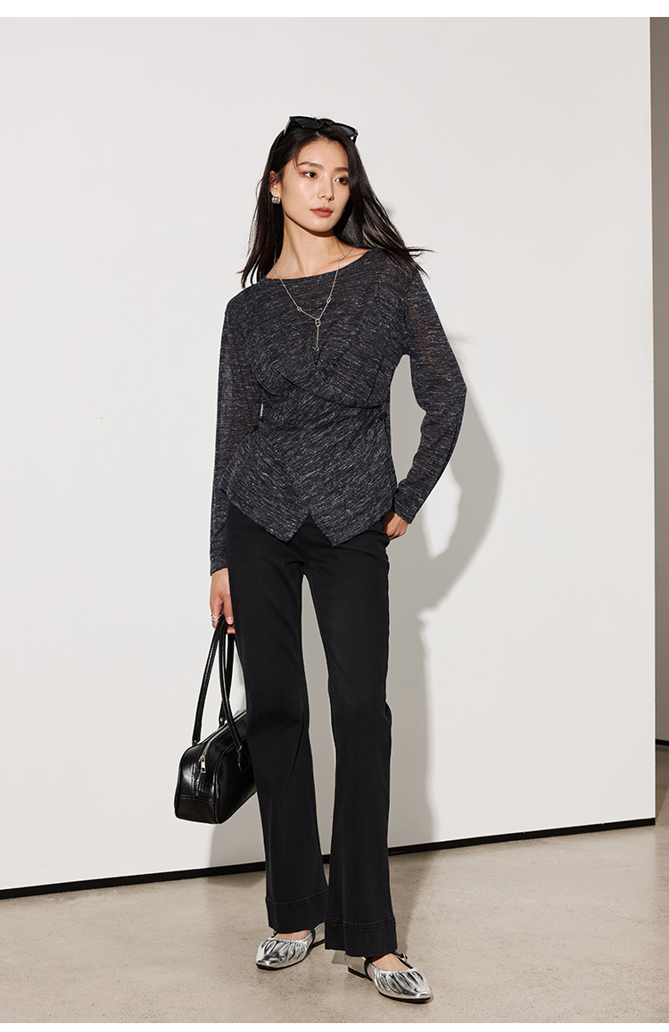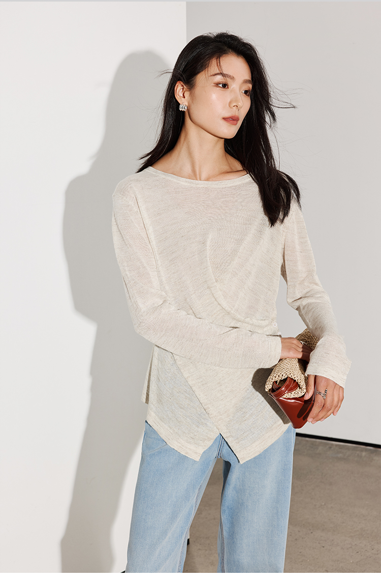 LILYMOON【彩麻交叉针织衫】圆领长袖针织衫夏季透气收腰显瘦