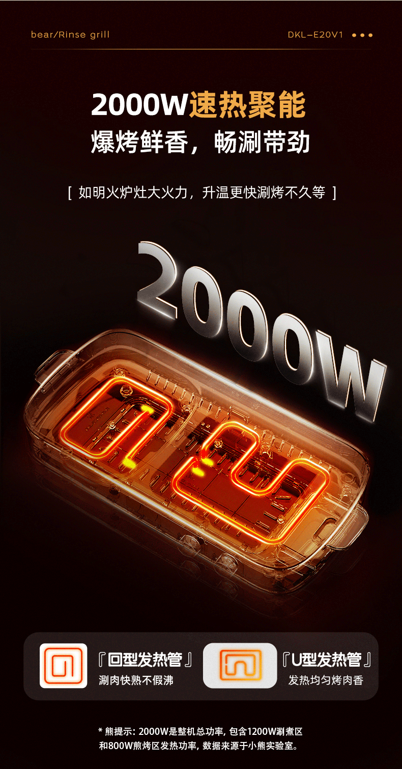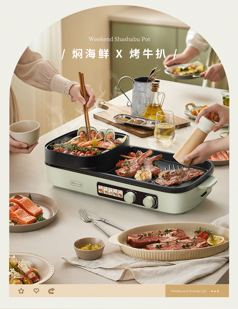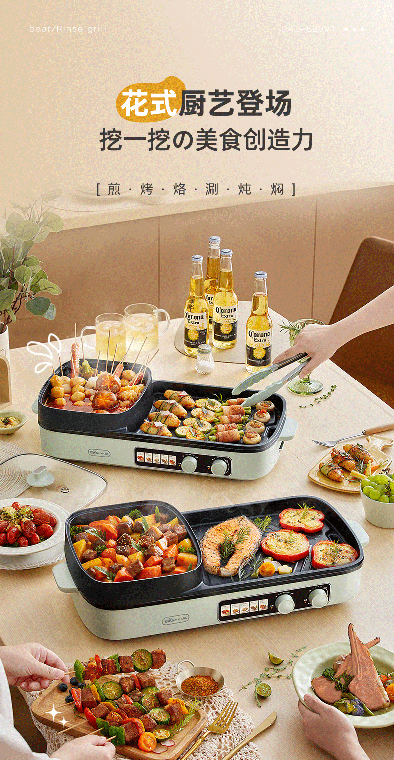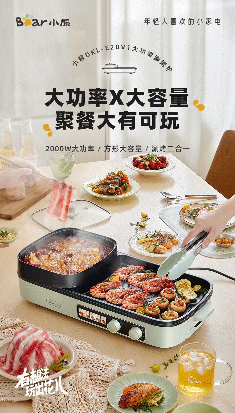 【小程序】小熊(Bear)烤涮一体两用锅烤肉锅电烤炉烧烤烤盘家用烤肉盘多功能多用途电火锅电烤炉DKL-E20V1