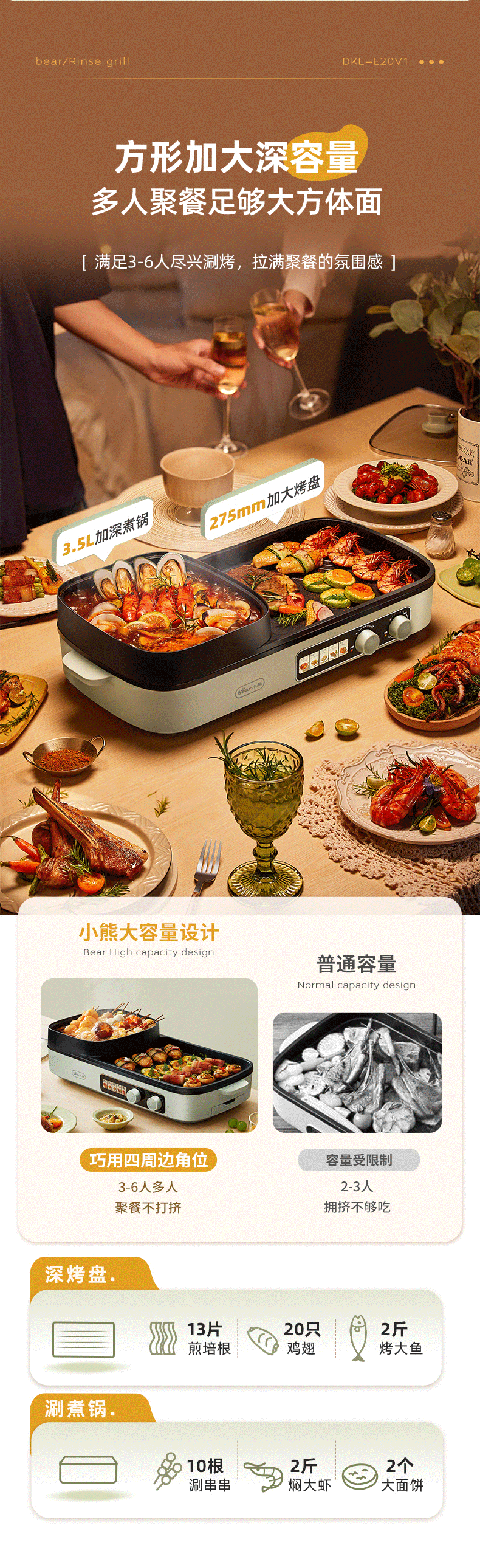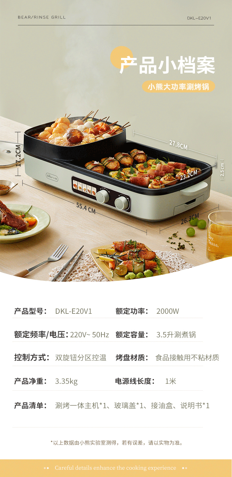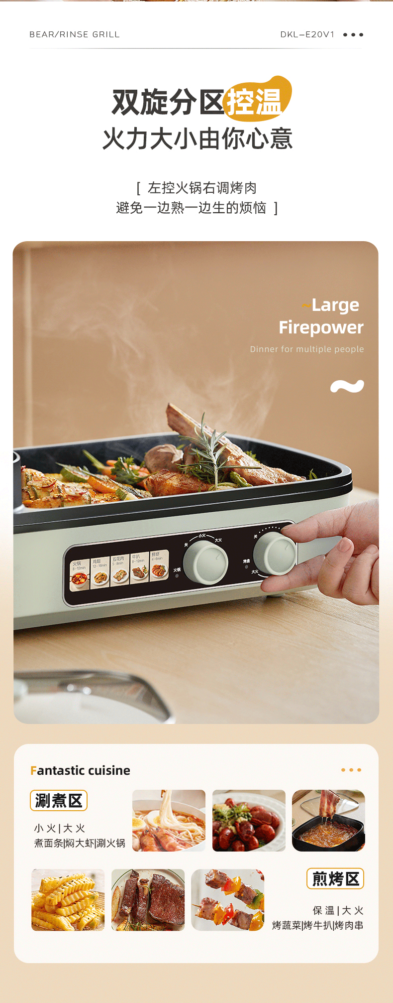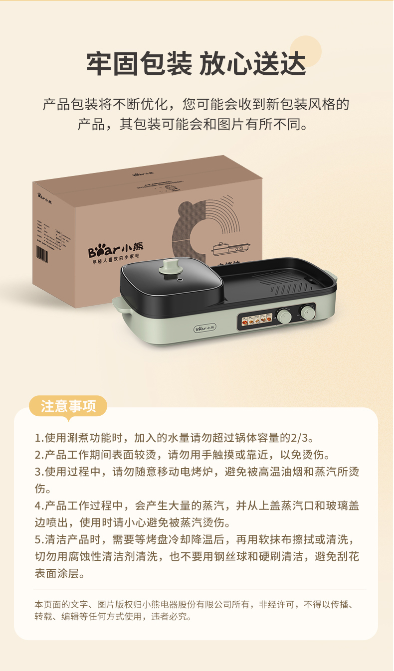 【小程序】小熊(Bear)烤涮一体两用锅烤肉锅电烤炉烧烤烤盘家用烤肉盘多功能多用途电火锅电烤炉DKL-E20V1