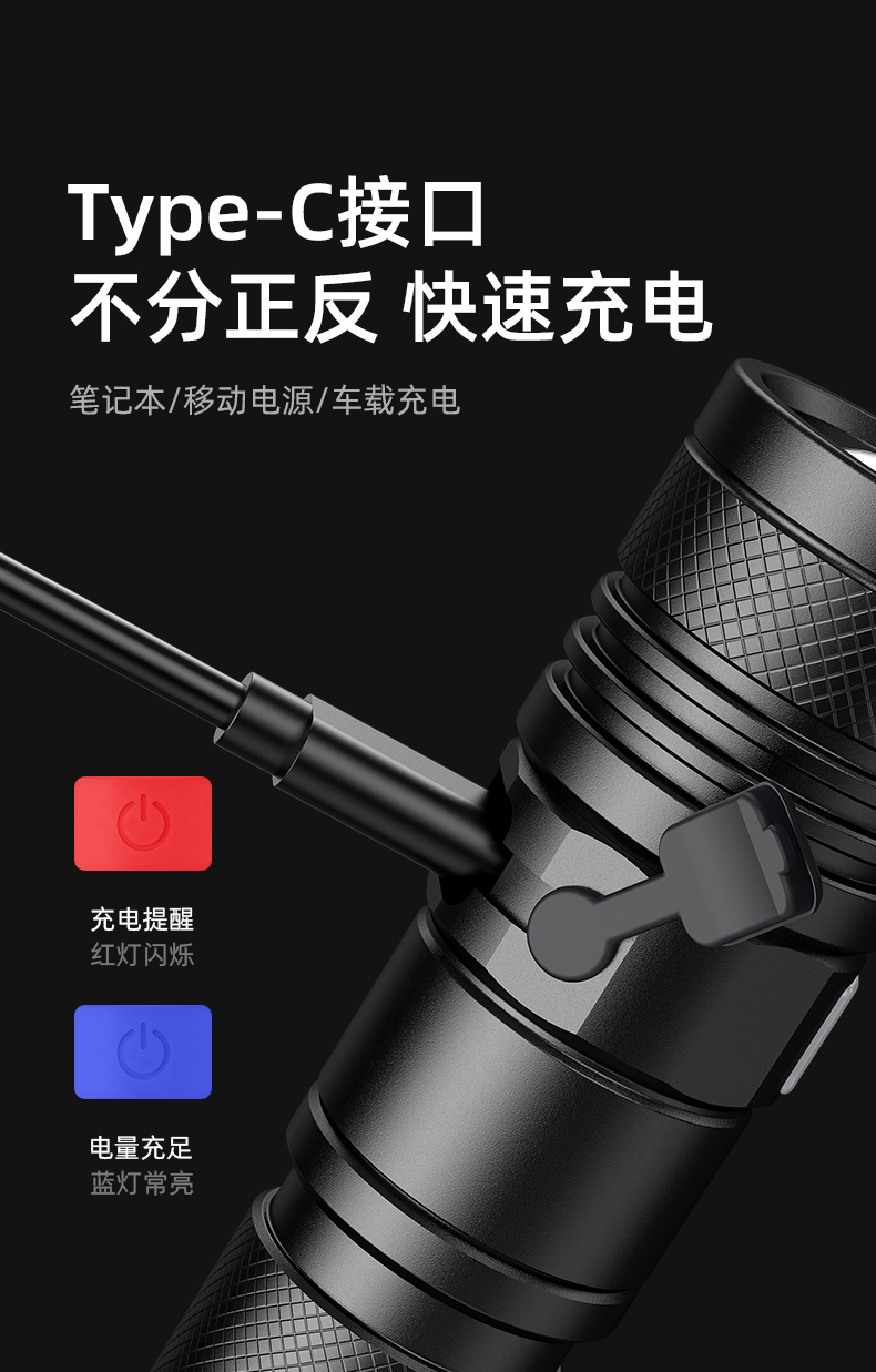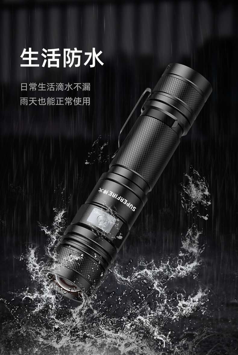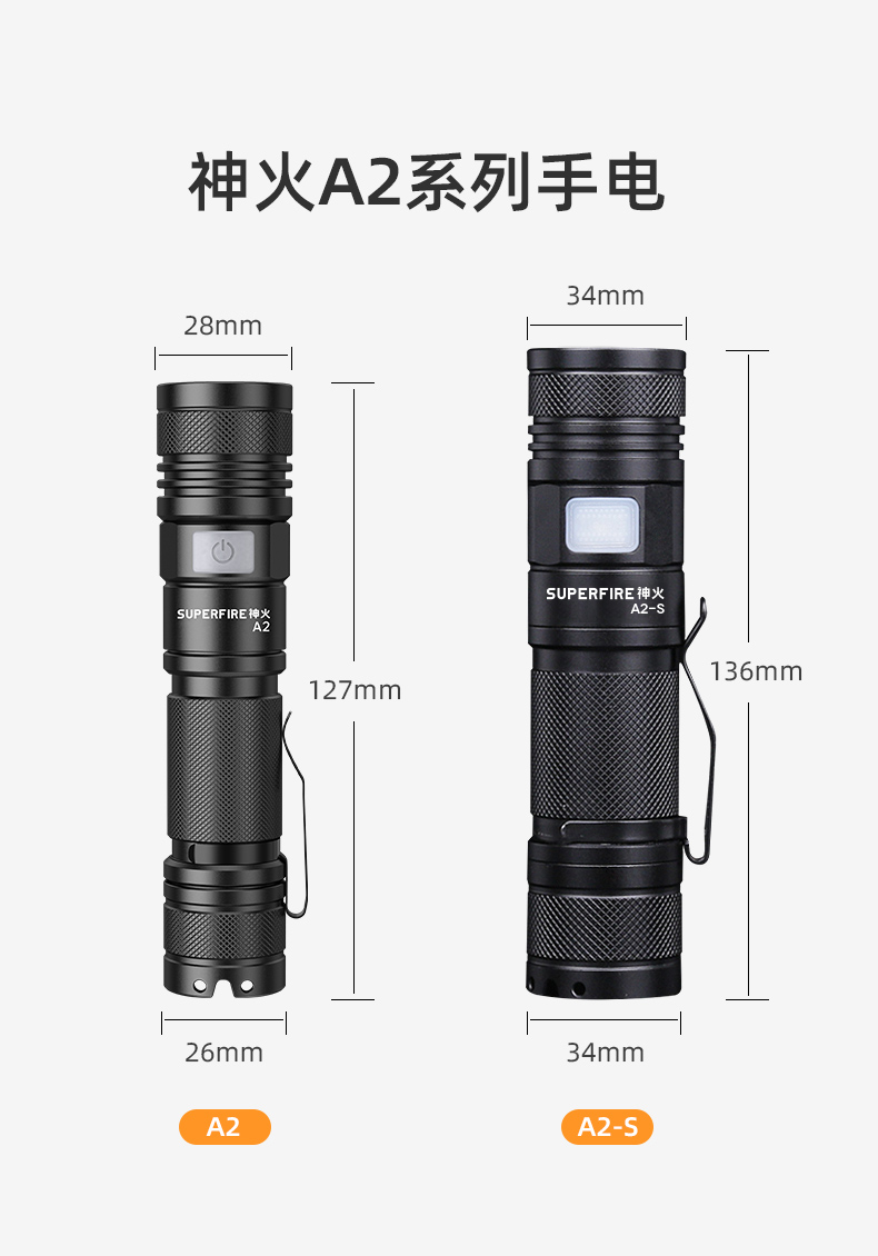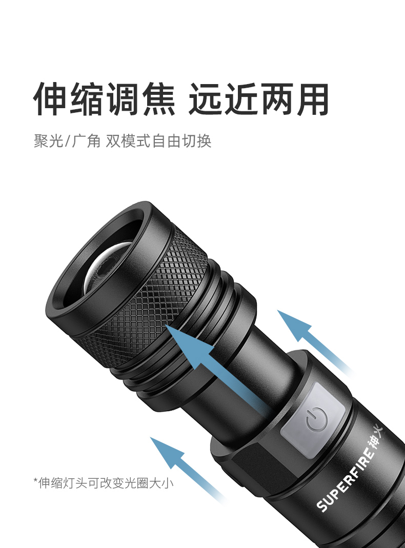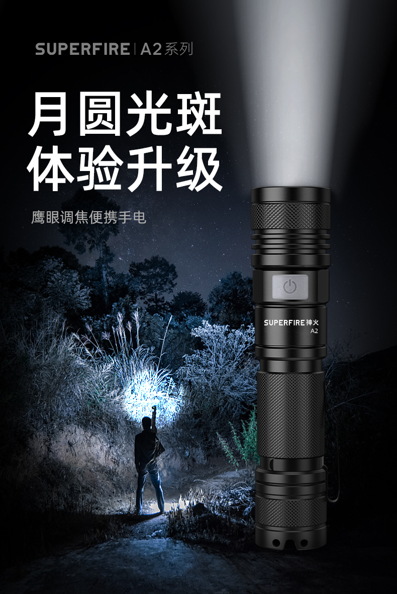 SUPERFIRE神火A2手电筒伸缩调焦强光可充电超亮多功能远射户外led手电