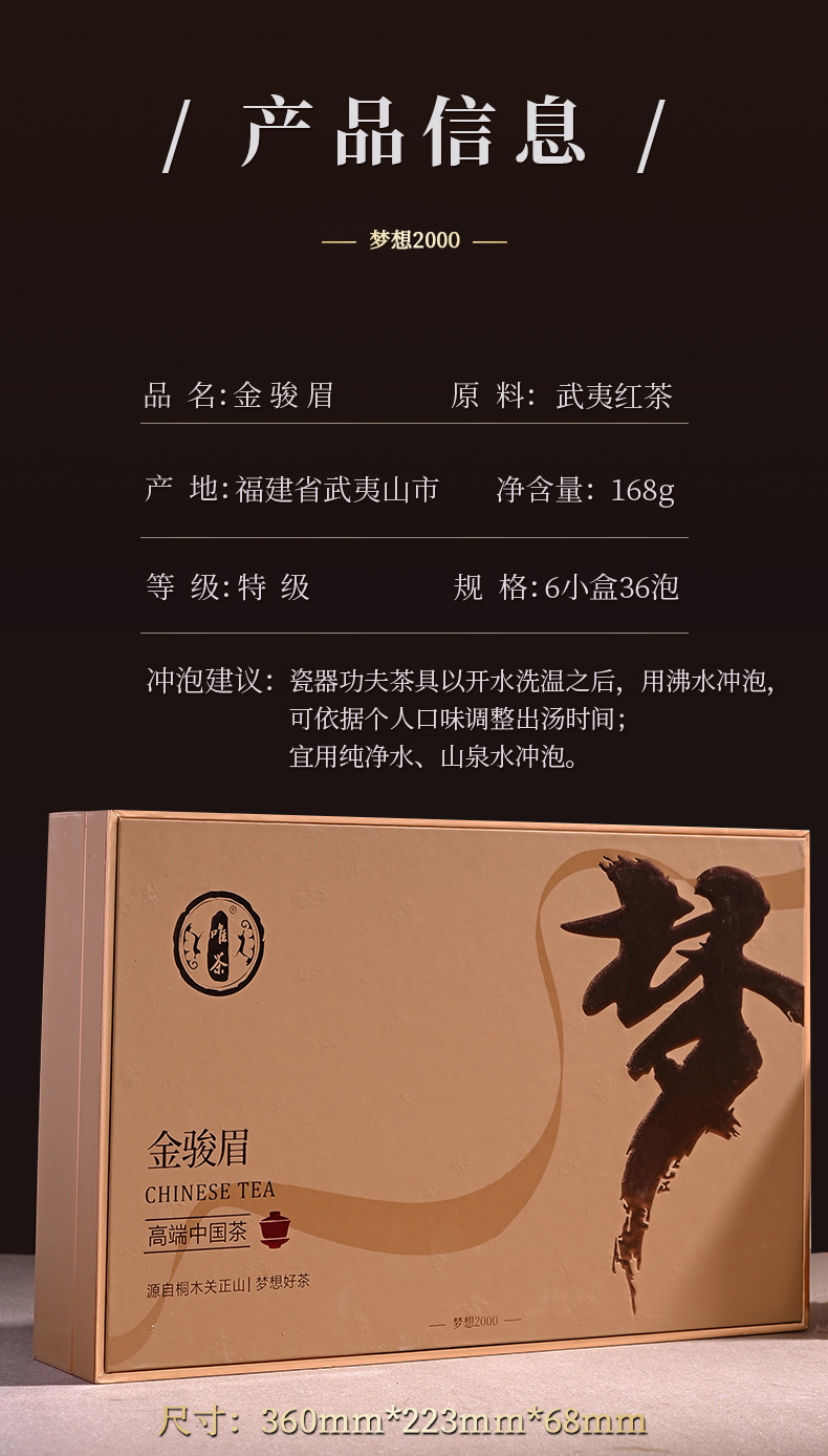 唯茶梦想2000系列 金骏眉 桐木关正山纯芽红茶 花香果甜蜜韵(6小盒36泡)