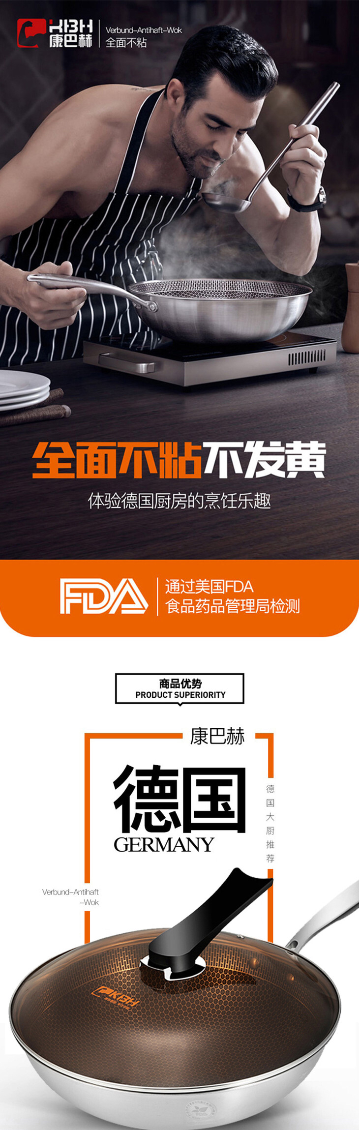 说明:1、这品牌很火。拖了一车回来,营业员和亲朋好友每人一个。把家里浪费油发黑的老铁锅换掉吧!德国大品牌用的放心,不光是颜值高,更重要的是好材质,高效节能,省油健康,炒菜更香。