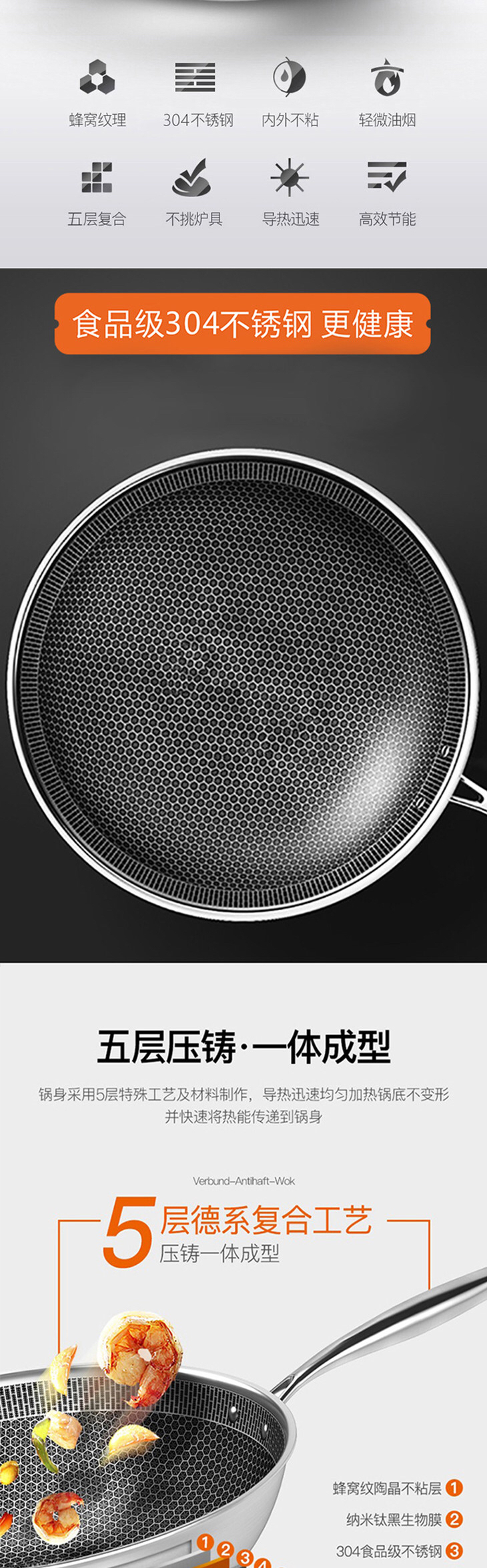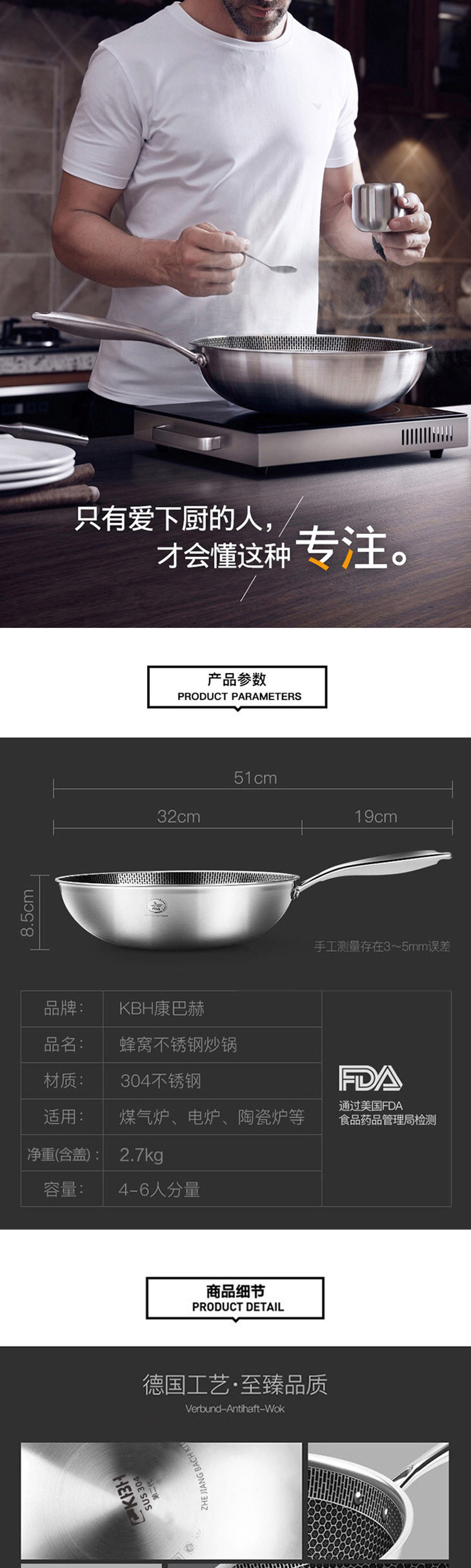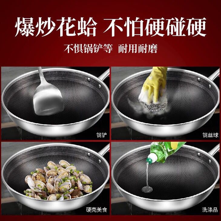 3、强大!真的不粘,可以无油煎鸡蛋。不是涂层的,安全健康。二代304不锈钢,用个10年没问题。