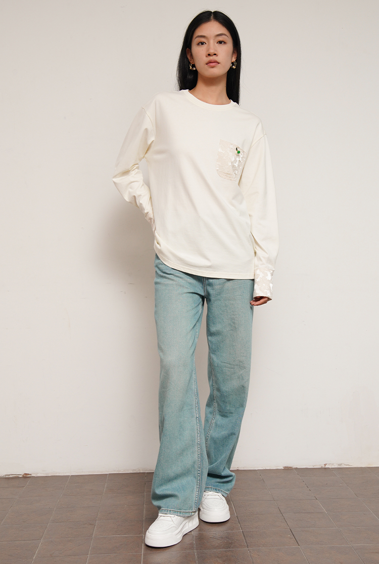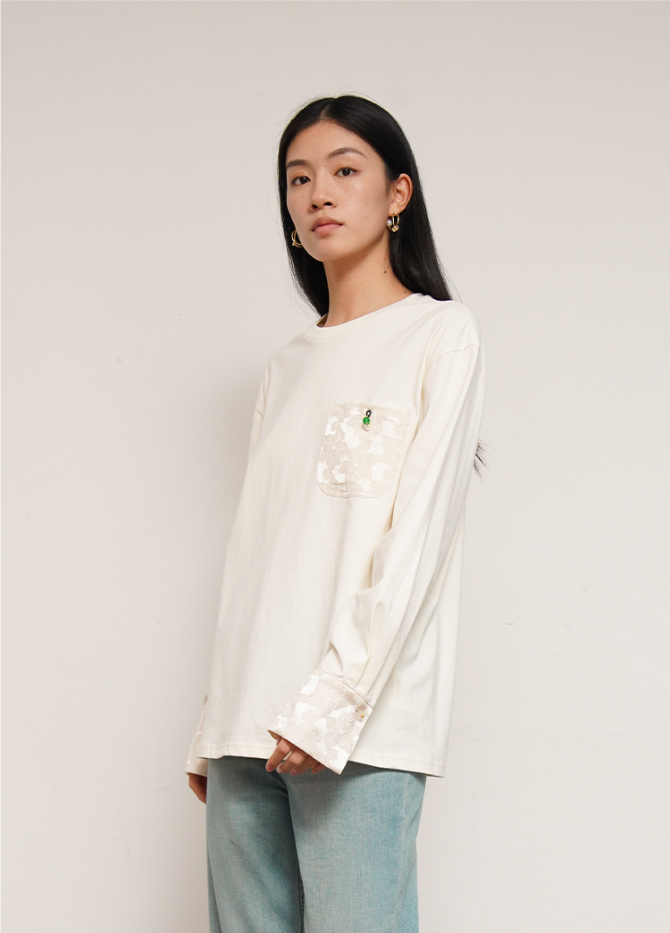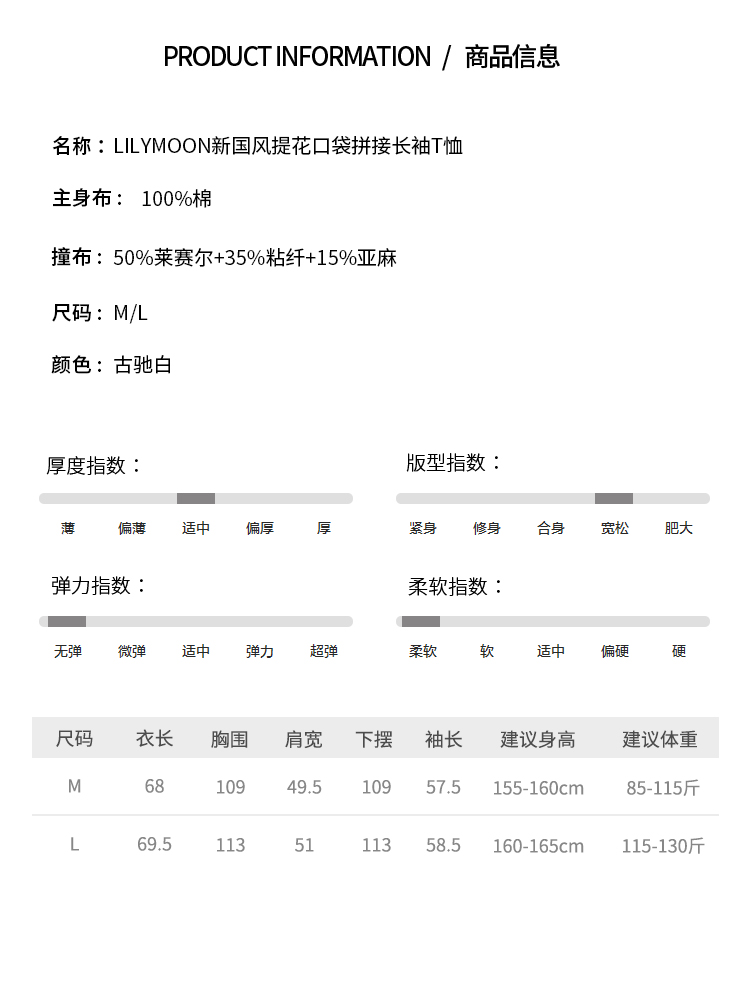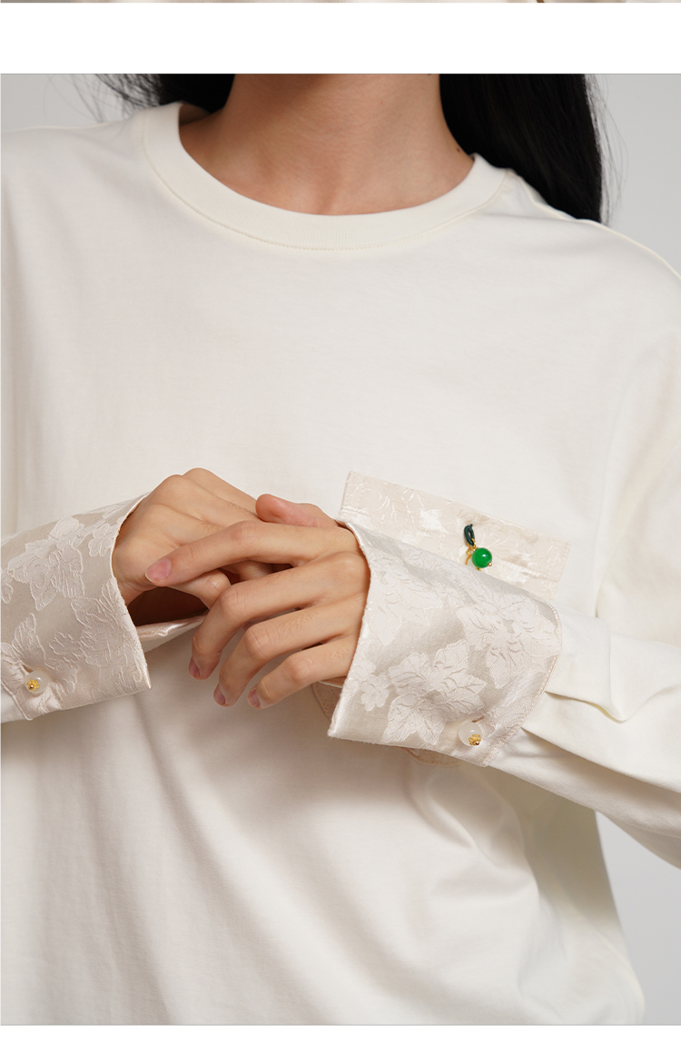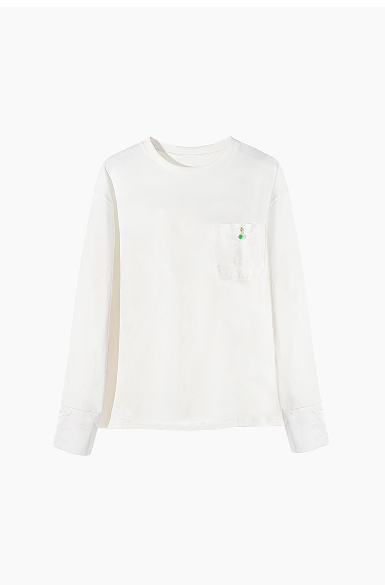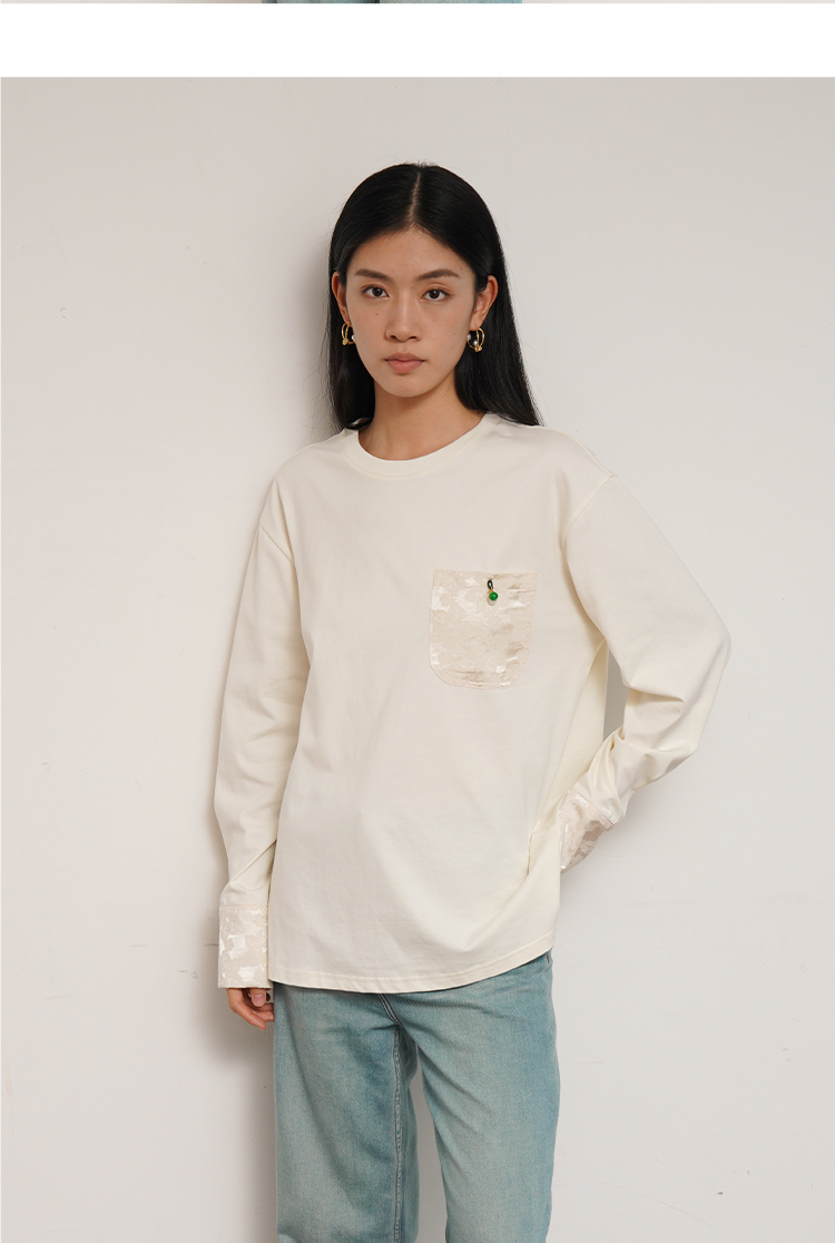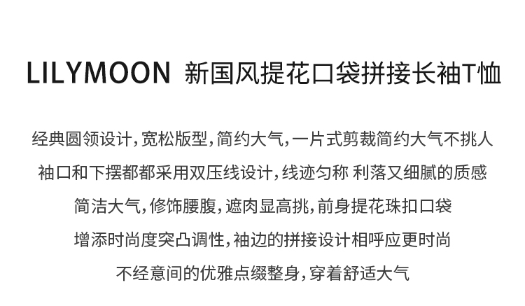 LILYMOON新中式国风长袖T恤提花口袋纯棉百搭打底时尚休闲国潮