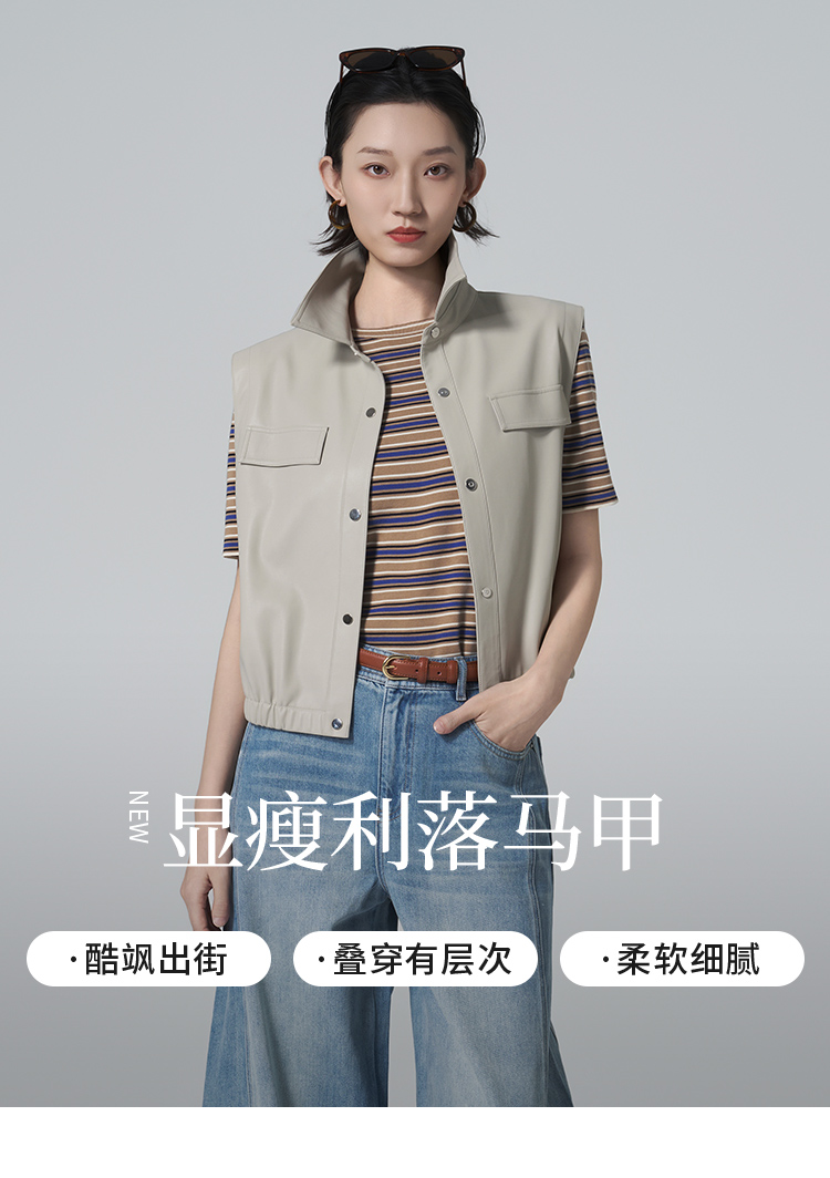 【商场同款】CNI6396 “ 米色蛋白皮马甲 ” 柔韧耐穿,轻奢质感好搭显瘦