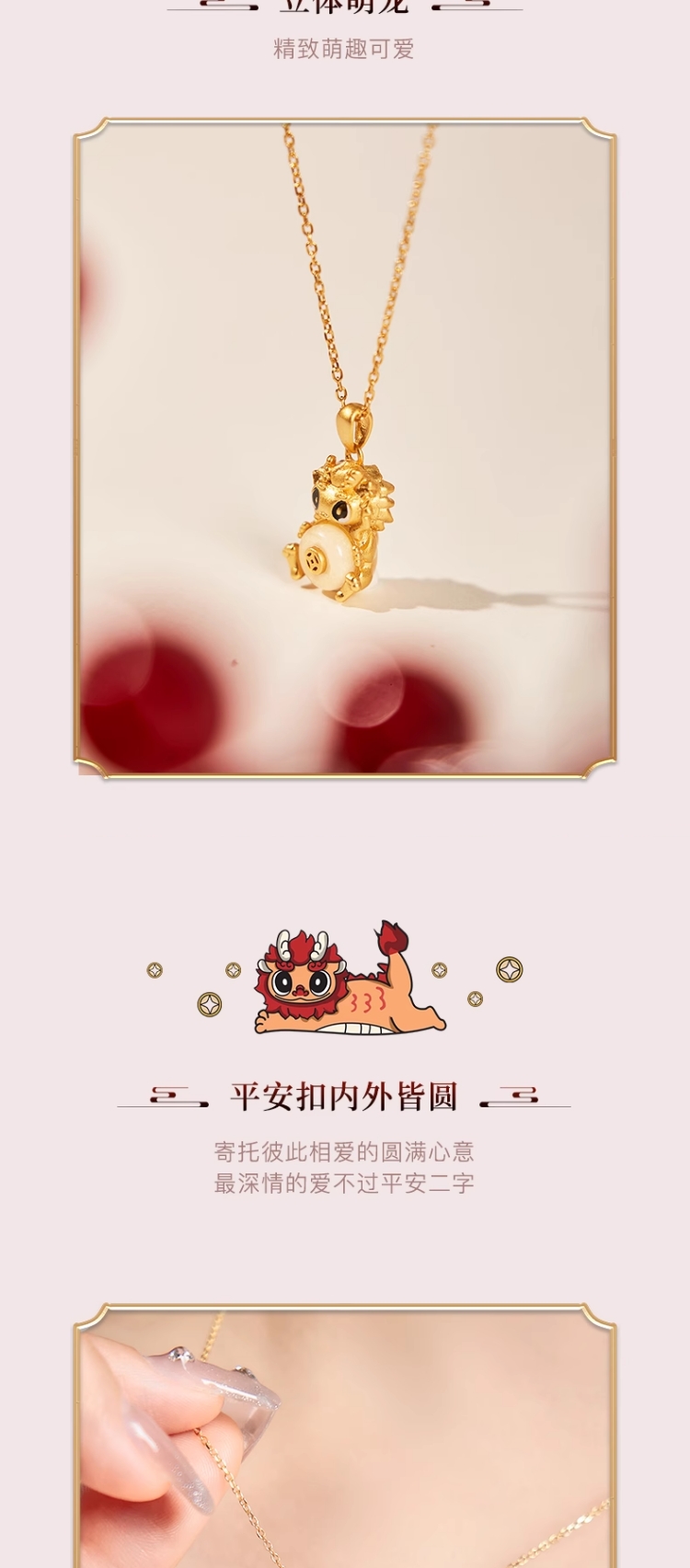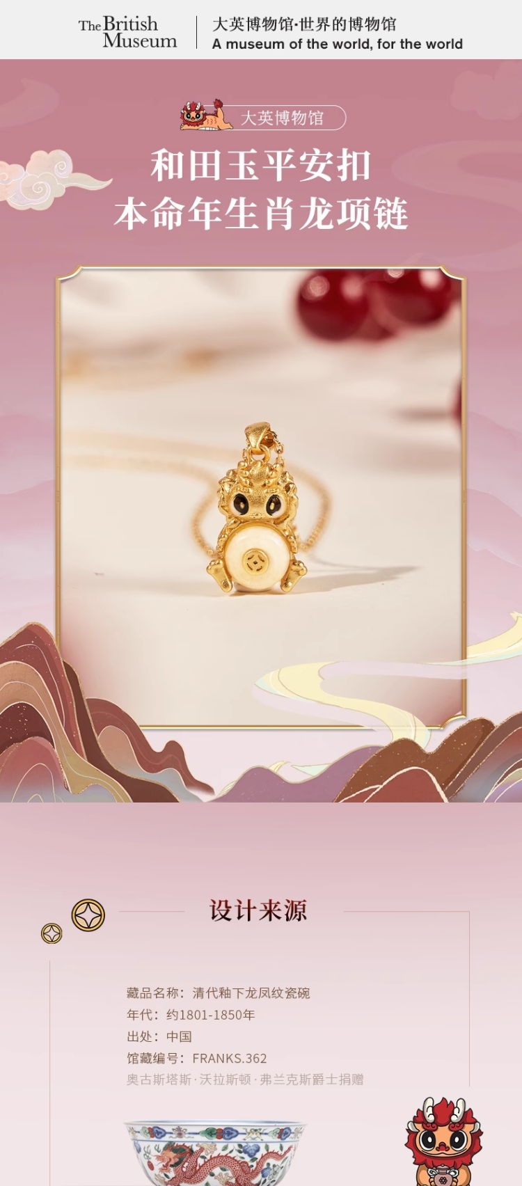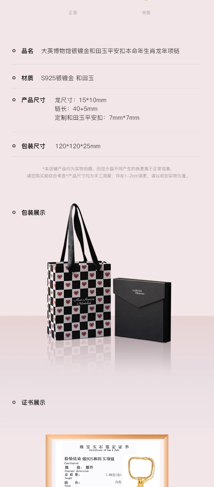 大英博物馆龙年系列 银镀金和田玉平安扣本命年生肖龙年项链首饰礼盒
