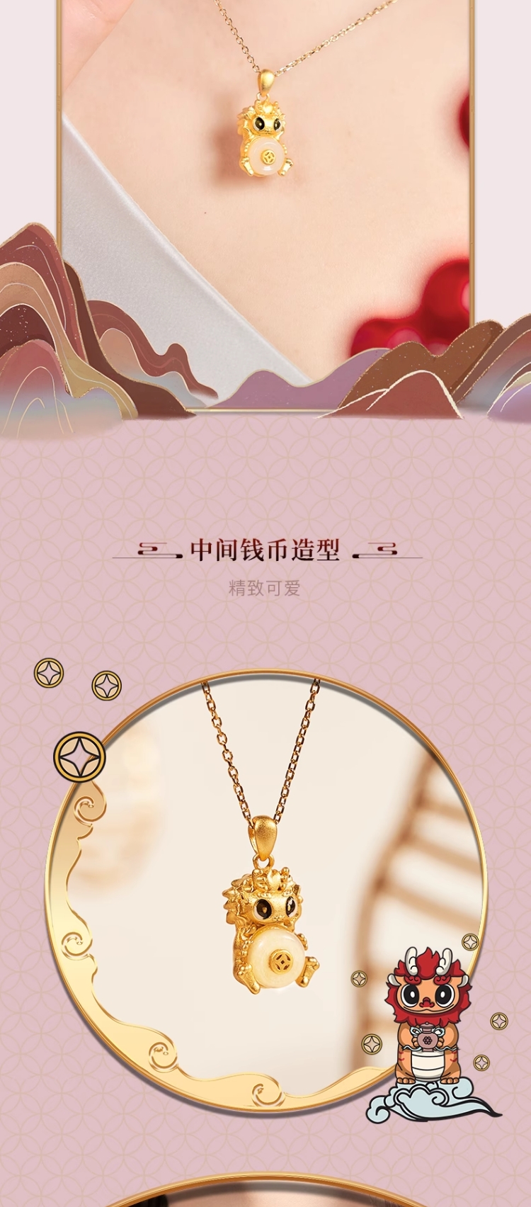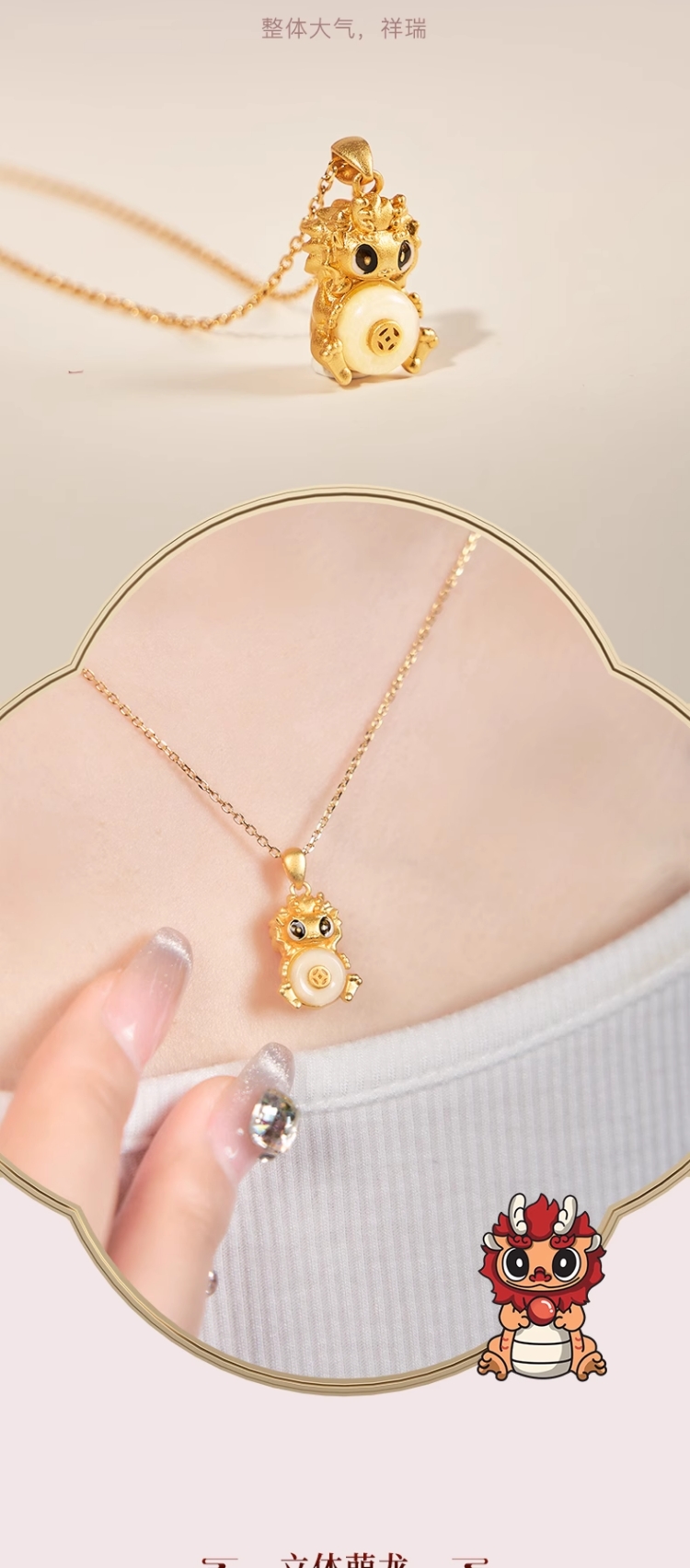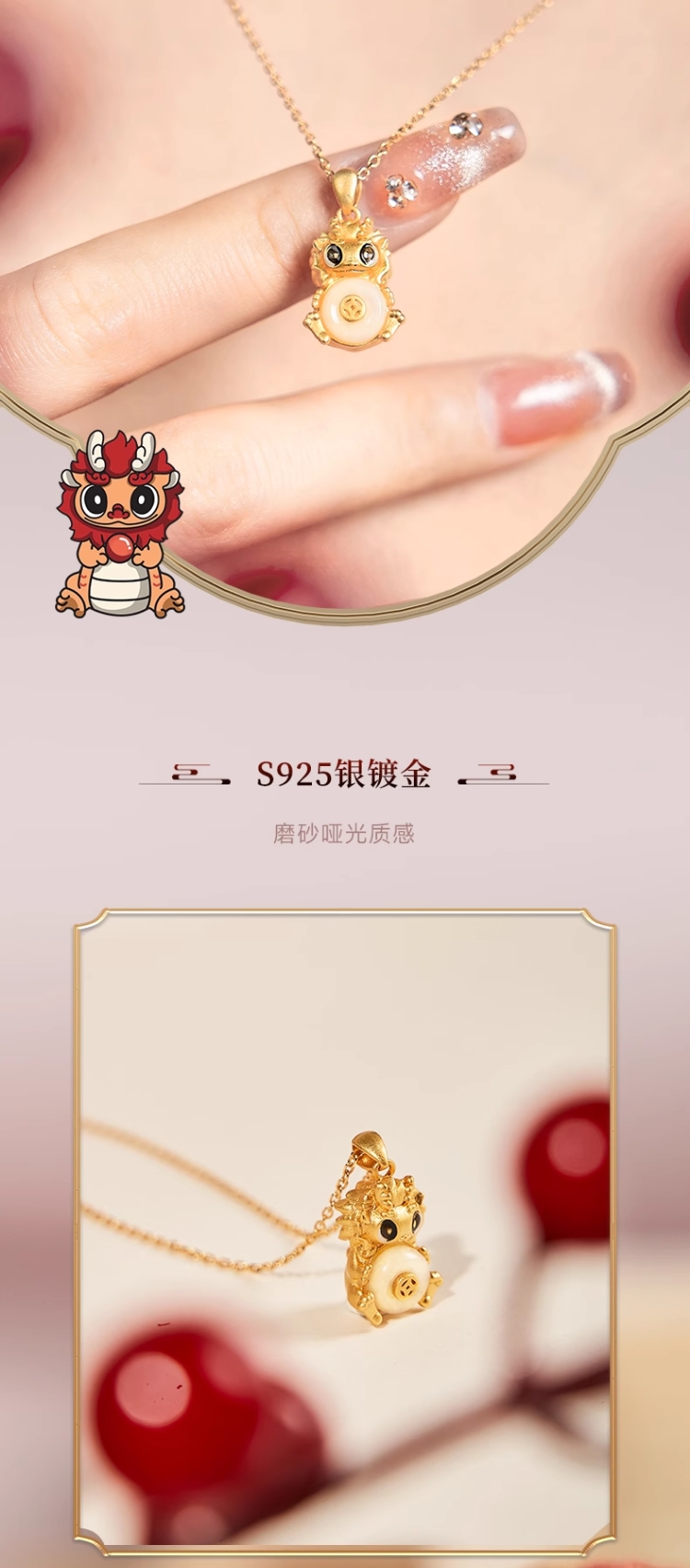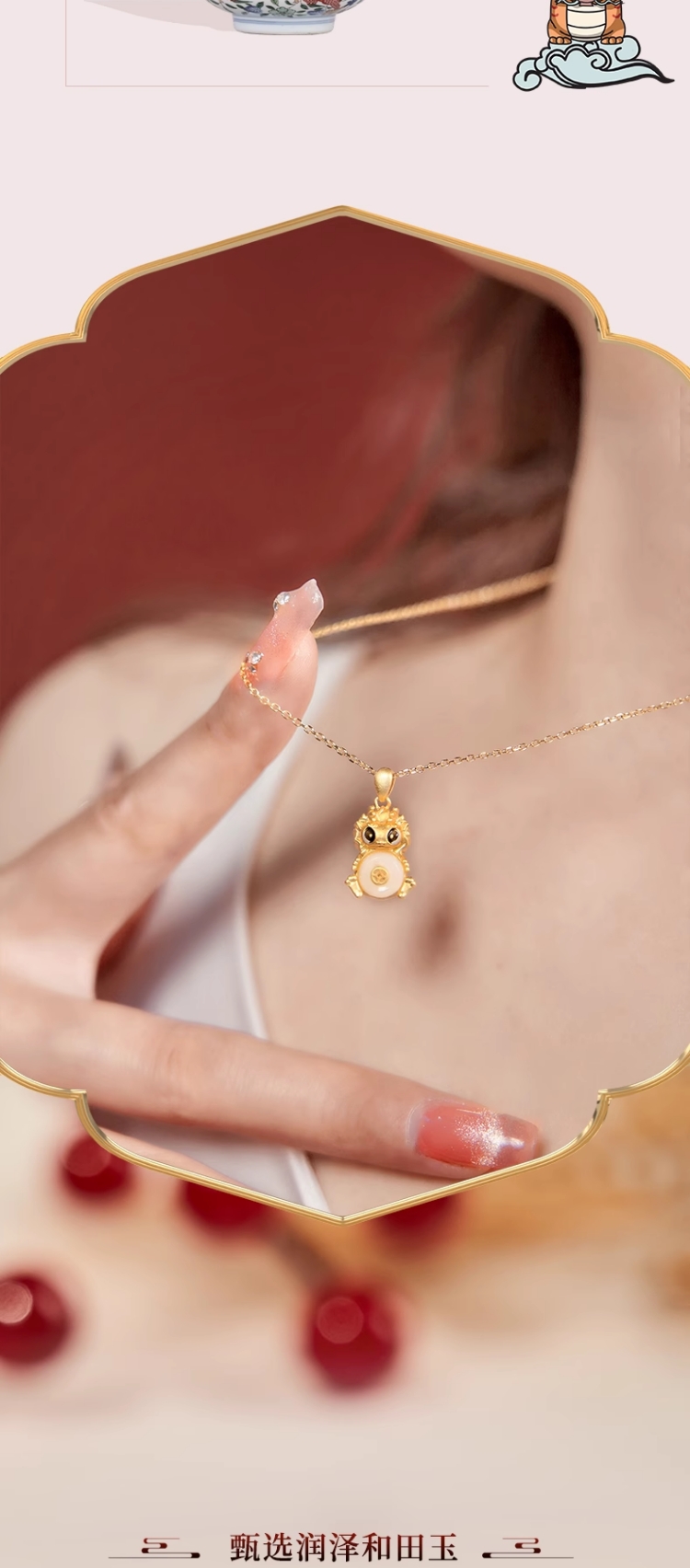 大英博物馆龙年系列 银镀金和田玉平安扣本命年生肖龙年项链首饰礼盒