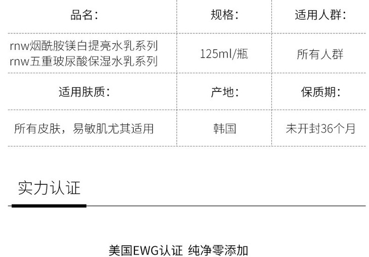 【香港直邮】RNW如薇 滋润 烟酰胺精华水乳