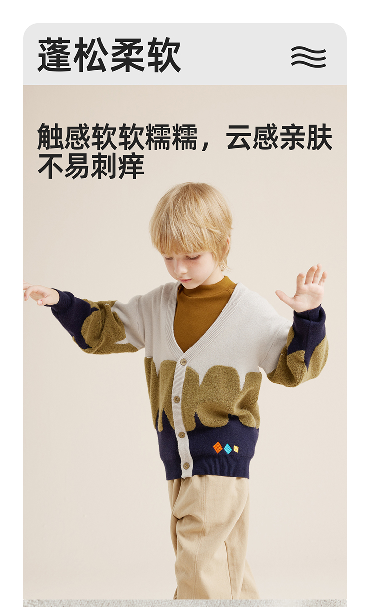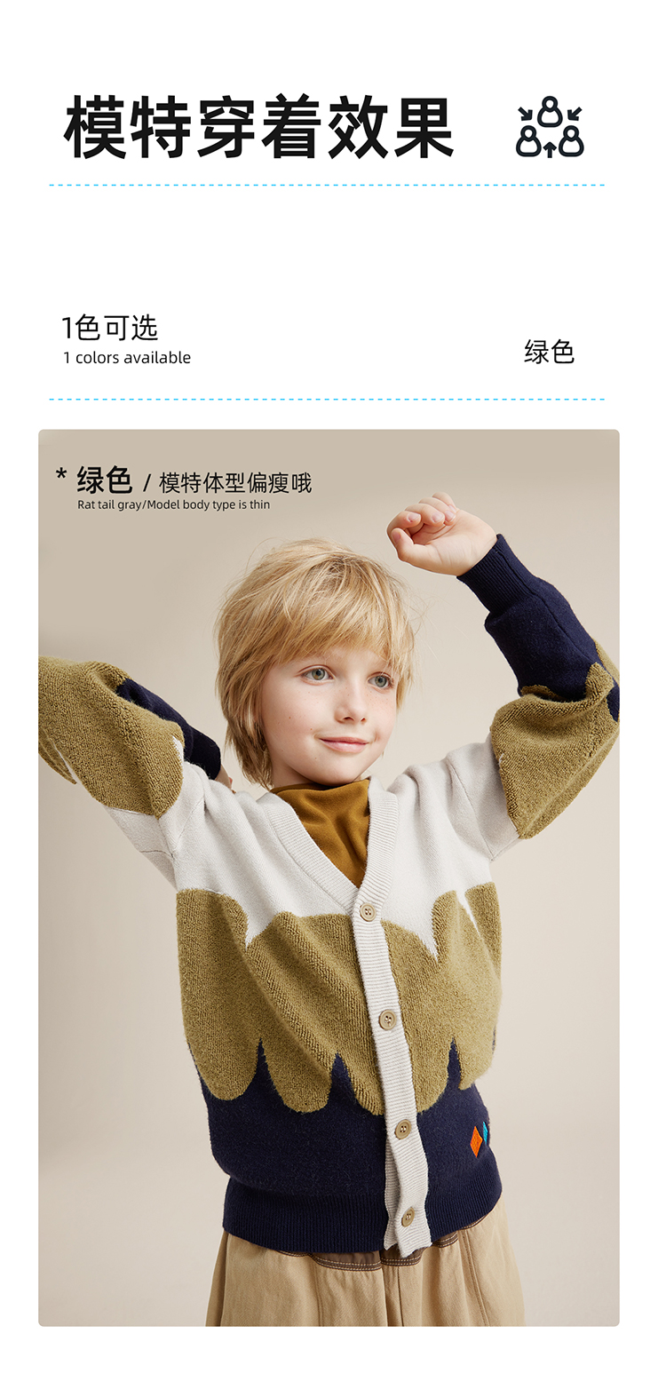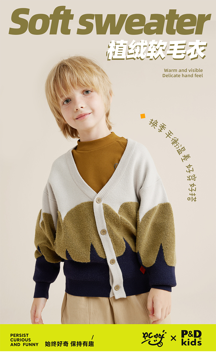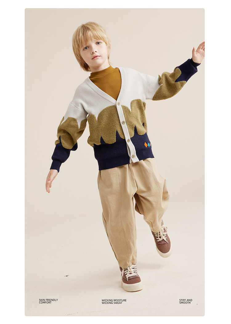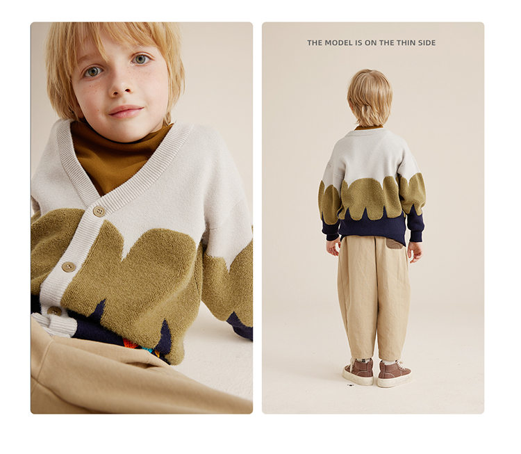fx-【秋上新】【趣味植绒 软糯舒适】儿童拼色调性毛衣开衫PQMY2312