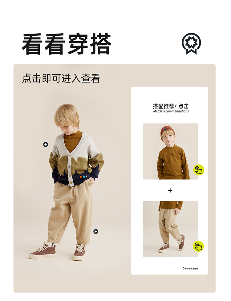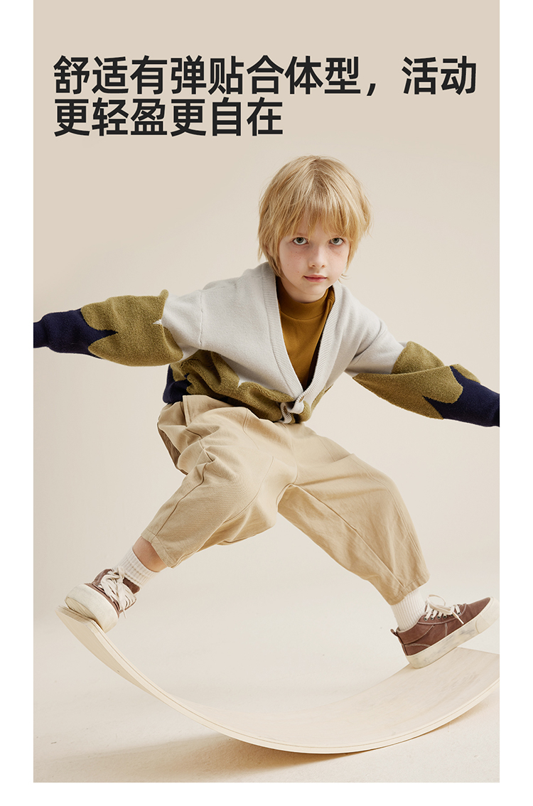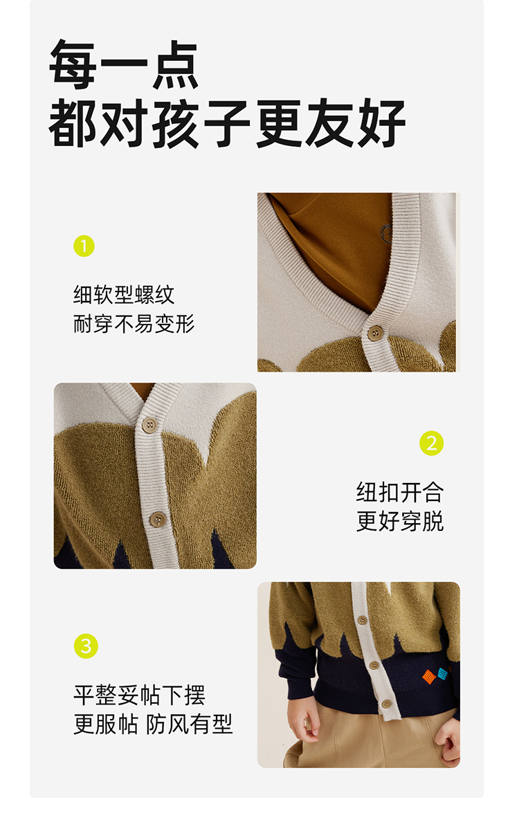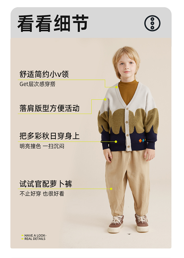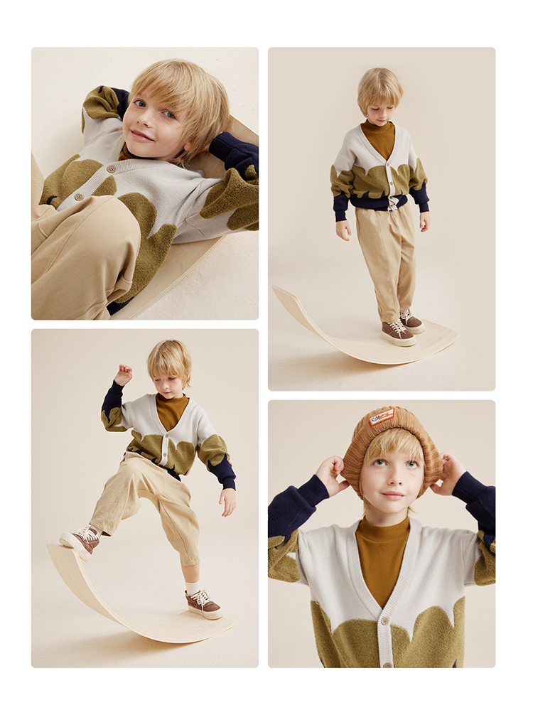 fx-【秋上新】【趣味植绒 软糯舒适】儿童拼色调性毛衣开衫PQMY2312