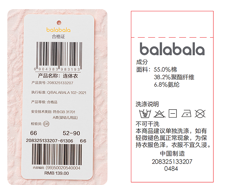 巴拉巴拉balaOne婴儿连体衣宝宝爬爬服哈衣2025新款贴肤舒适雅致
