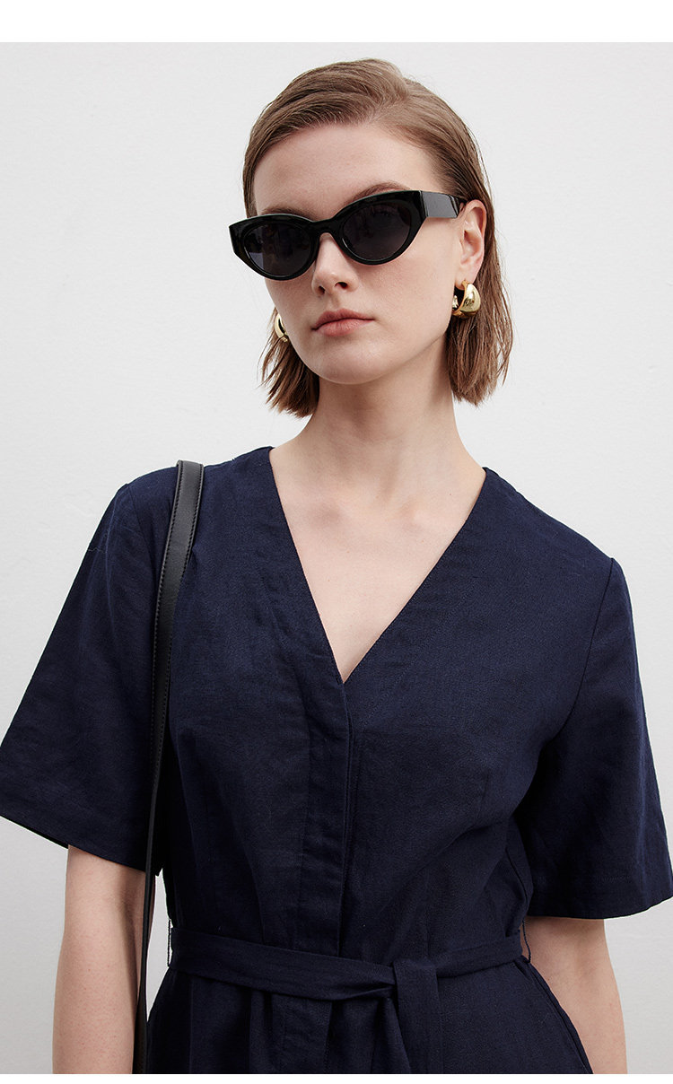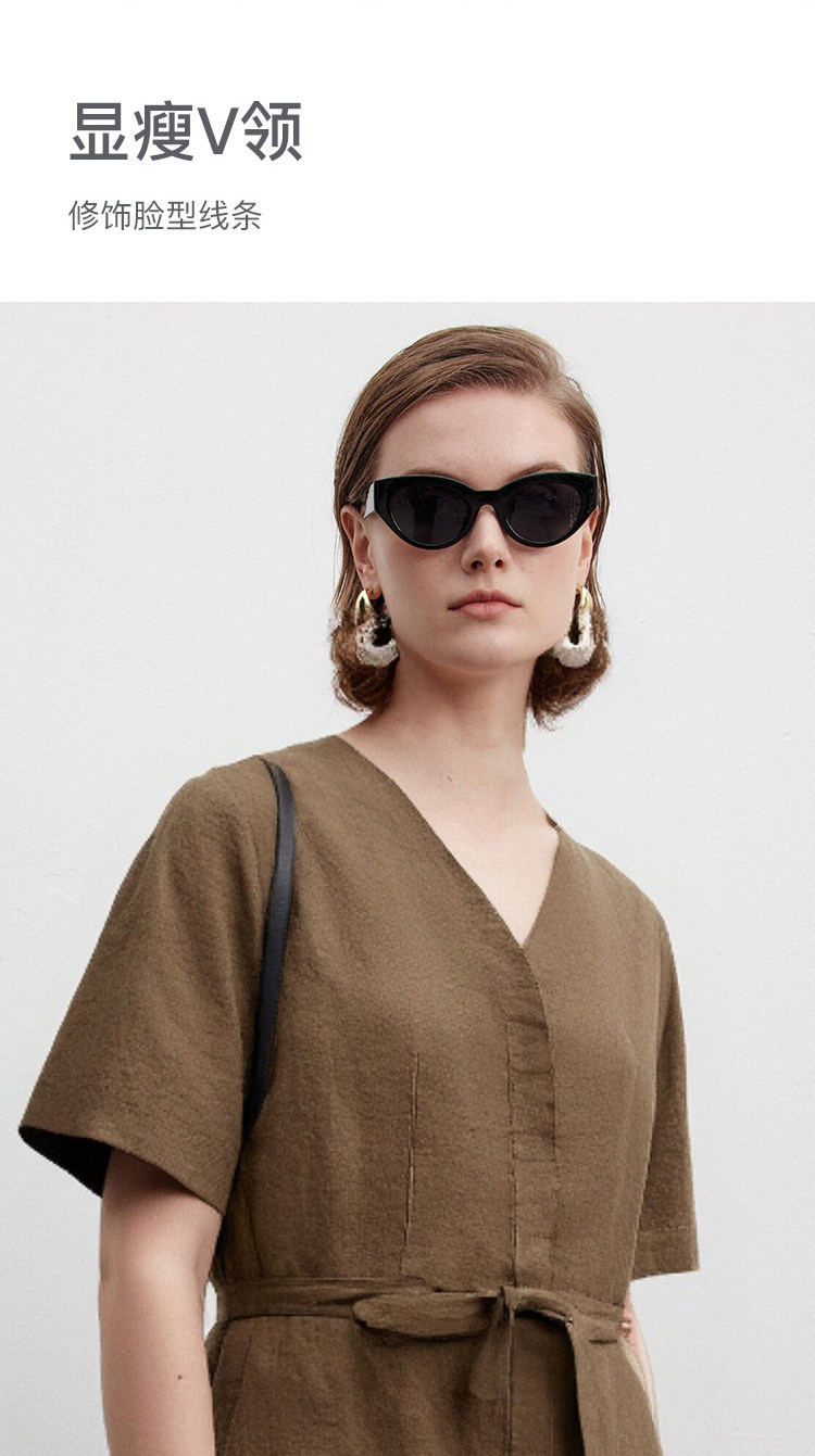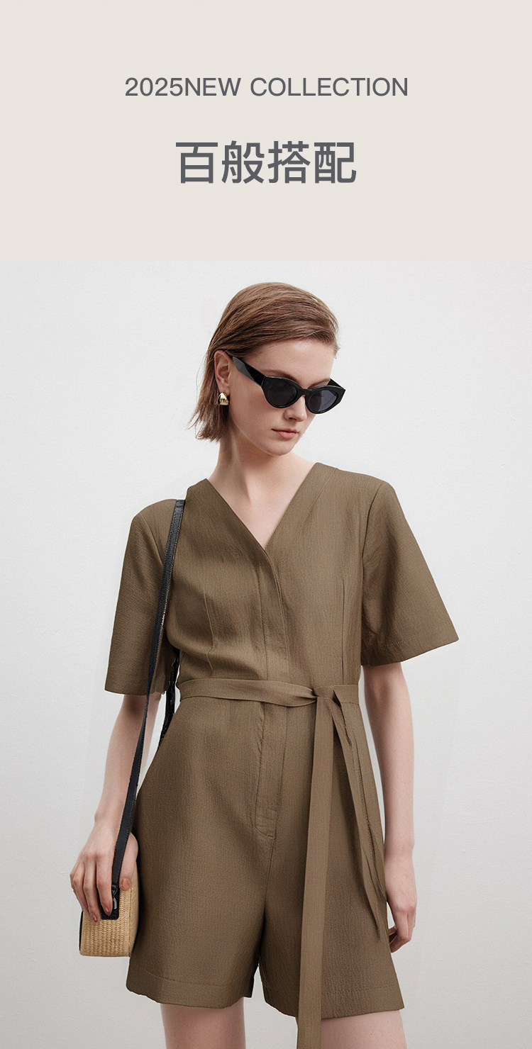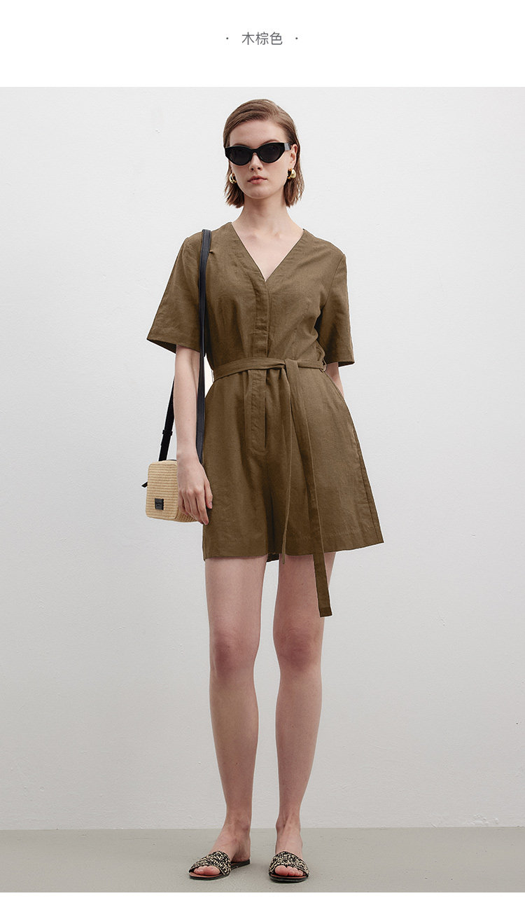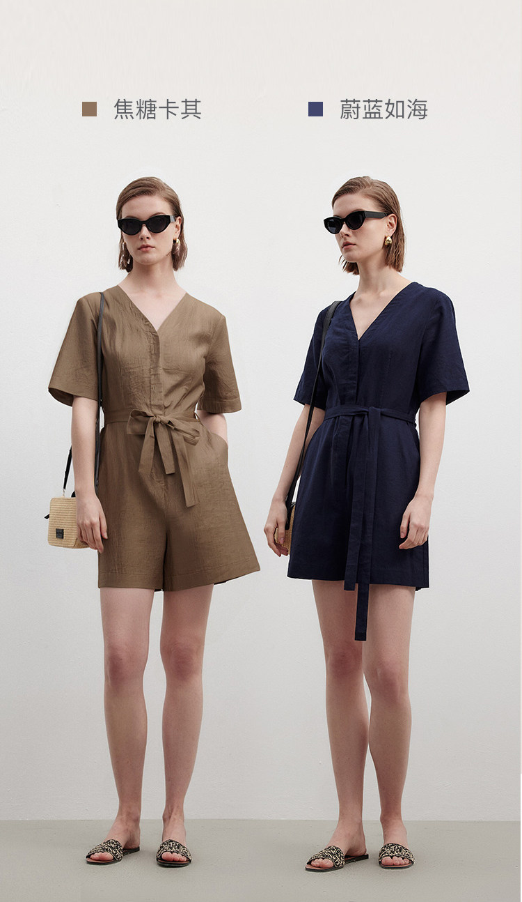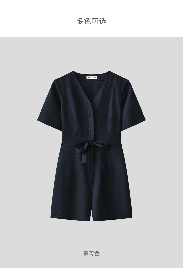 Marc O'Polo/MOP夏季新款好看时尚V领短袖天然亚麻连体短裤女套装