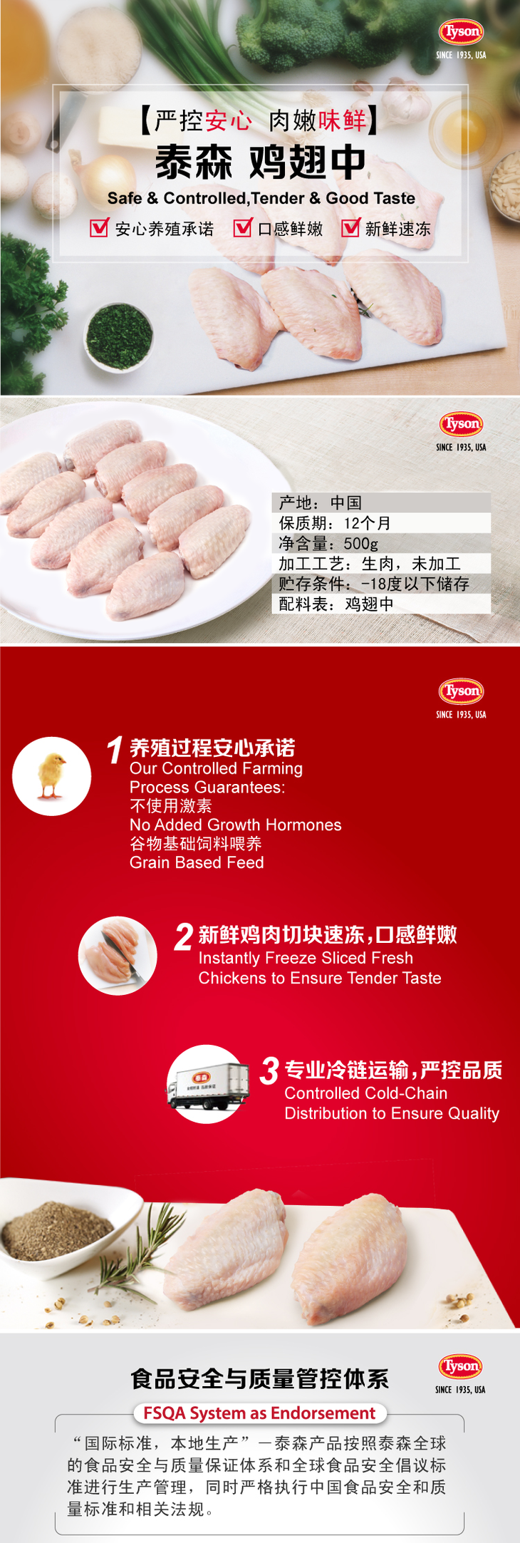 泰森冷冻鸡翅中500g