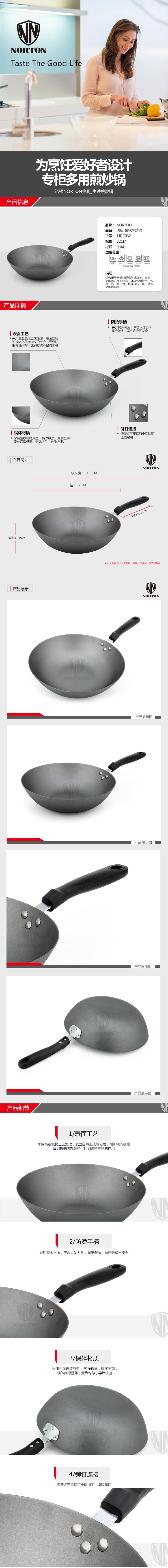 【会员价:89元】广电优选 诺顿 NORTON典厨生铁煎炒锅 家用单柄炒菜锅32CM无盖不粘锅炒鼎 32cm( 1JDC032)