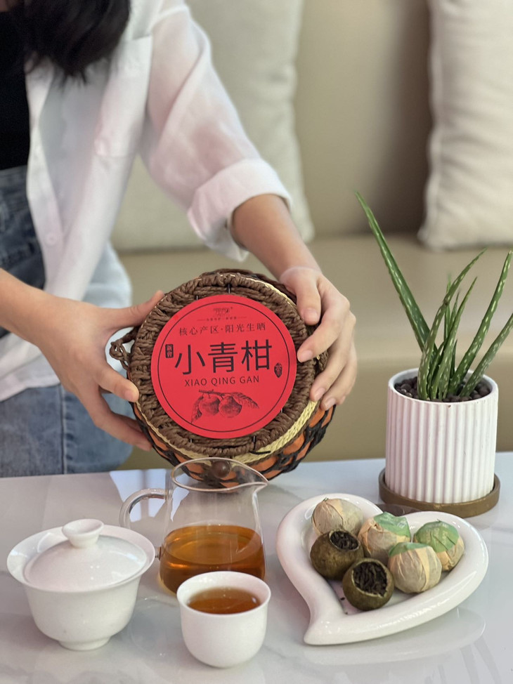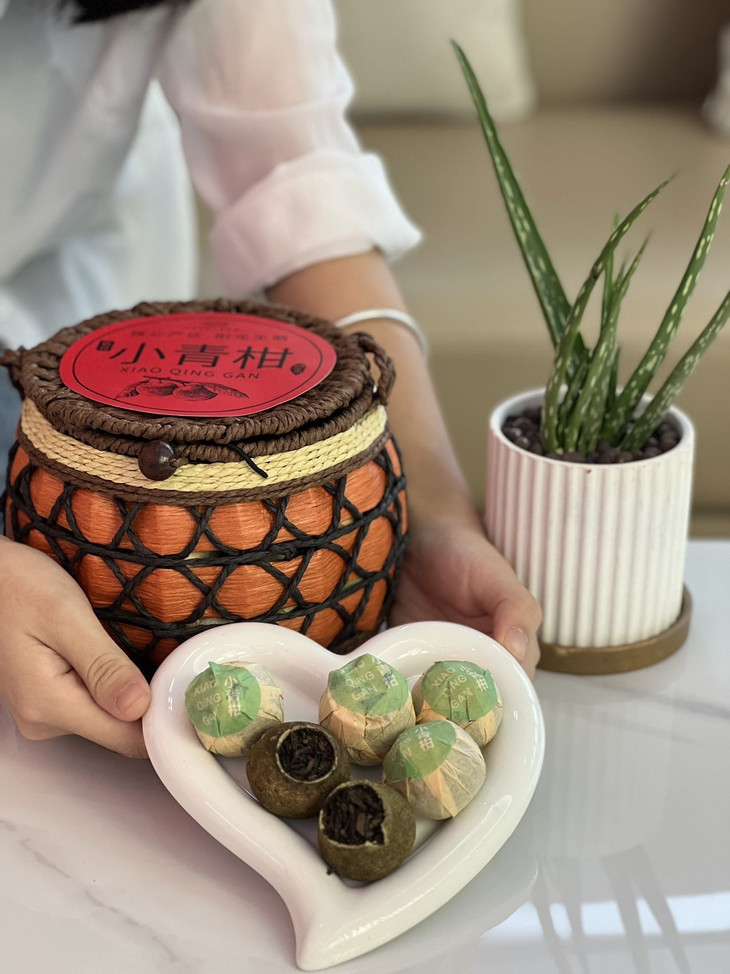 【手提小篮子装】强韵小青柑500g🌸 ➽新会青柑➕地道云南熟普☺️ ✅醇/滑/香/甜/ ✅清热解毒、化痰止咳新会小青柑 🎁送礼首选