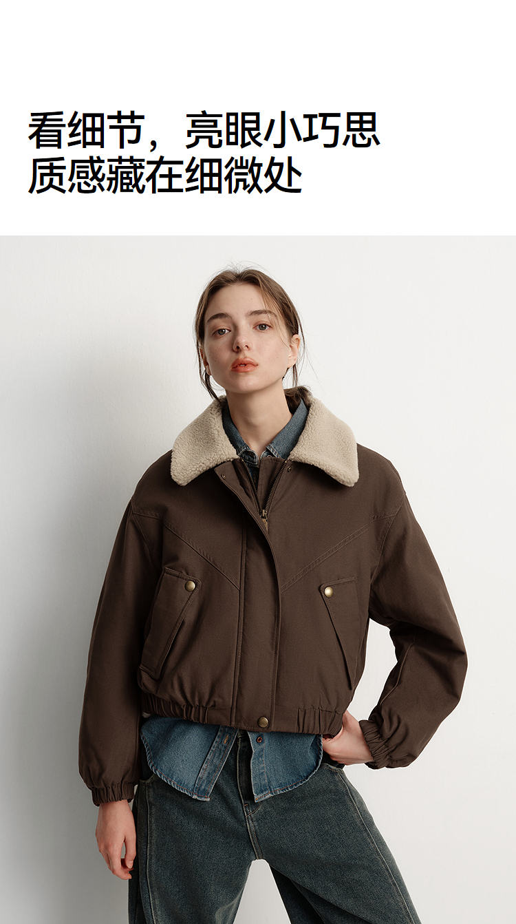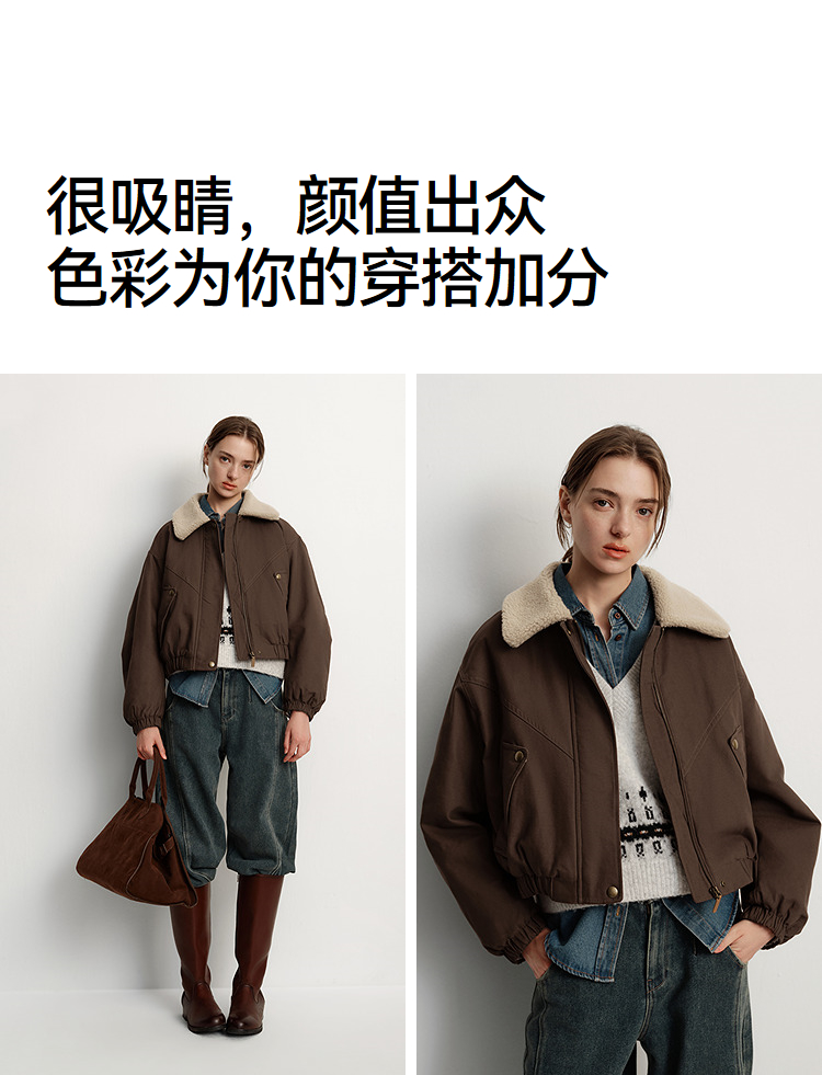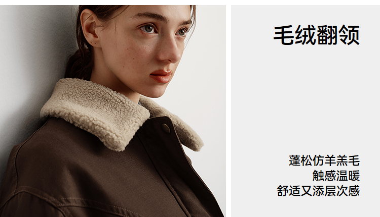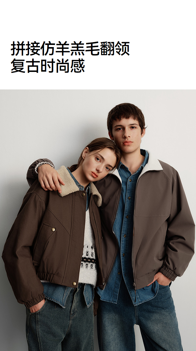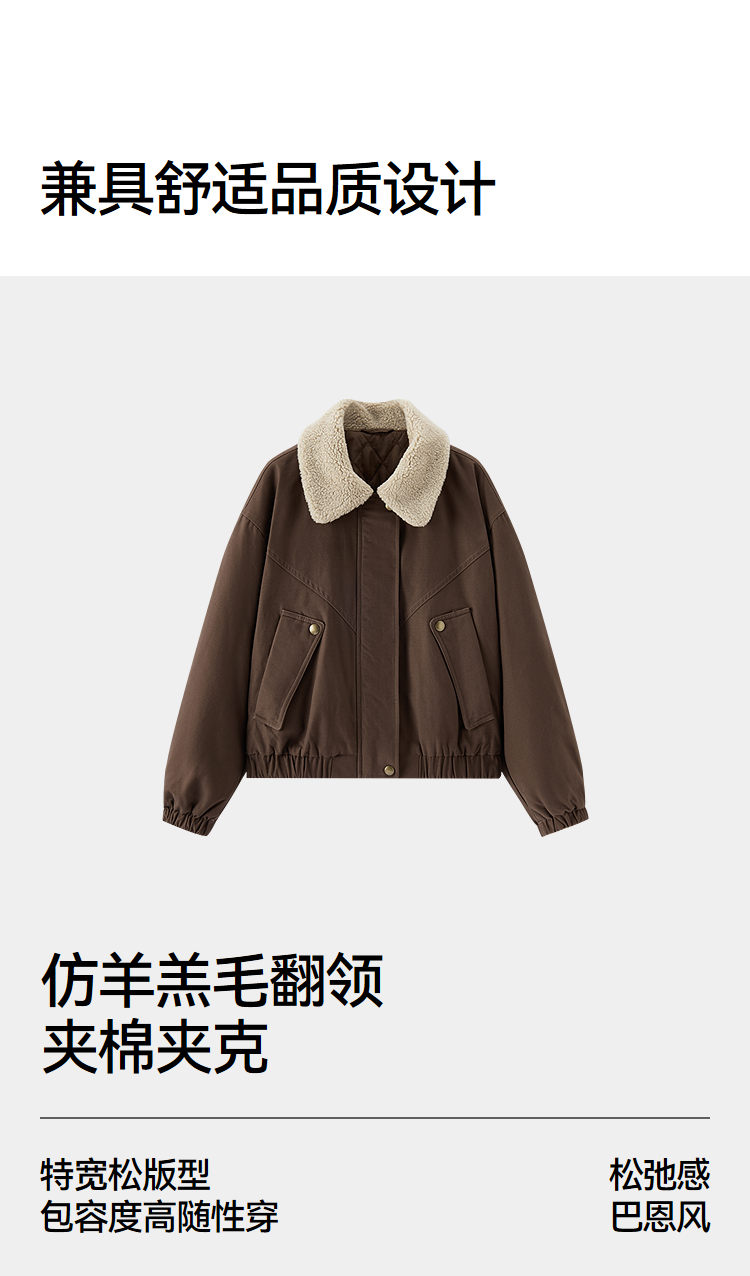 森马外套女冬季夹棉仿羊羔毛翻领oversize磨毛2025新款巴恩风夹克