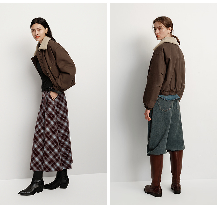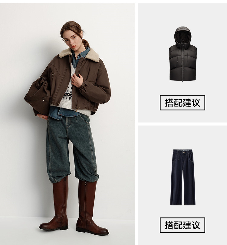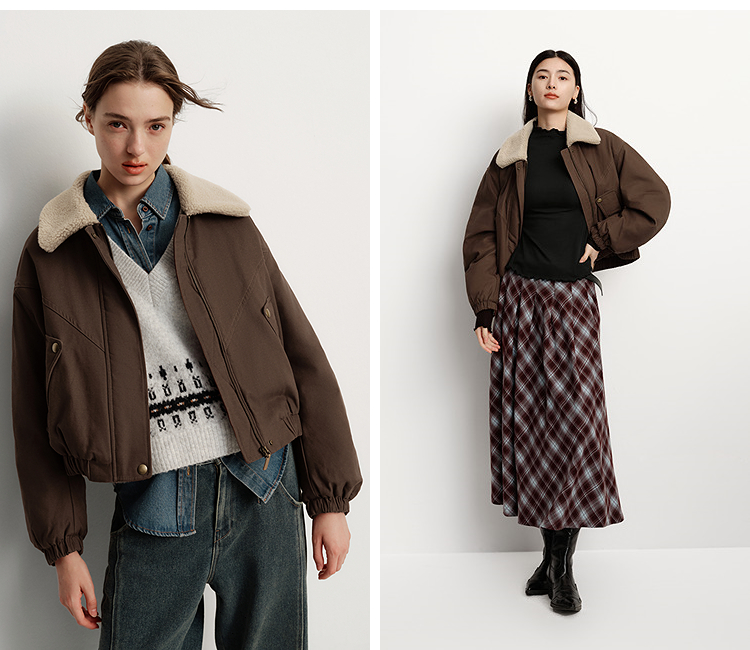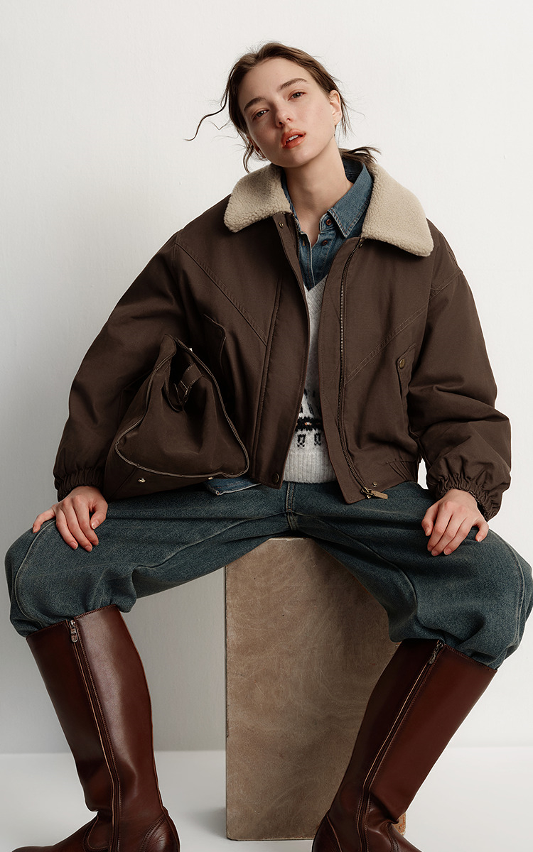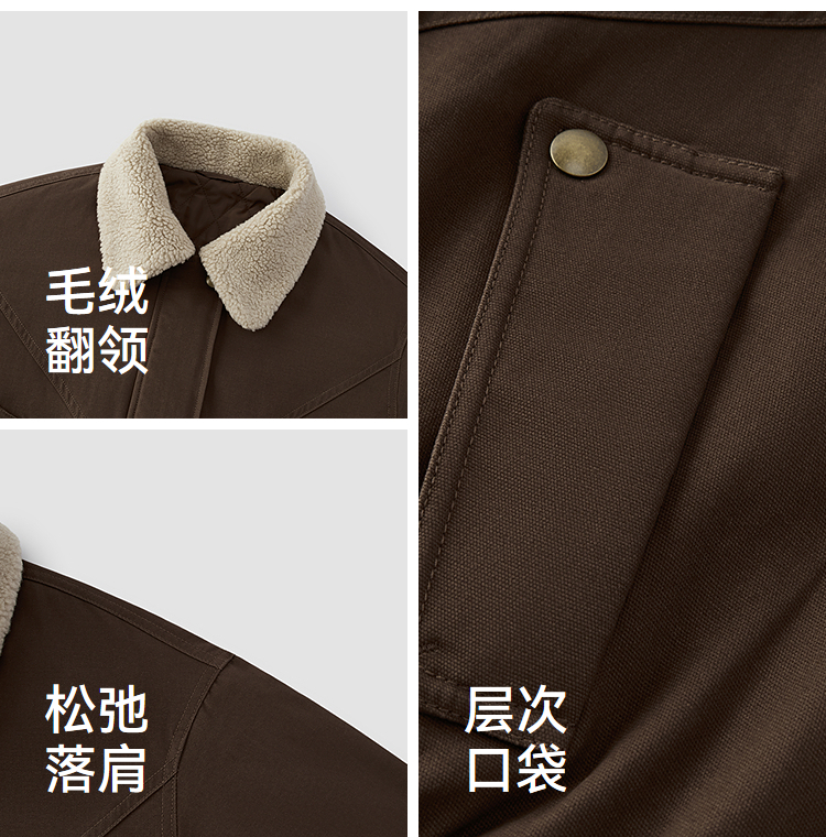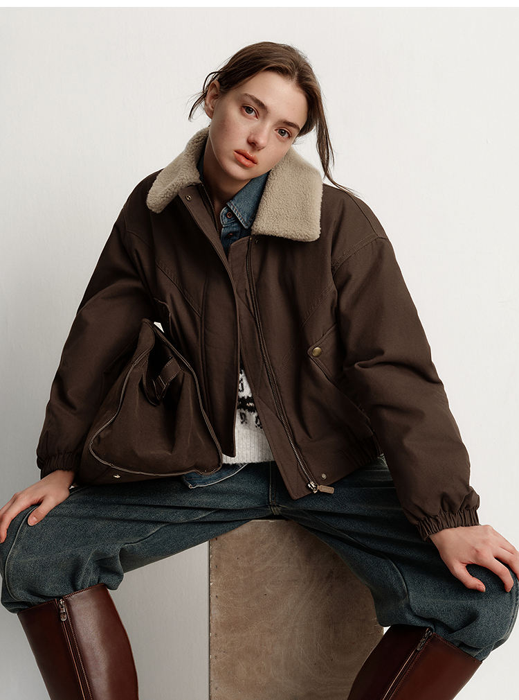 森马外套女冬季夹棉仿羊羔毛翻领oversize磨毛2025新款巴恩风夹克
