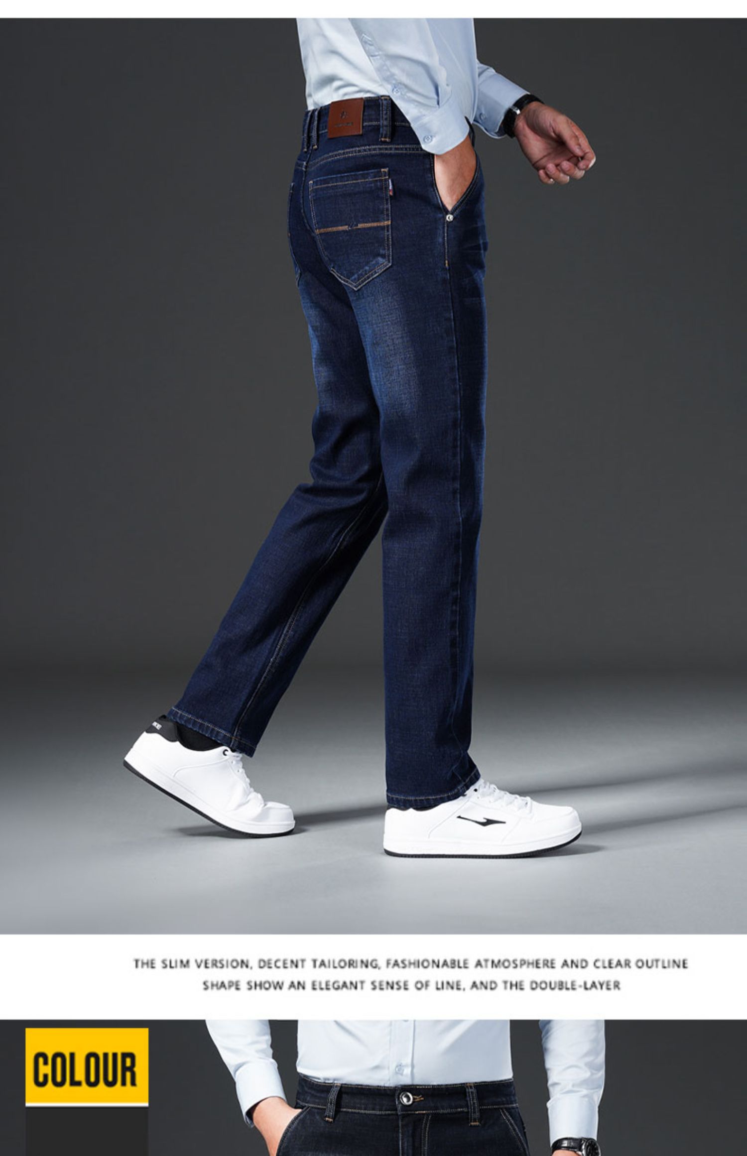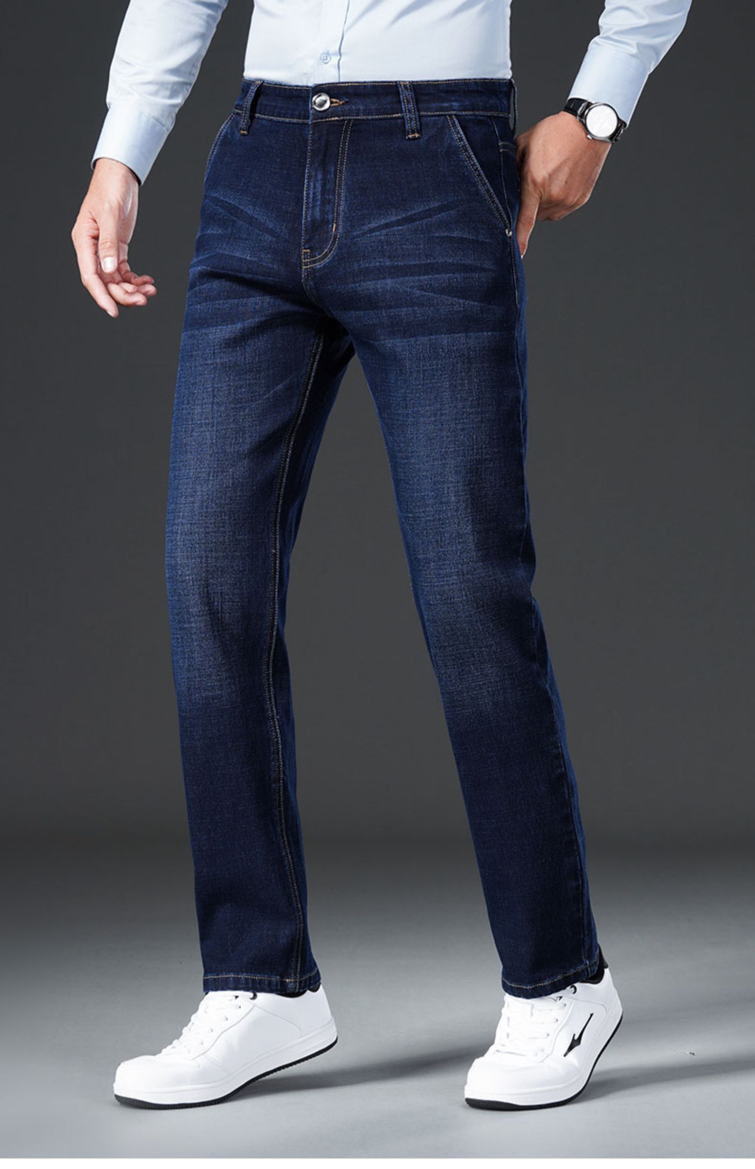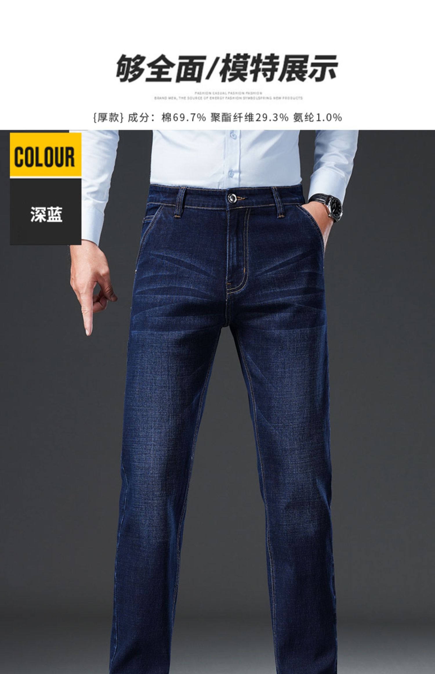 【加绒加厚】圣得西男士牛仔裤秋冬宽松弹力直筒商务长裤2362915870