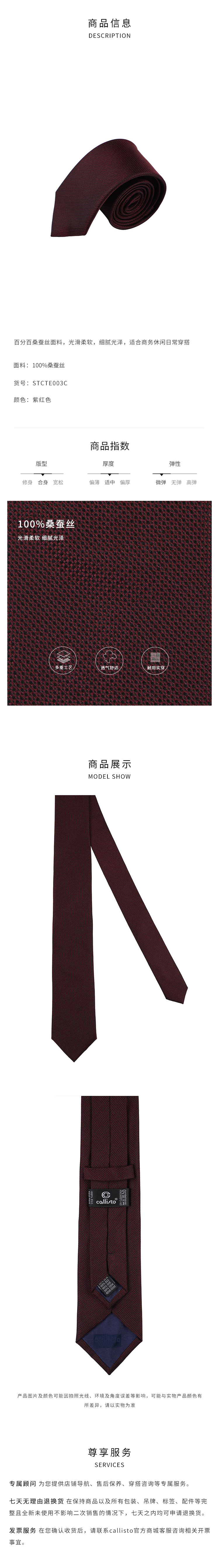 callisto紫红色桑蚕丝领带 STCTE003C