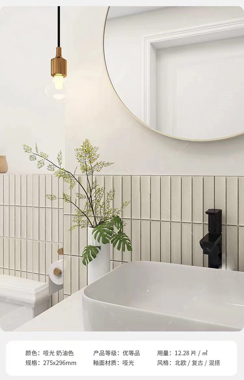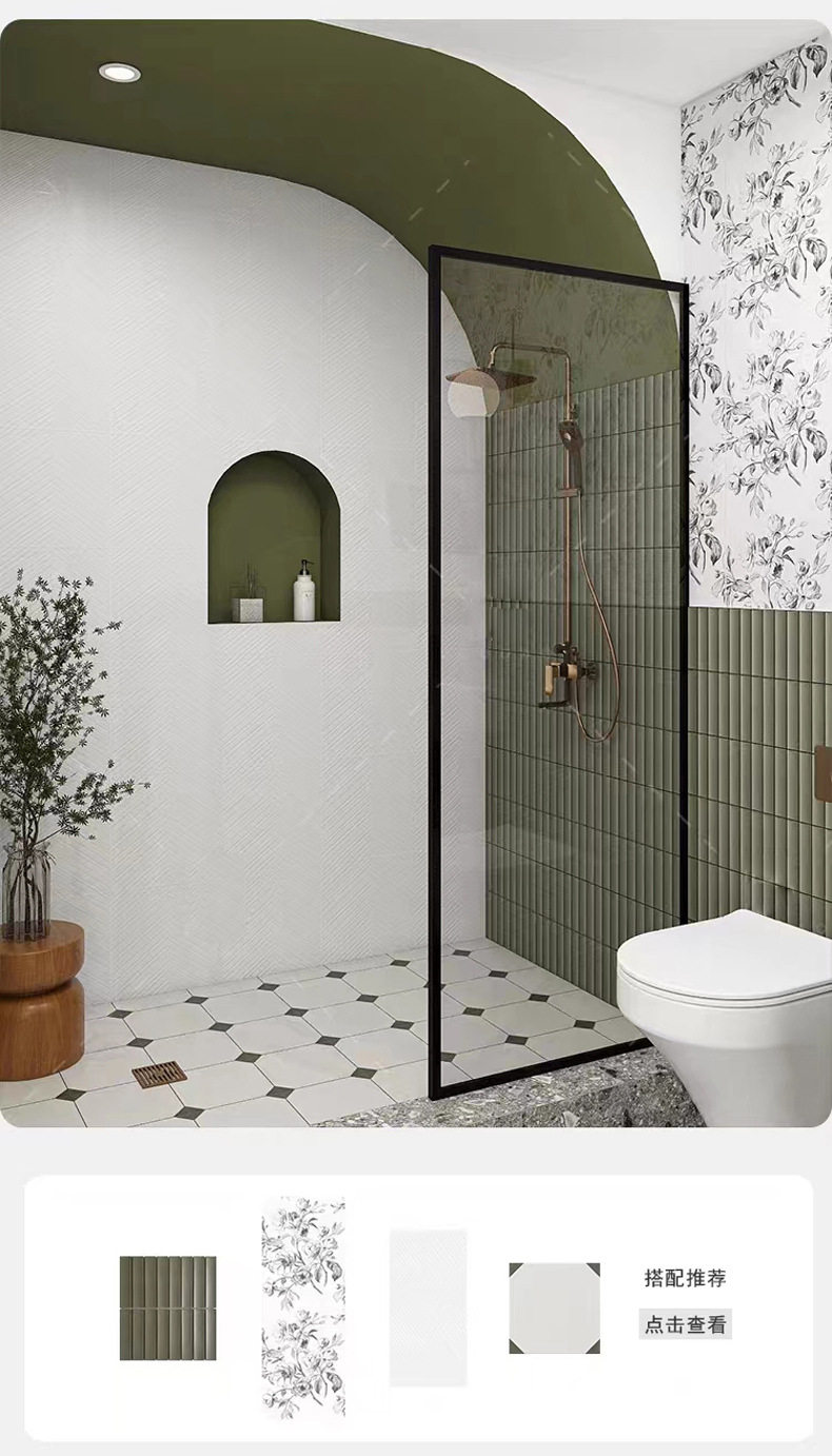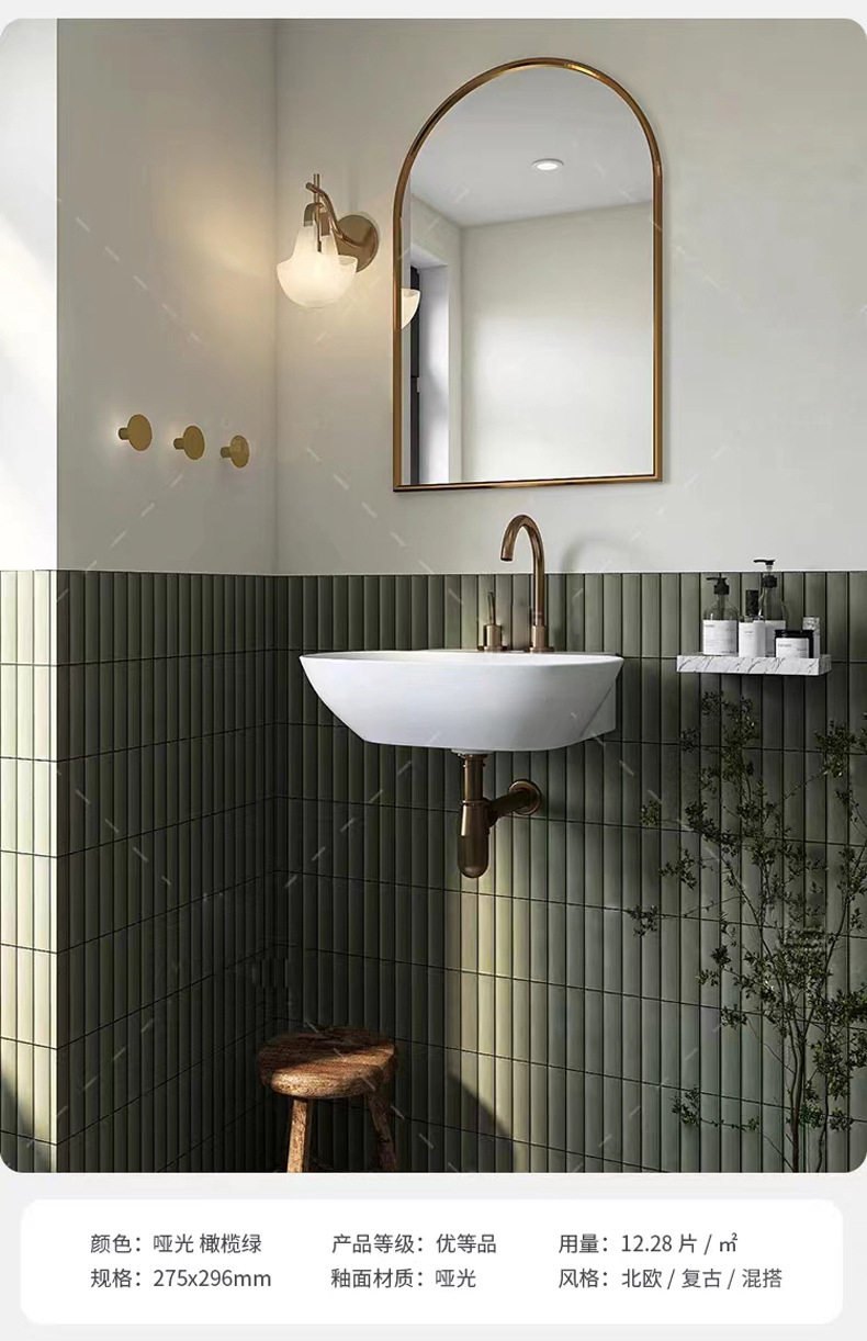 咖啡厅酒吧砖卫生间瓷砖马赛克厨房墙砖月牙竹节橄榄绿弧形 商品图4